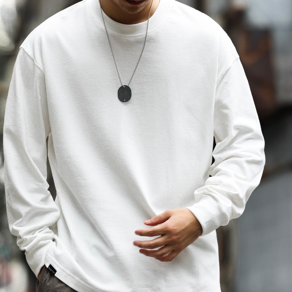 Autumn casual 280g MLS cotton long sleeved T-shirt men's loose fine jacquard texture base shirt