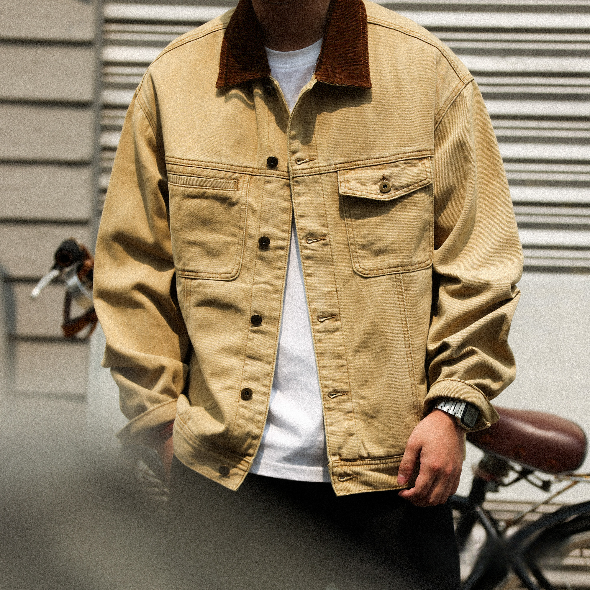 Autumn corduroy lapel jacket loose gangster handsome American vintage retro khaki workwear jacket
