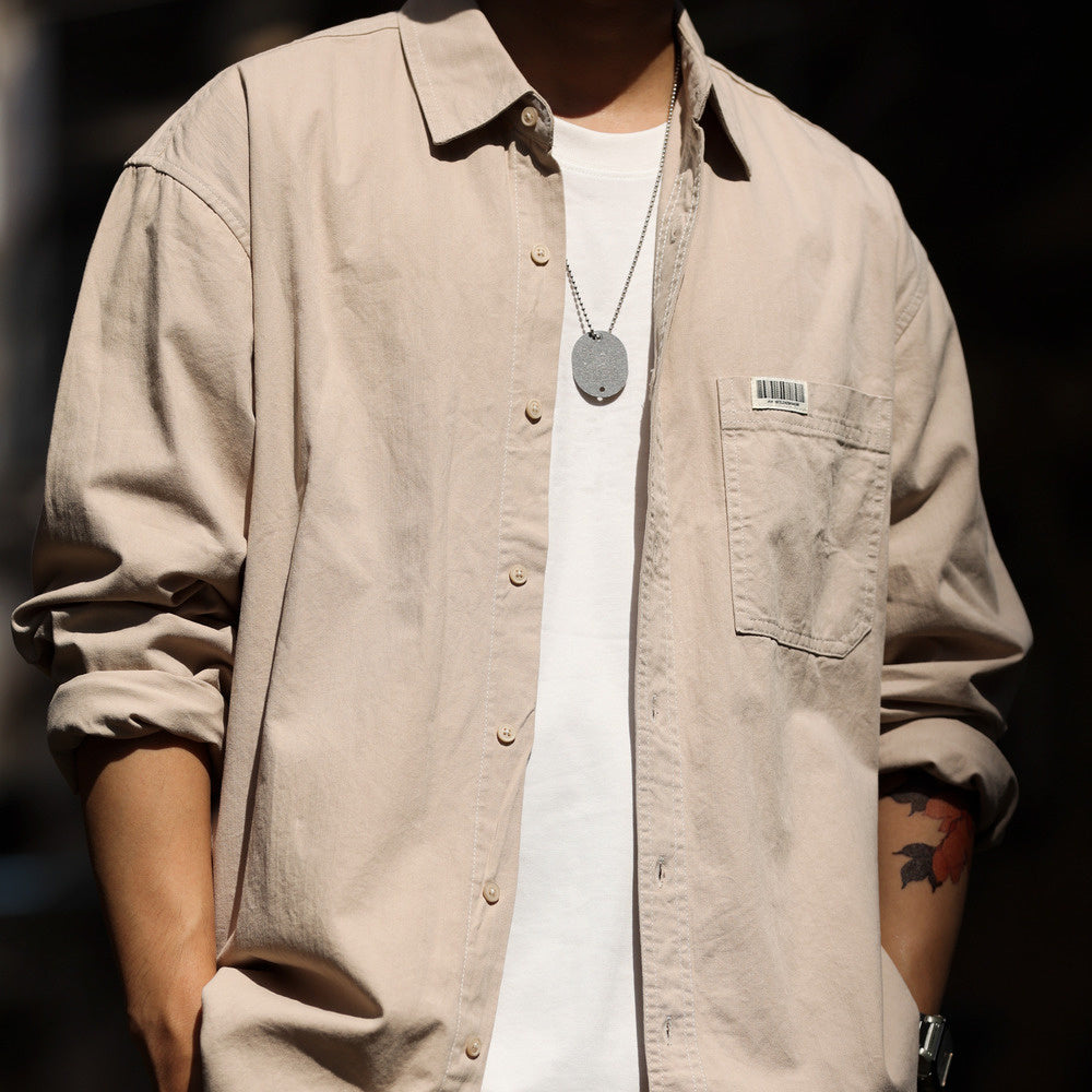 Meide La color washed pure cotton layered outer layer long sleeved shirt jacket