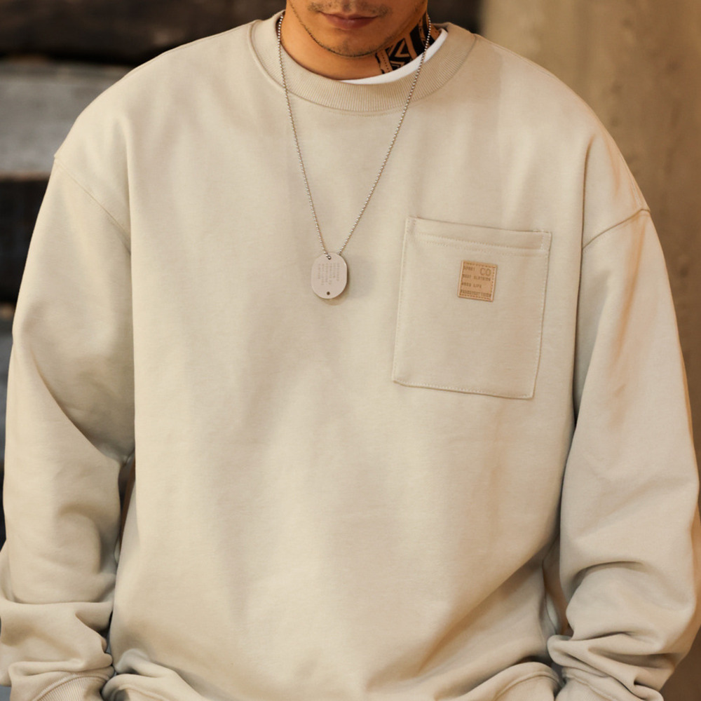 Casual round neck hoodie for men, loose loop bottom fleece fleece vintage base coat