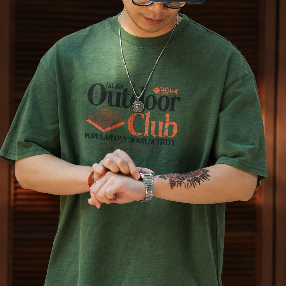 Japanese retro printed men's 300g pure cotton street style T-shirt