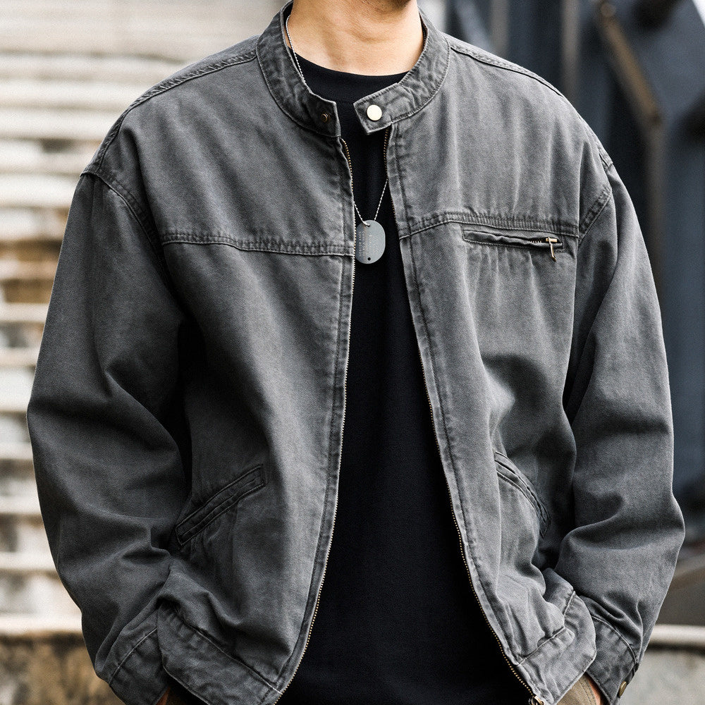 Vintage stand up collar Detroit jacket men's slightly wide canvas vintage outdoor tough guy workwear jacket