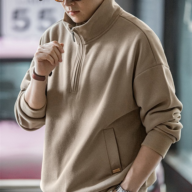 casual half zip stand up collar with fleece hoodie, cleanfit fleece pullover top
