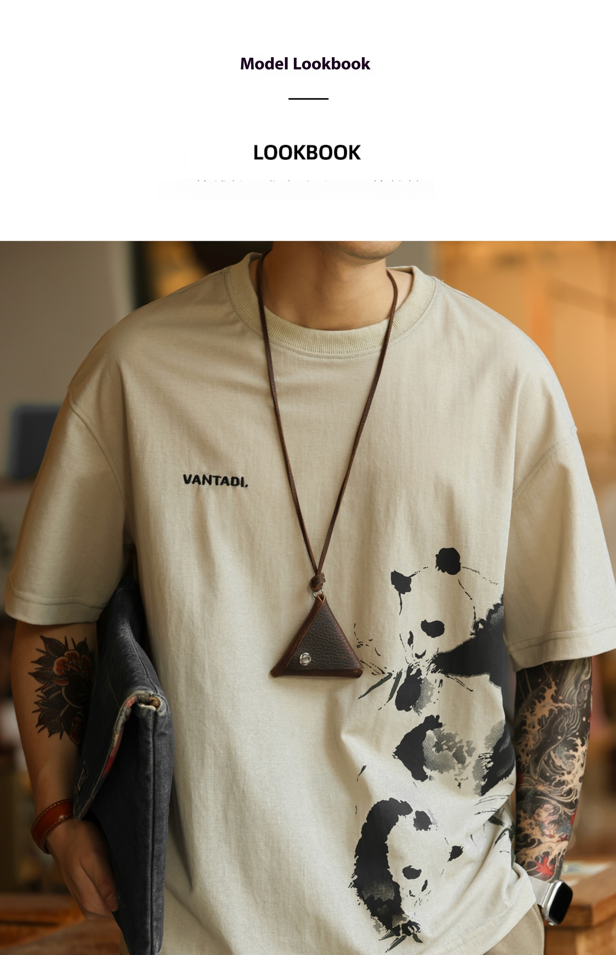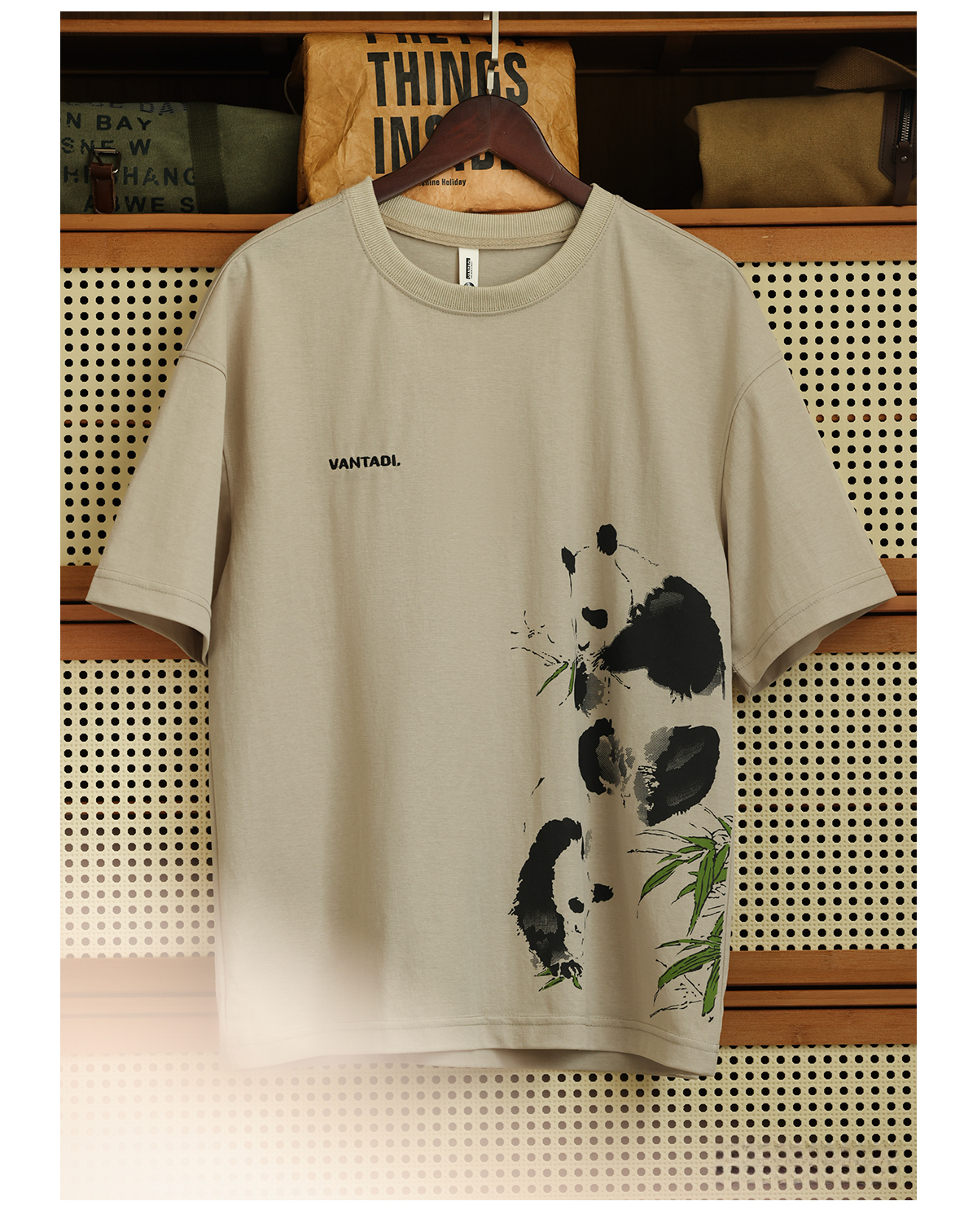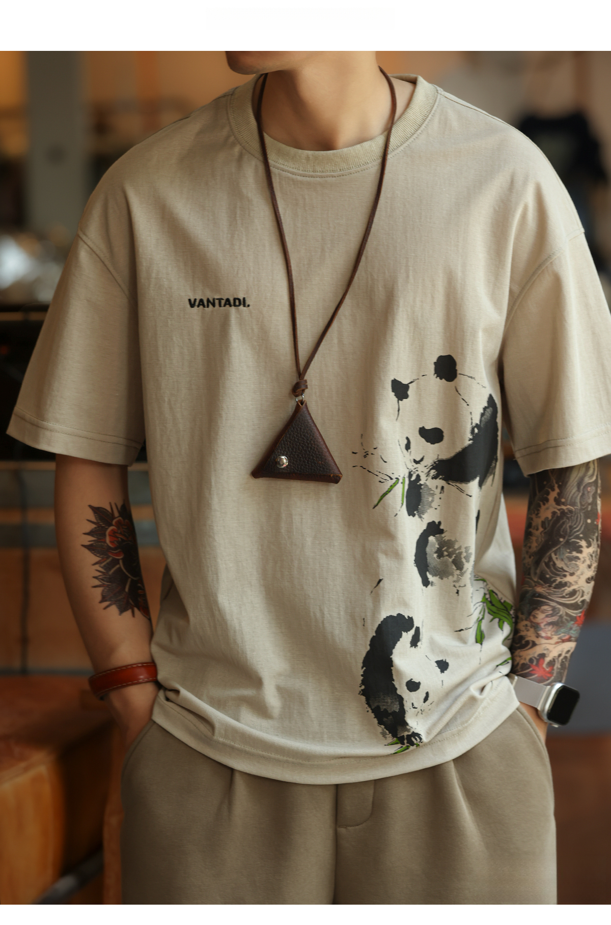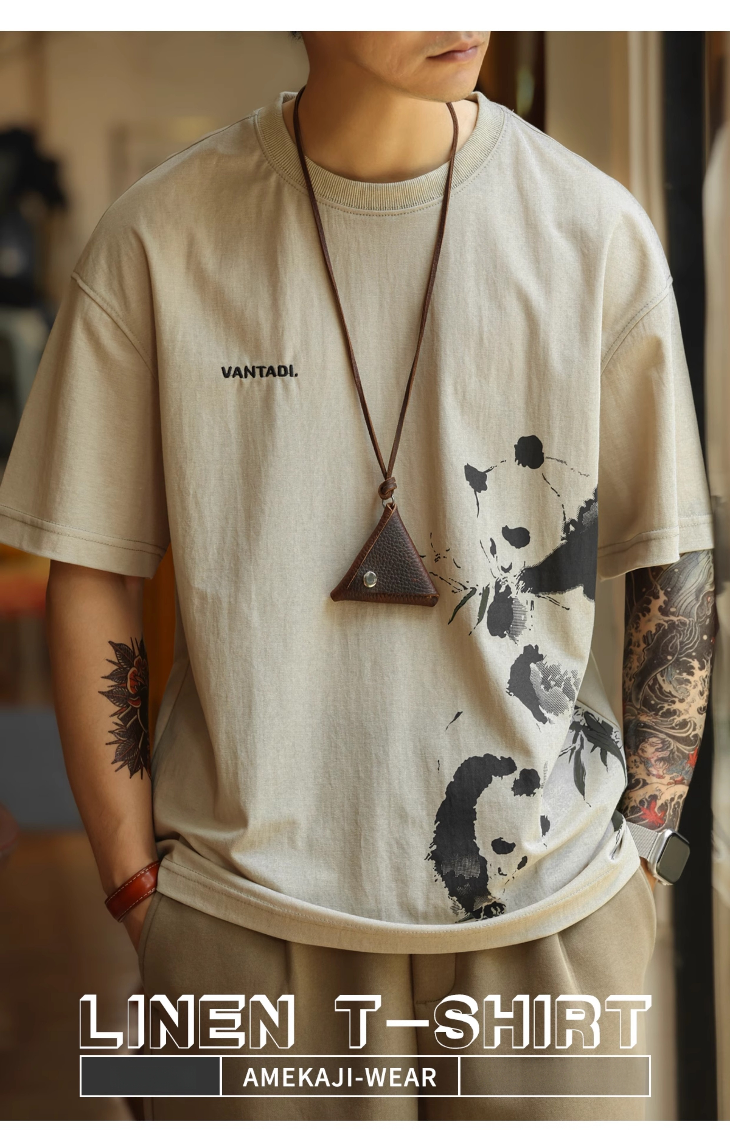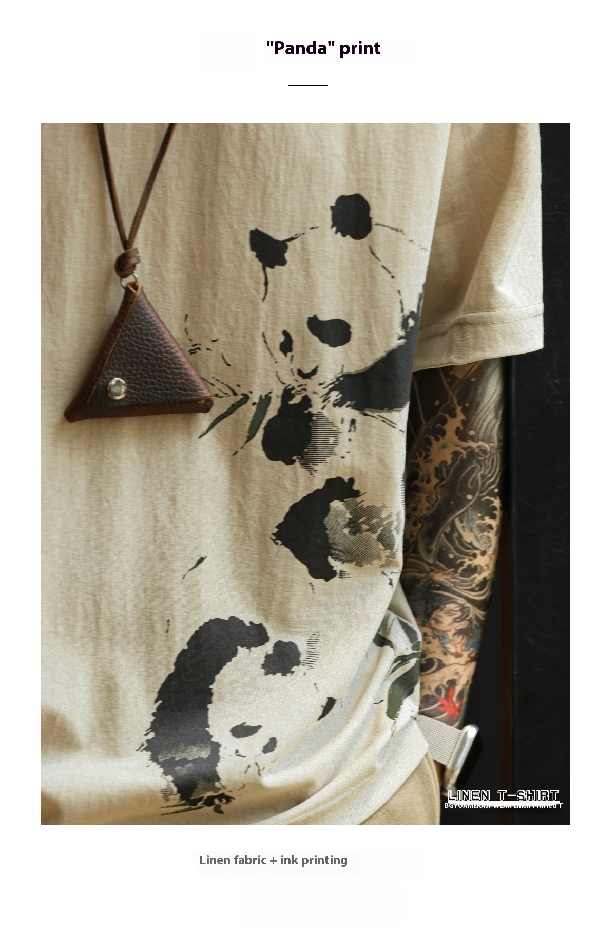 American casual 160g breathable linen men's panda printed T-shirt