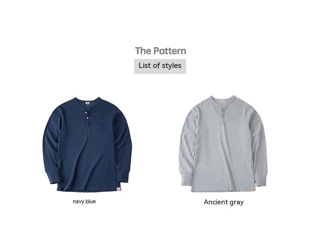 Retro Heavy Henley Shirt Slim-Fit Hard Han Style Solid Color Casual Long Sleeves T