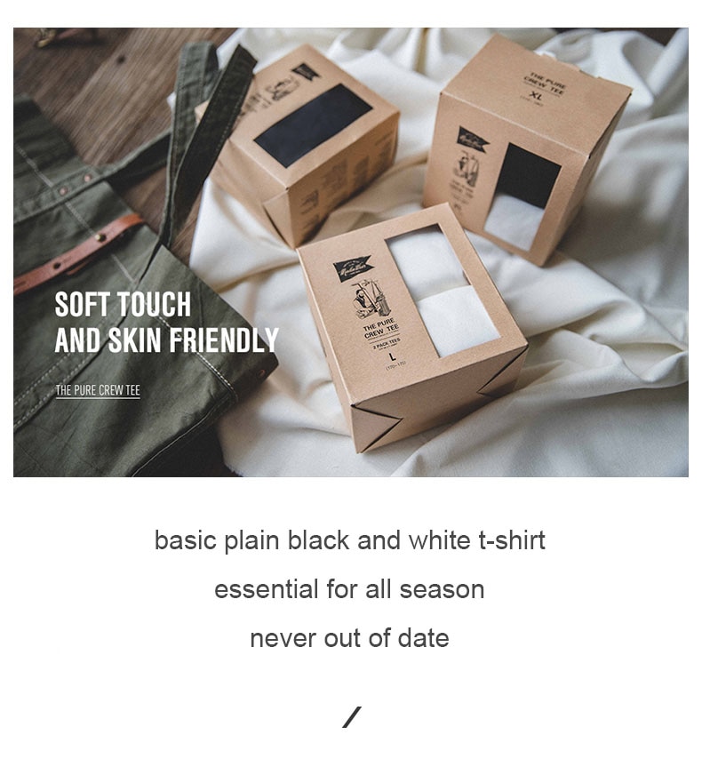 2pcs Solid Cotton Men T-shirts Short-sleeved Round Neck Black White T-Shirt Classic Heavyweight Oversized Tees Tops