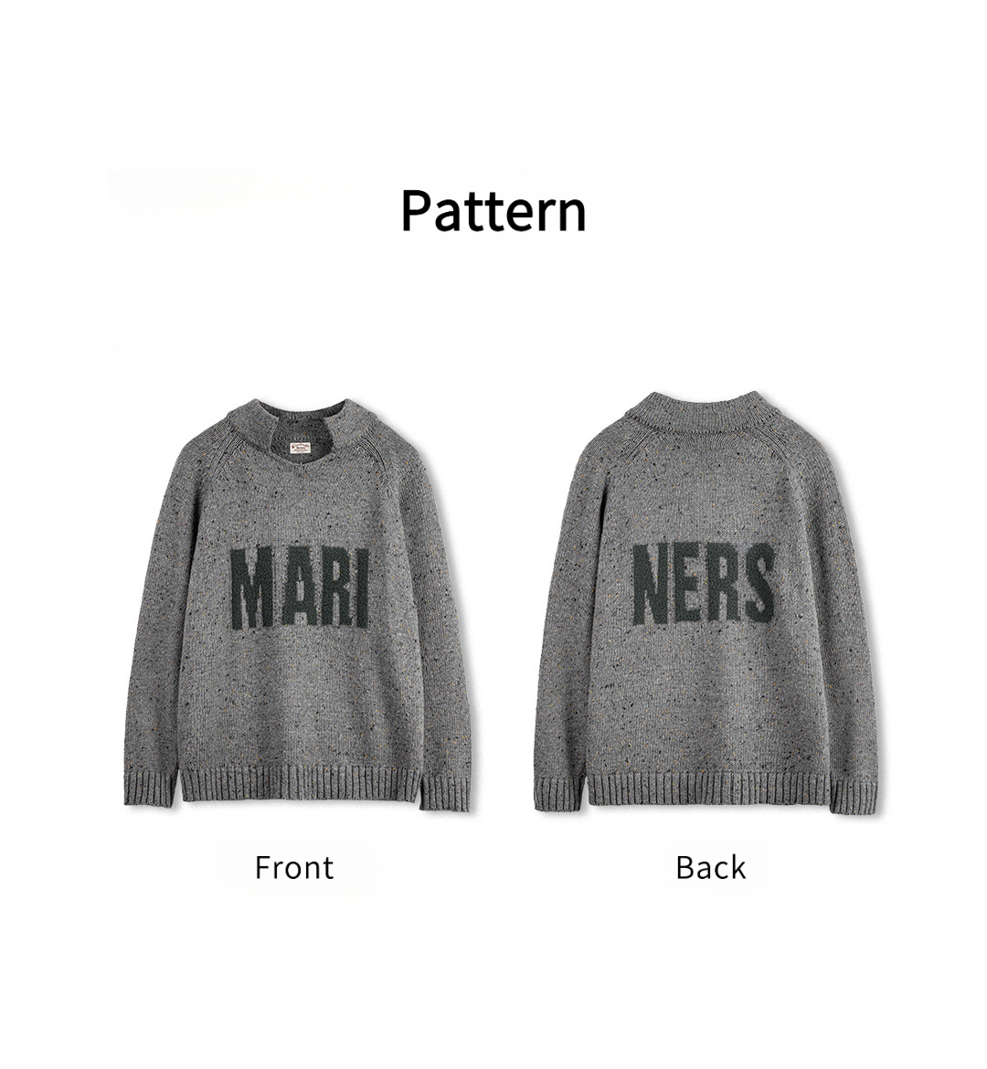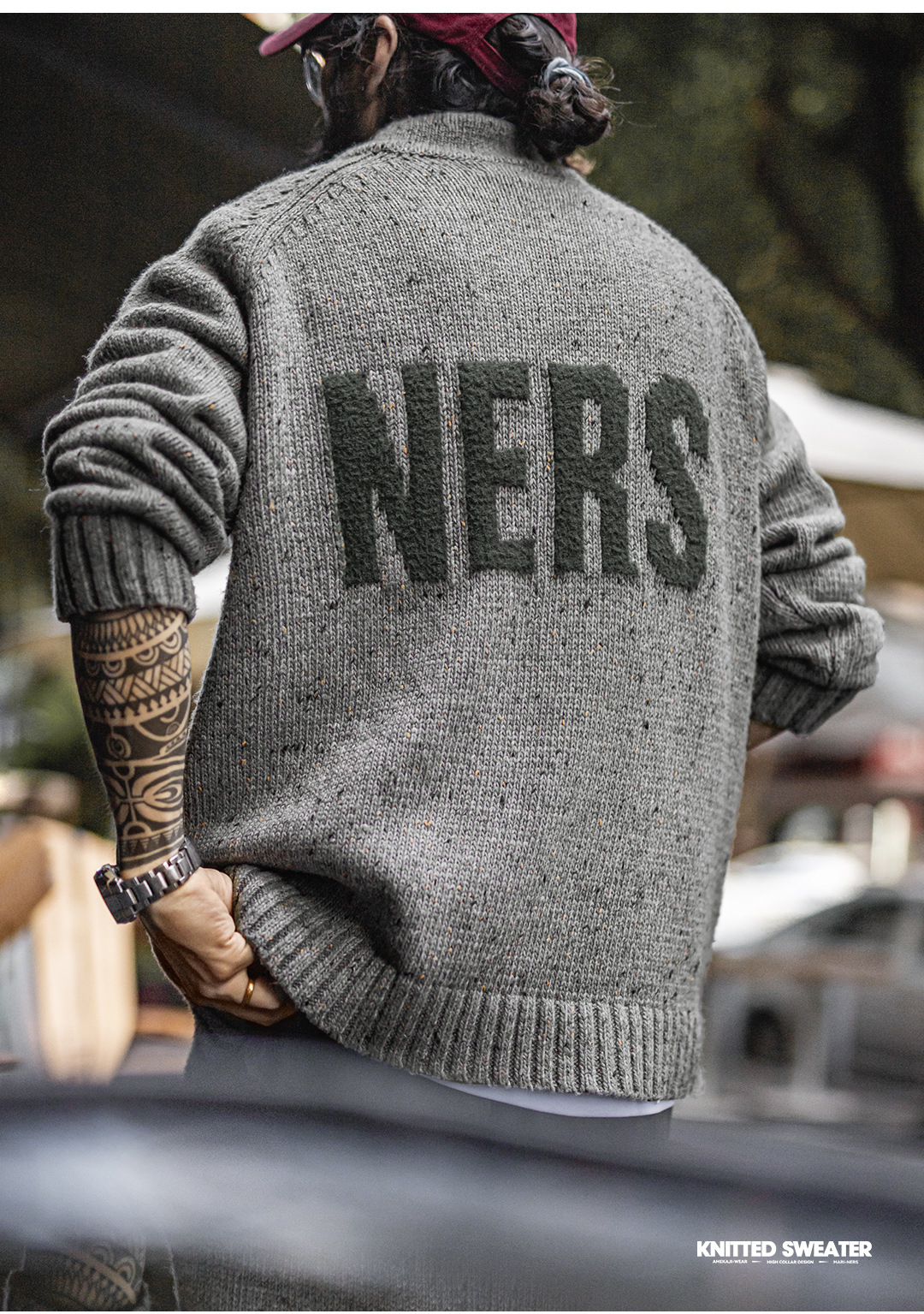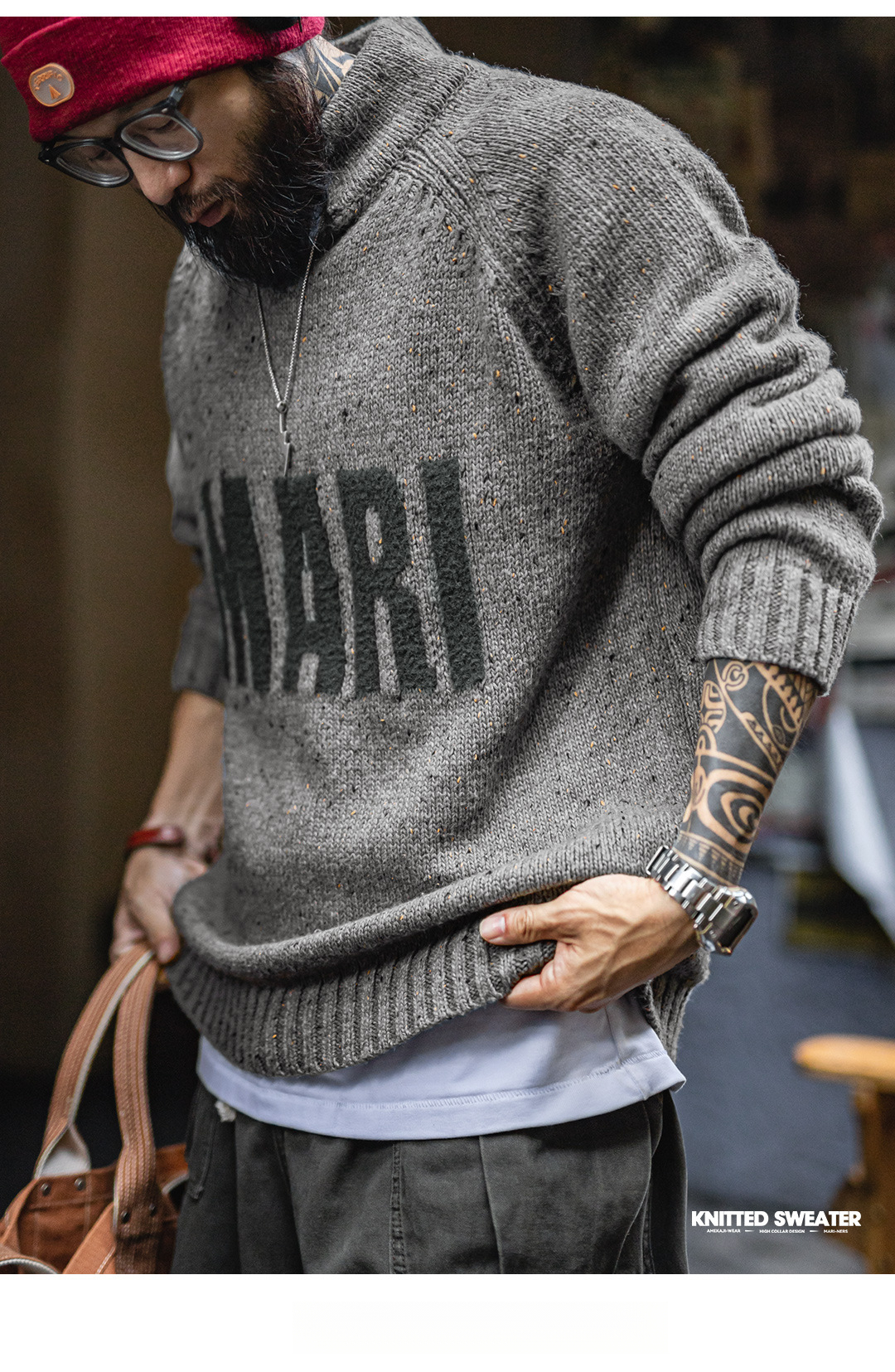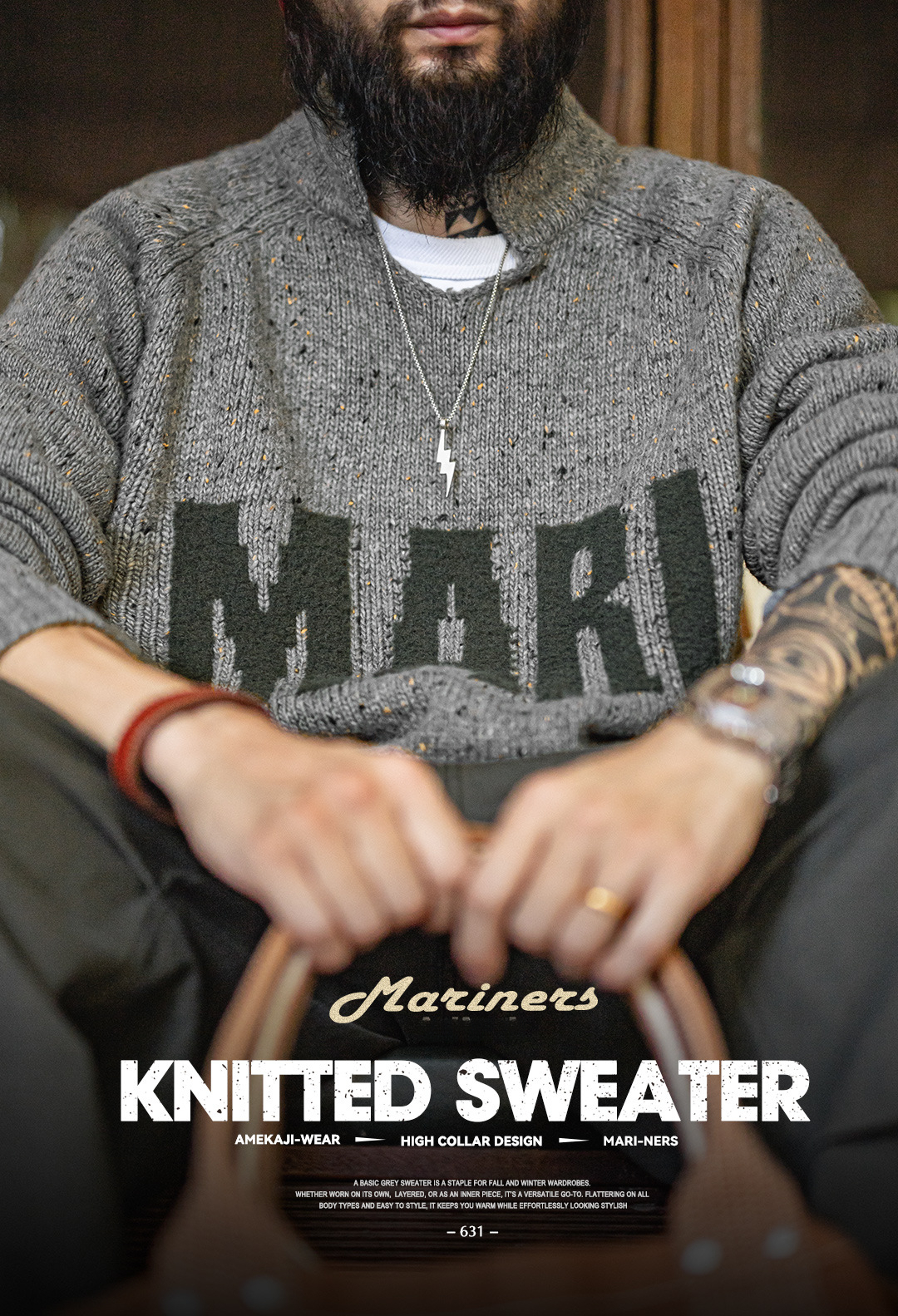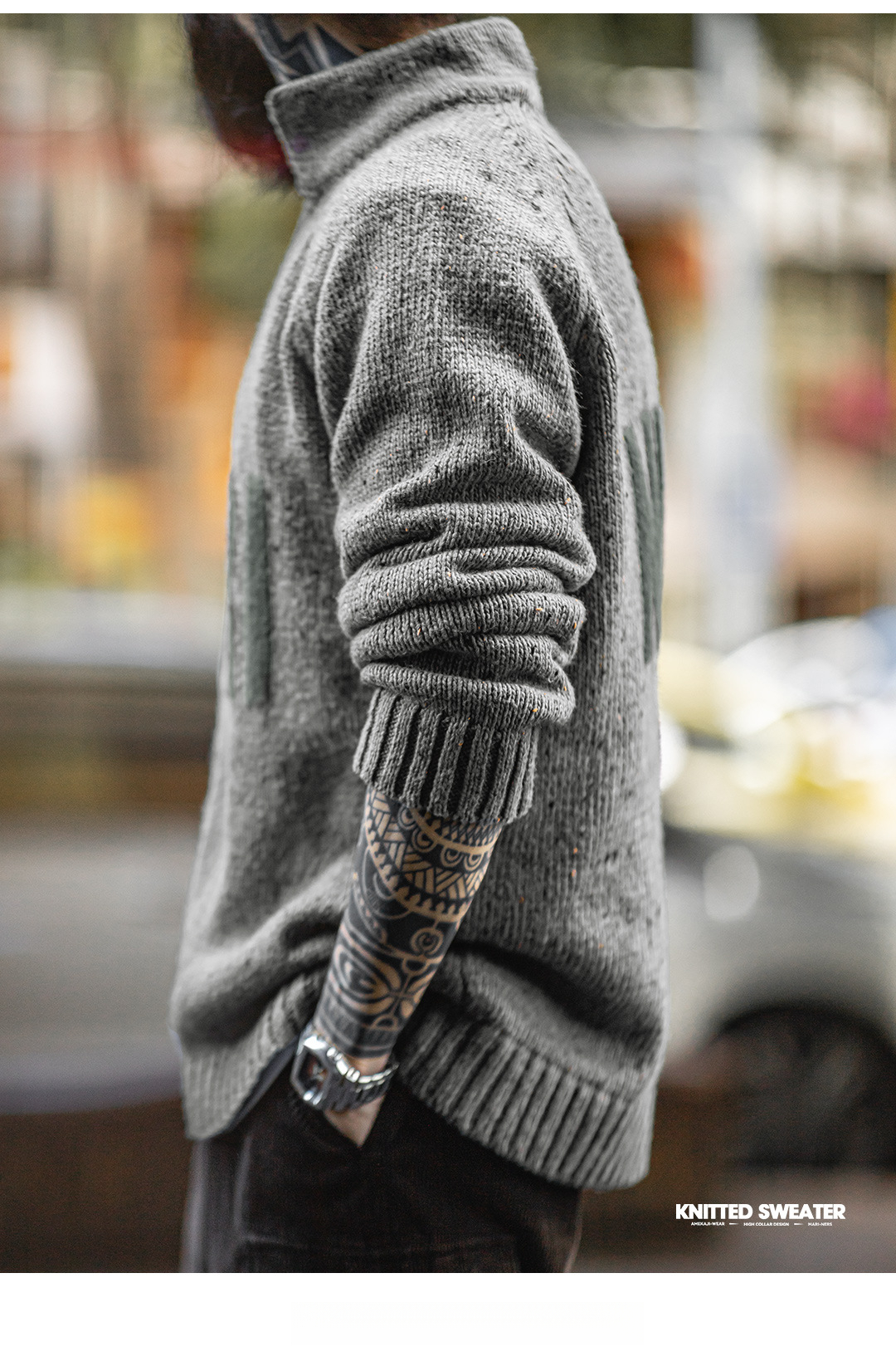 American Retro Gray Jacquard Stand Up Collar Hanging Knitted Warm Sweater