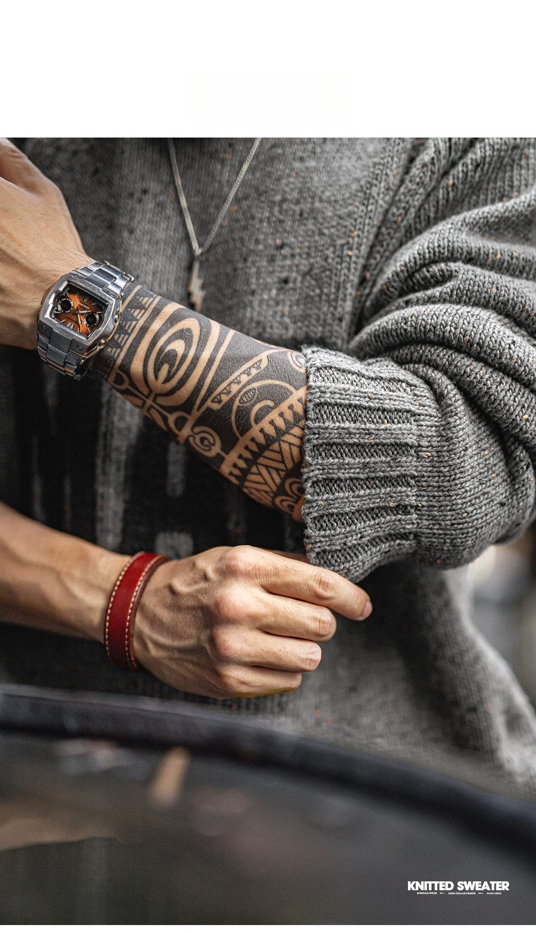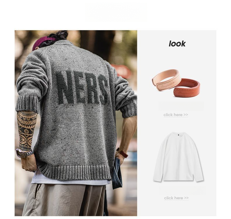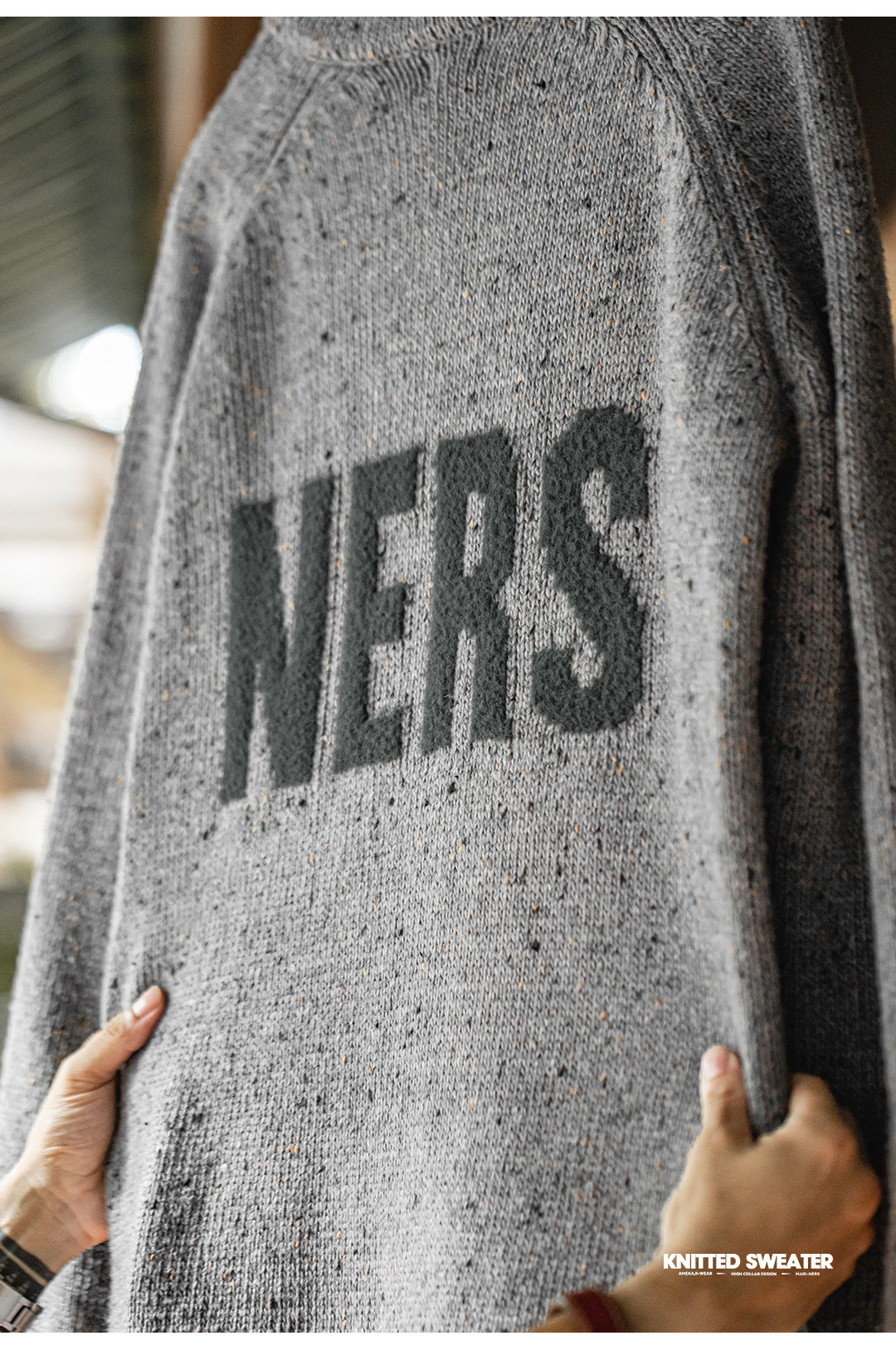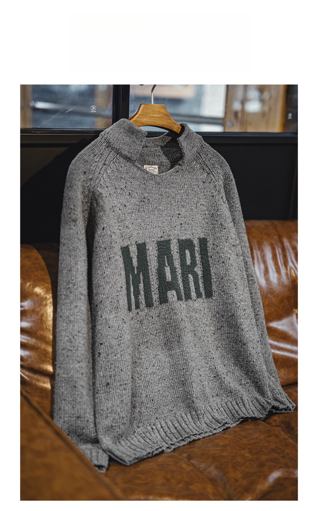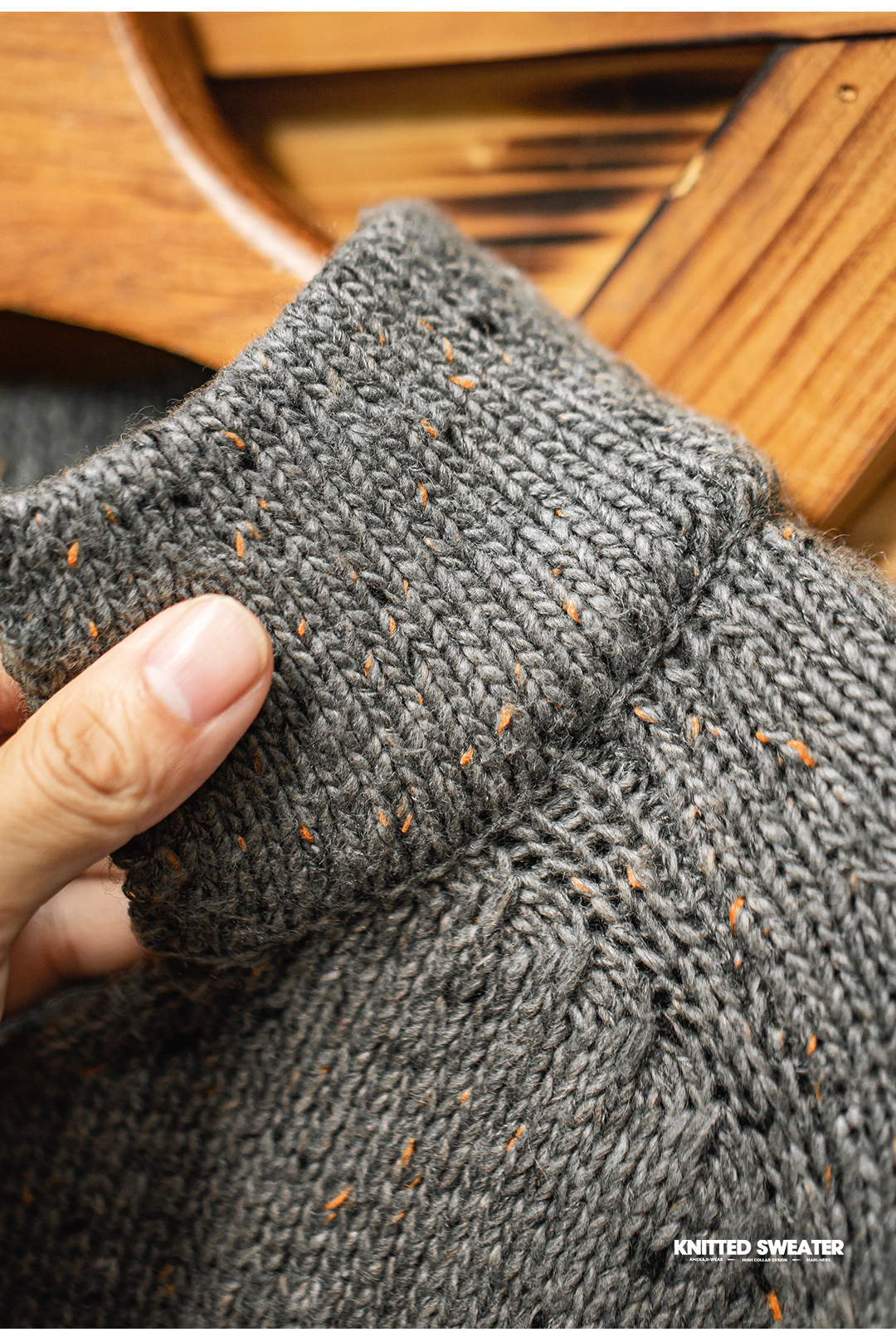 American Retro Gray Jacquard Stand Up Collar Hanging Knitted Warm Sweater