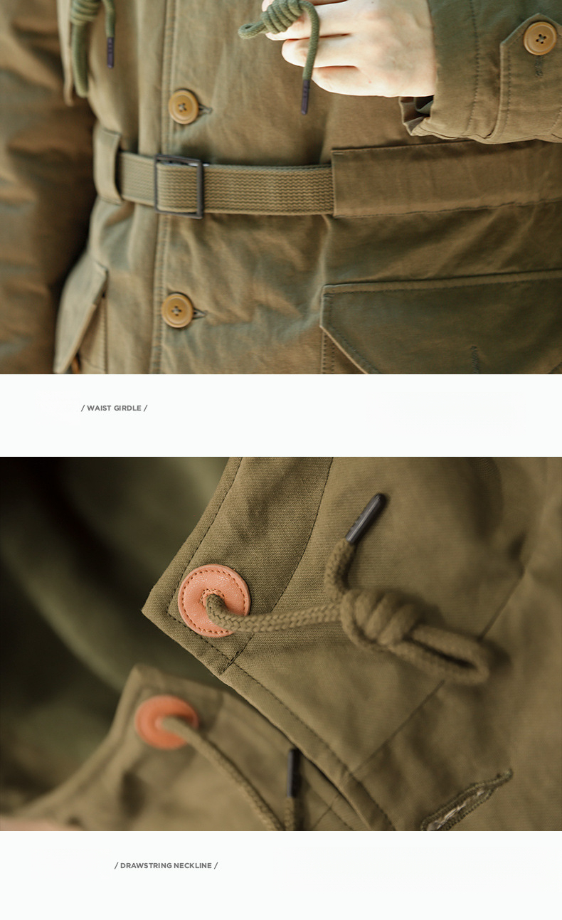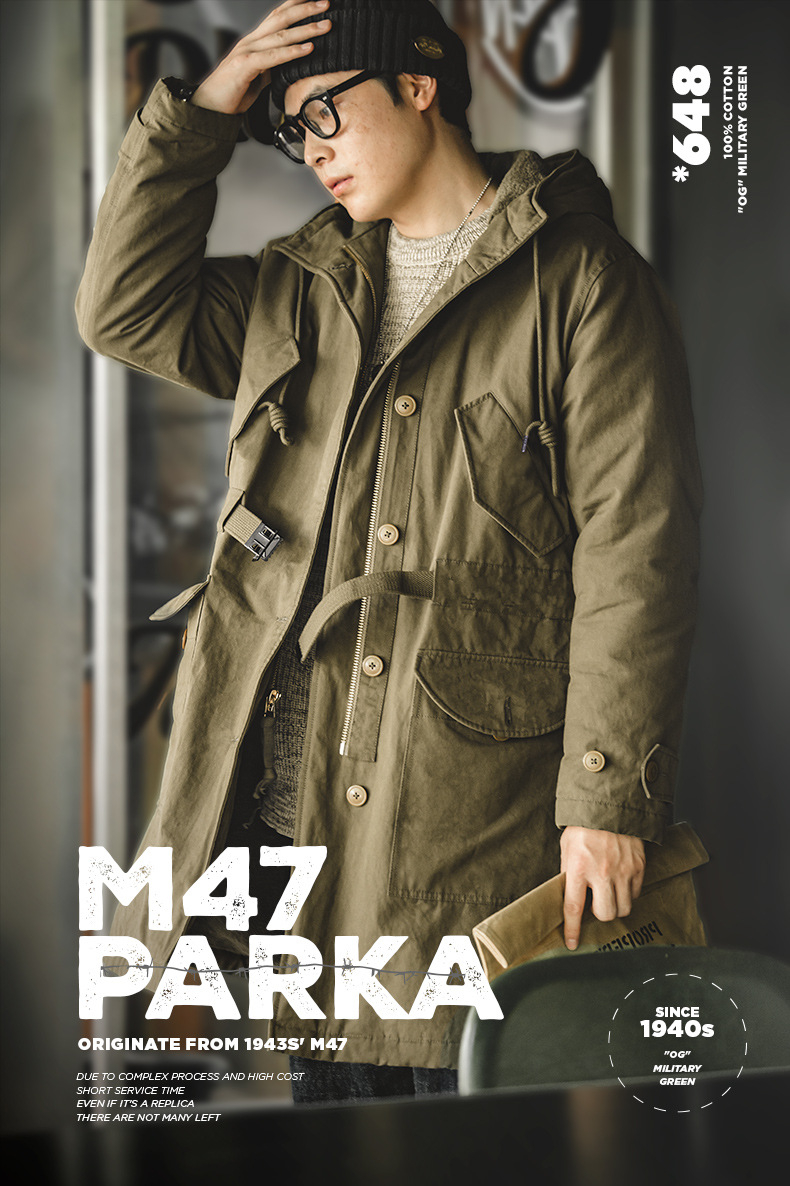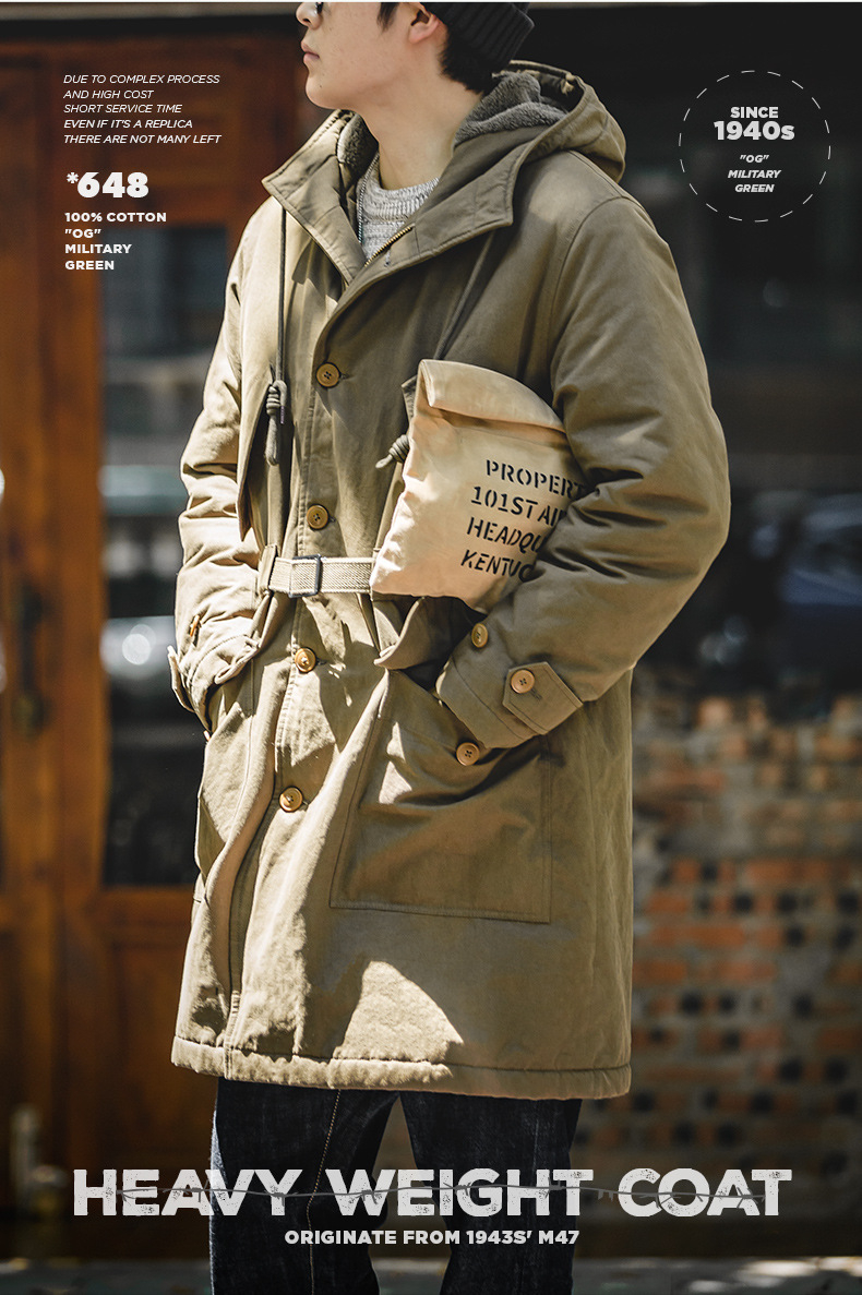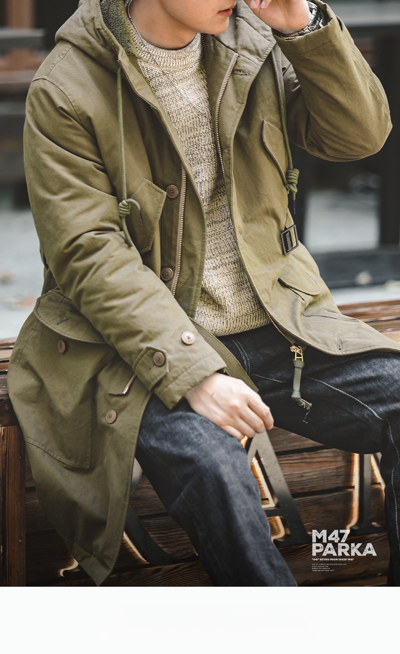 American Retro M47 Heavy-Duty Hooded Warm Mid Length Cotton Jacket