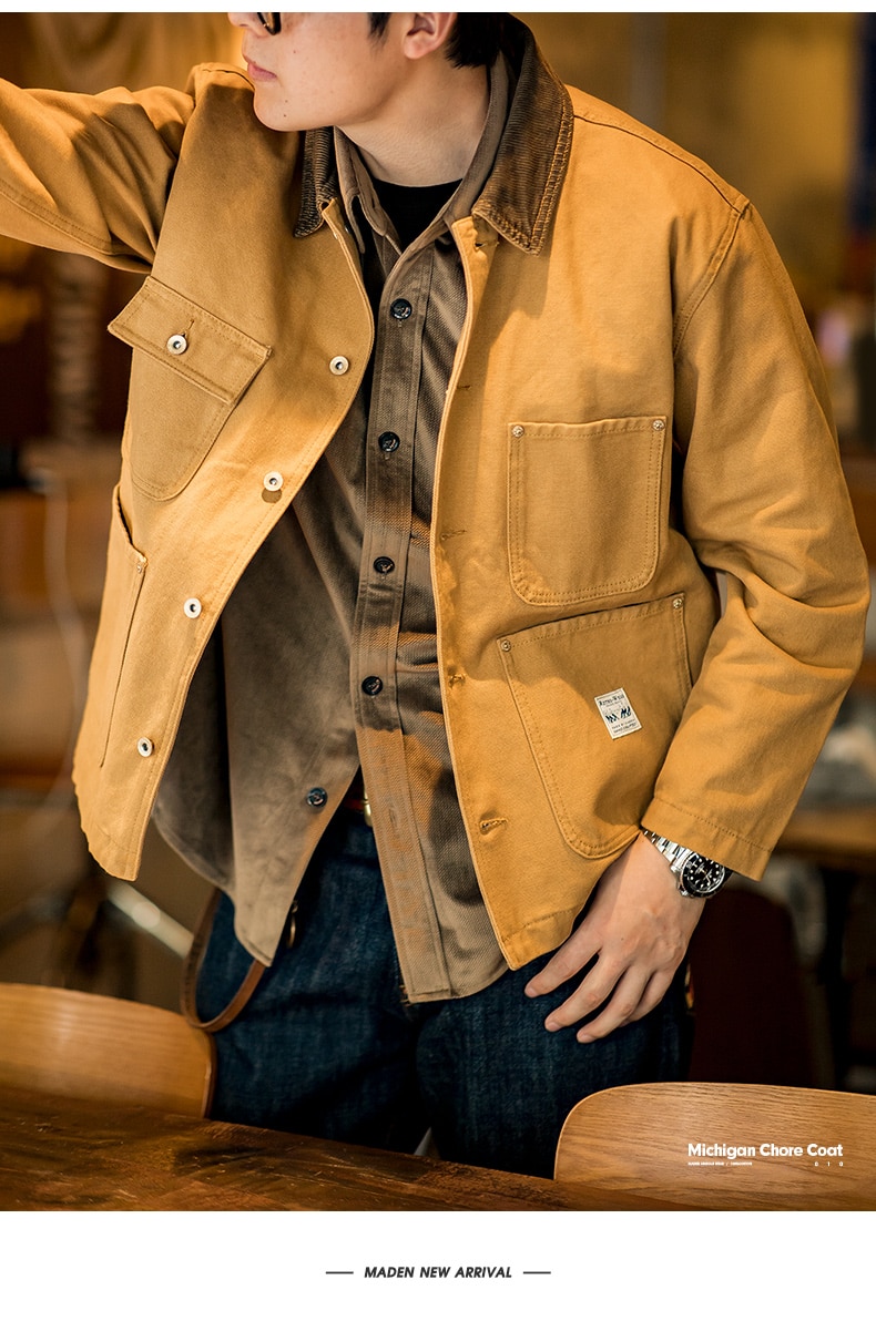 Maden American Retro Heavy Michigan Canvas Jackets Multi-pocket Khaki Lapel Thin Coats Men Autumn Jacket Fashion Trench Coat
