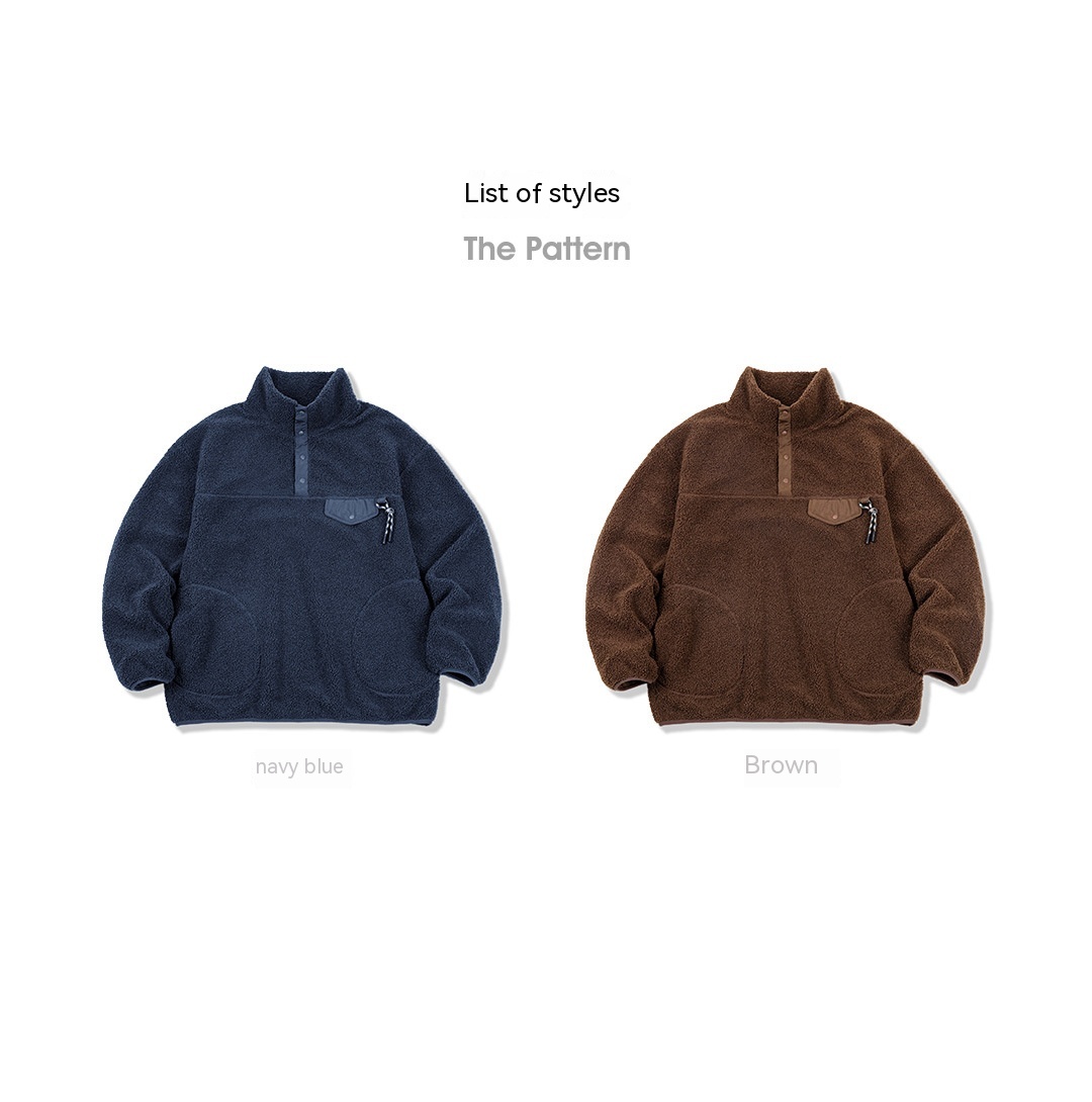 Casual Half Cardigan Fleece Sweater Stand Collar Polar Fleece Pullover Warm Coat