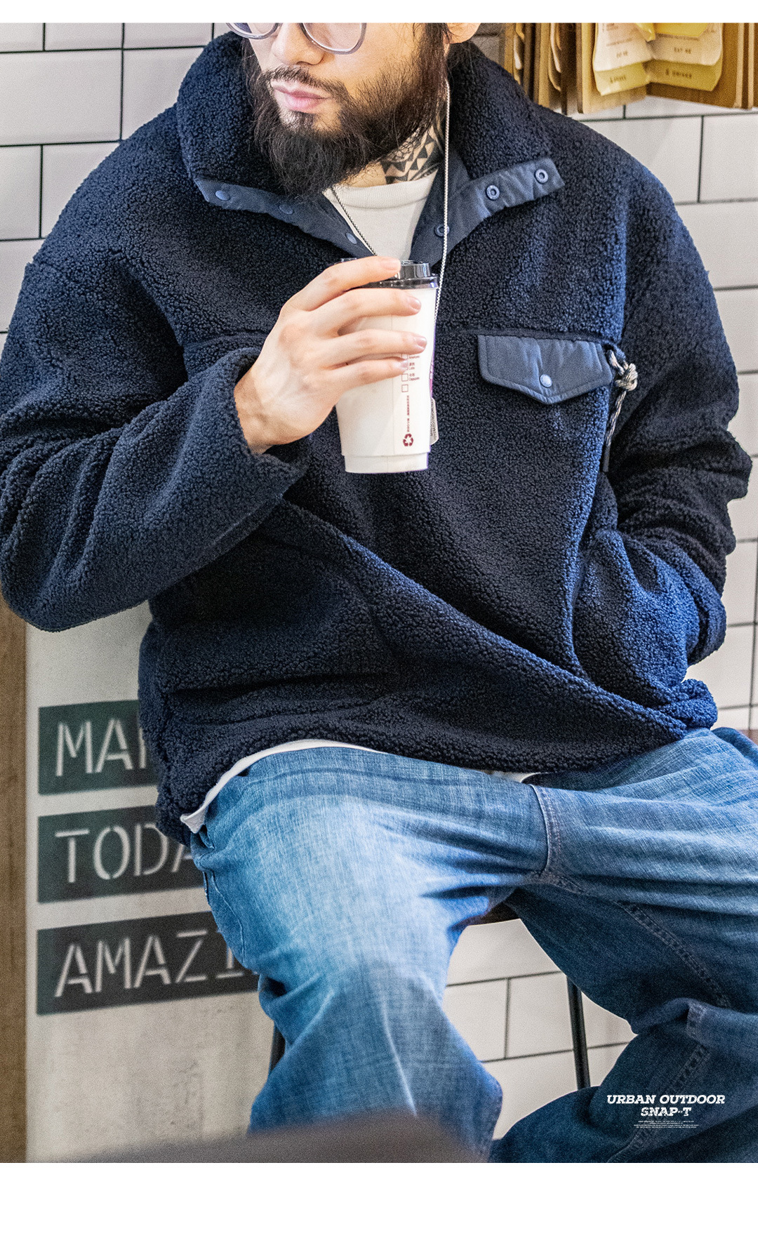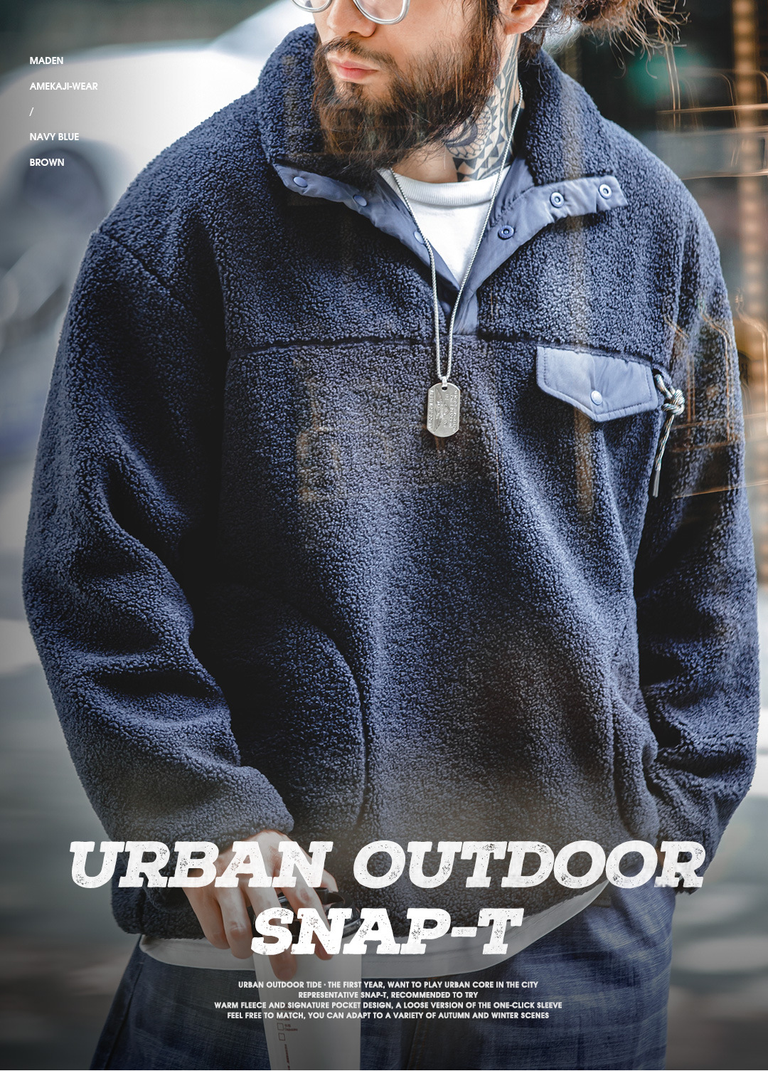 Maden Casual Half Cardigan Fleece Sweater Stand Collar Polar Fleece Pullover Warm Coat
