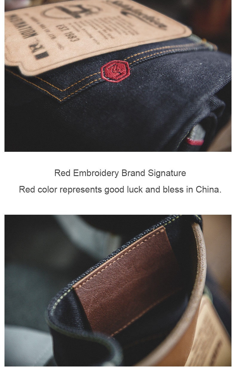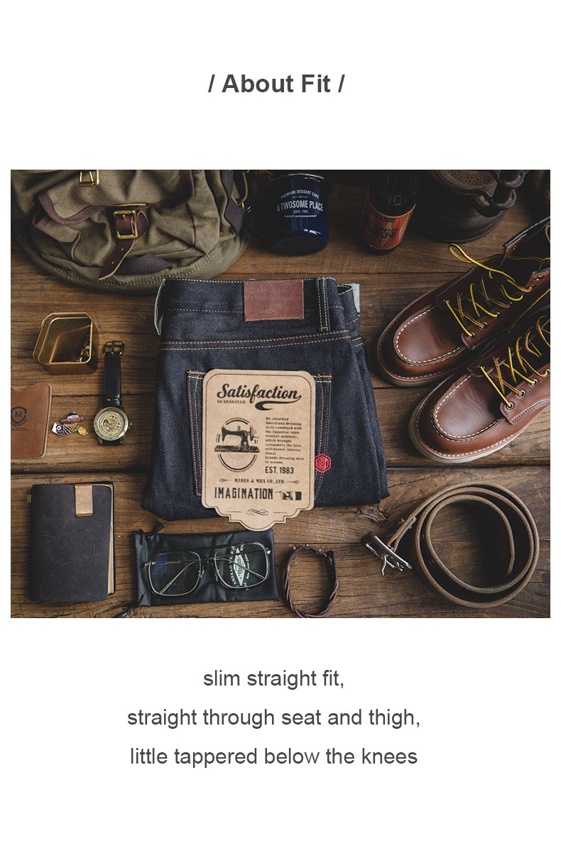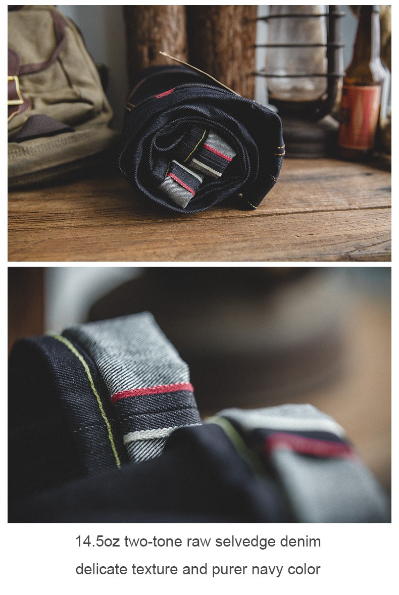 Maden High-end Dark Jeans Size 28 to 36 Retro 14.5oz Classic Cotton Slim Straight Original Jeans Uncle Fu Tapered Denim Pants