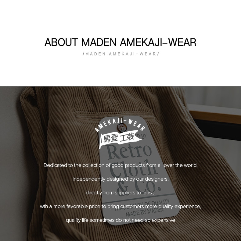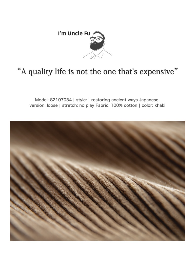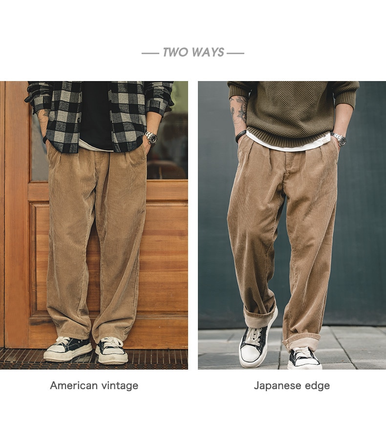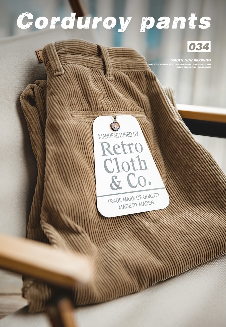 Maden Japanese Retro Loose Corduroy Pants Wide Leg Mid Waist Striped Velvet Straight Trousers Men's Winter Casual  Cargo Pants