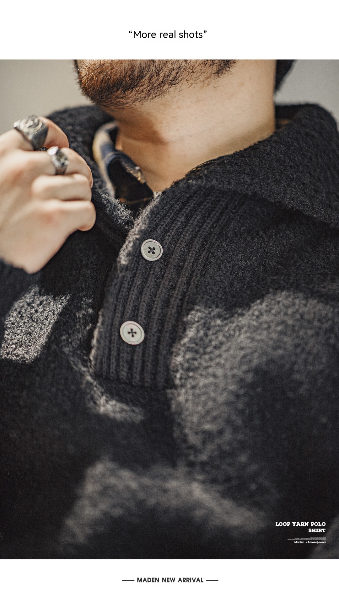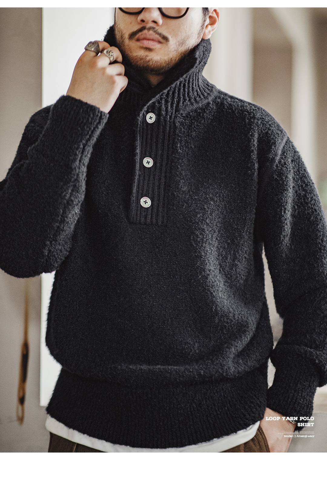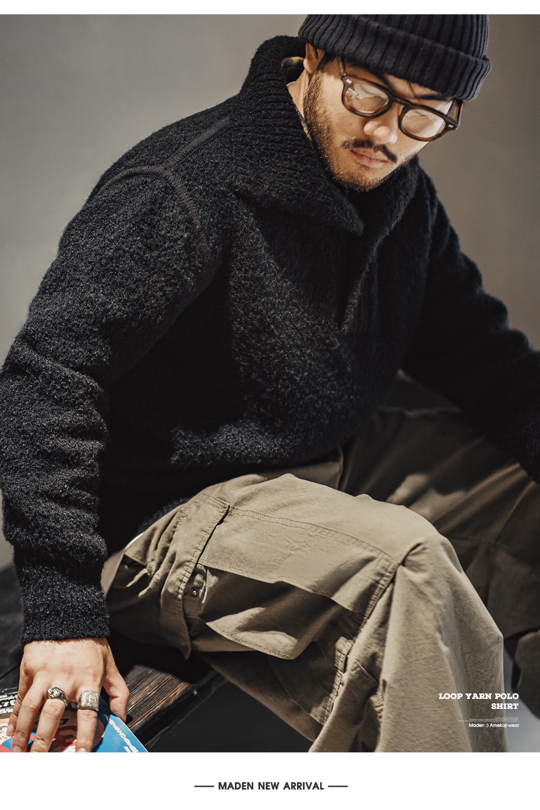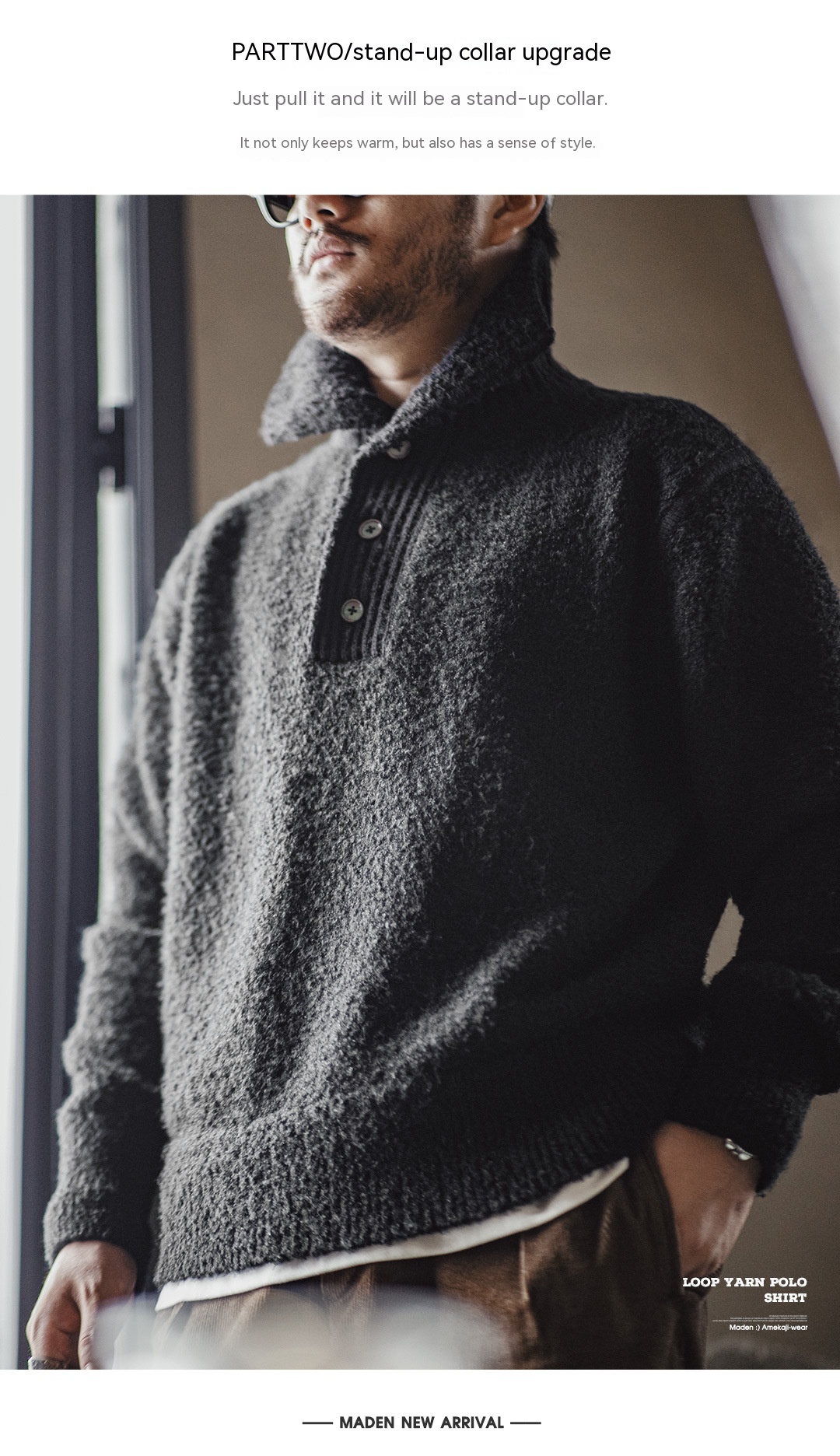 MADEN Retro Heavy Knitwear Polo Lapel Thermal Head Cover Thick Sweater