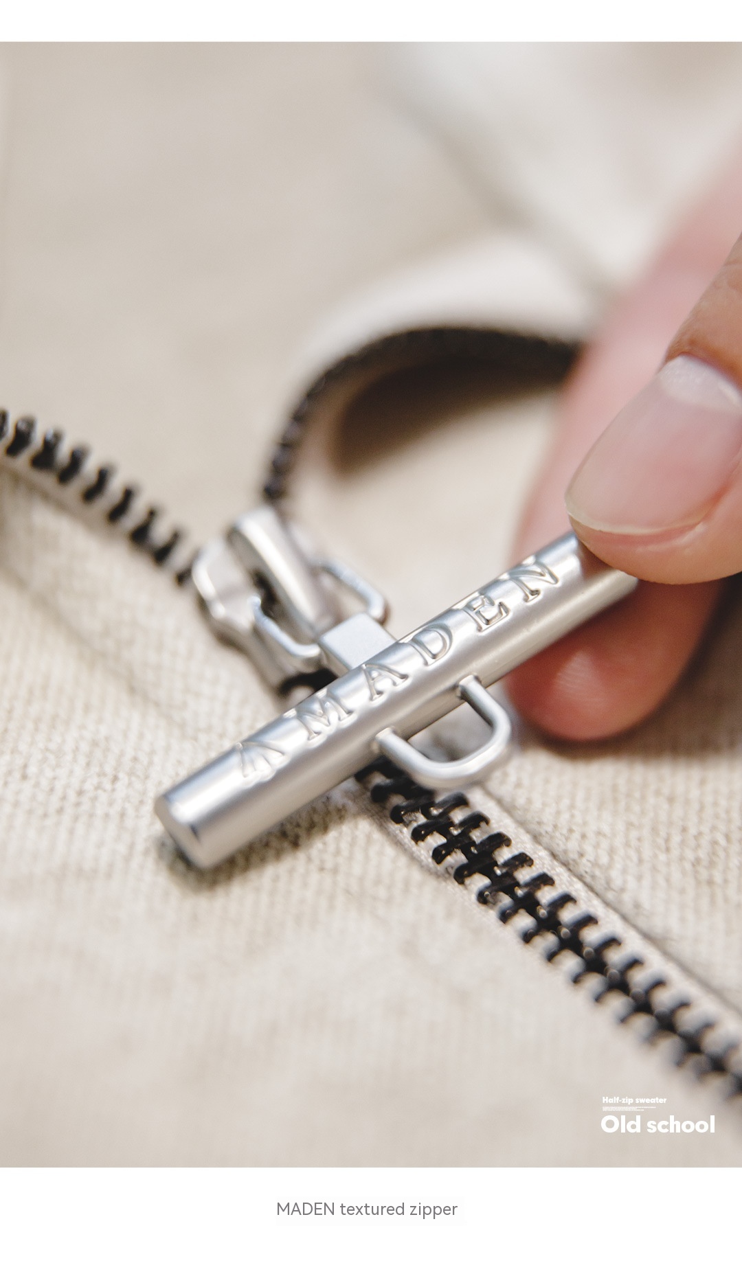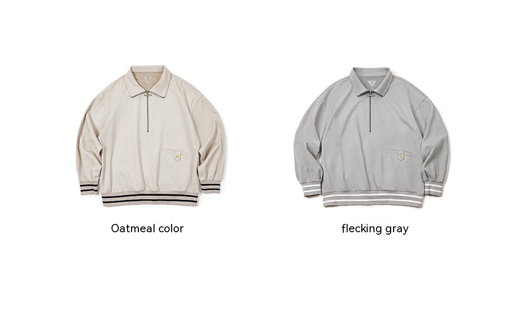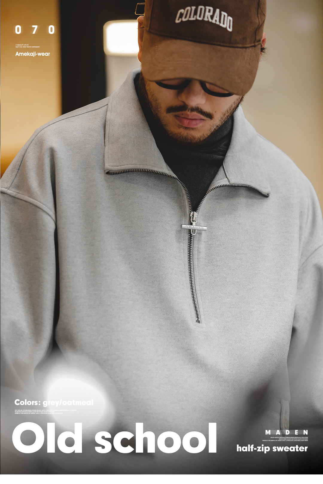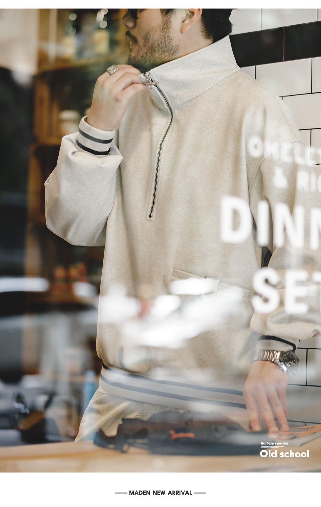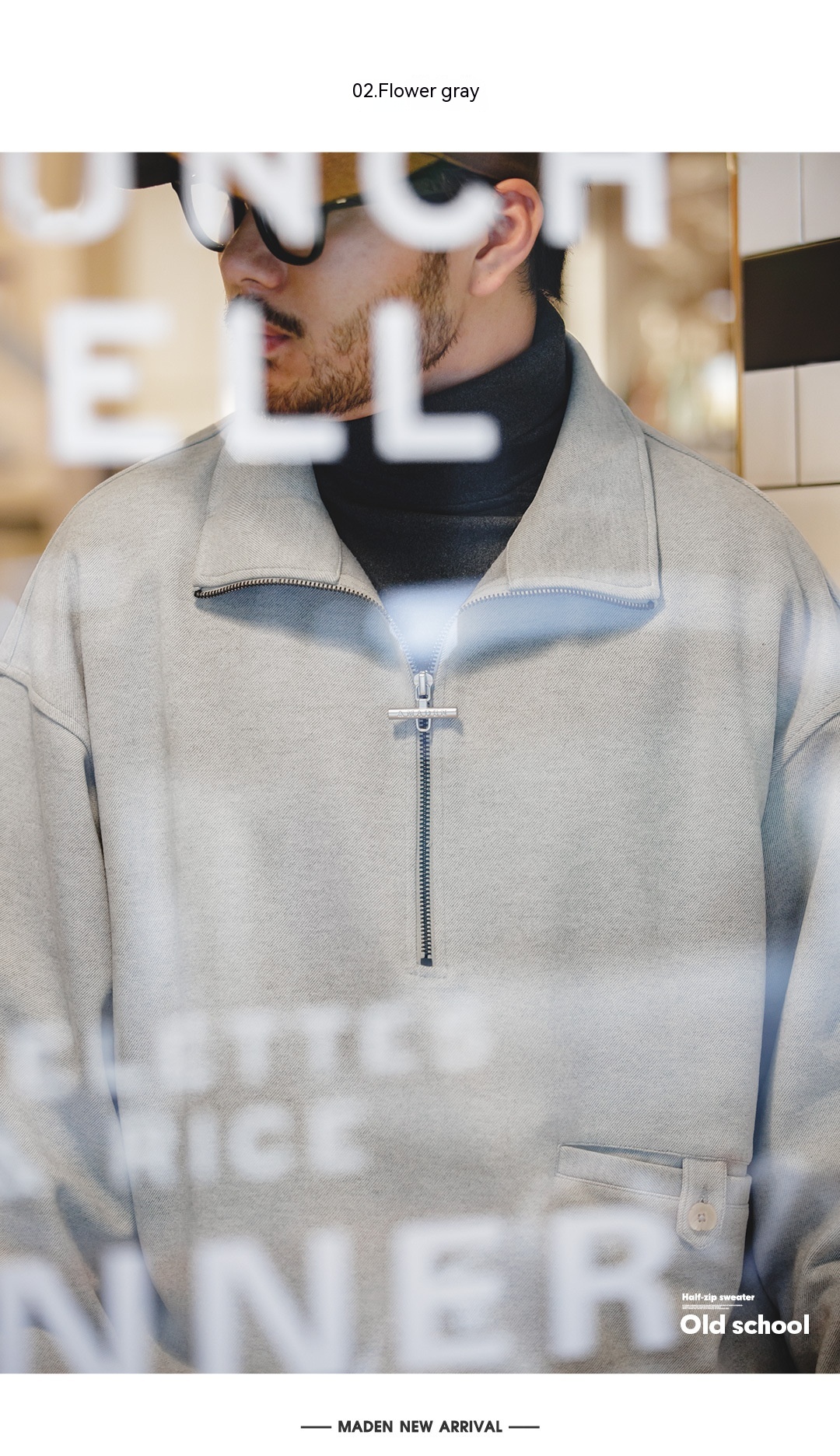 Retro Ivy College Half Zipper Heavy Lapel Loose Pullover Top