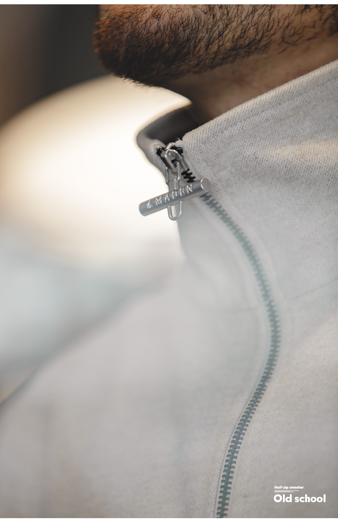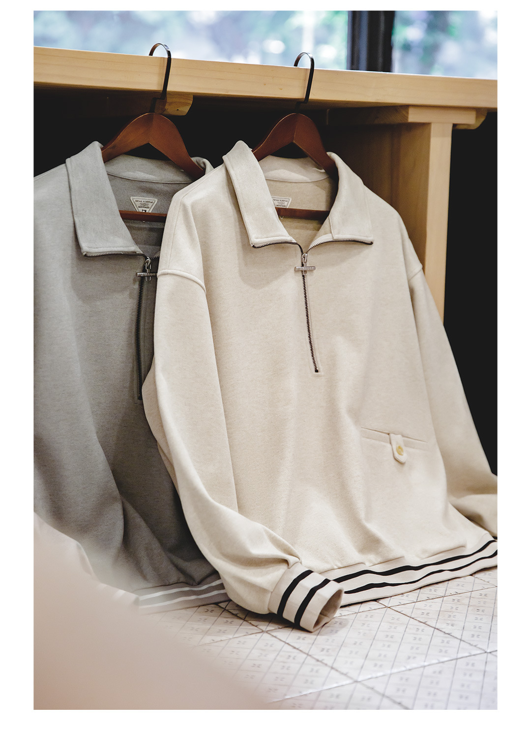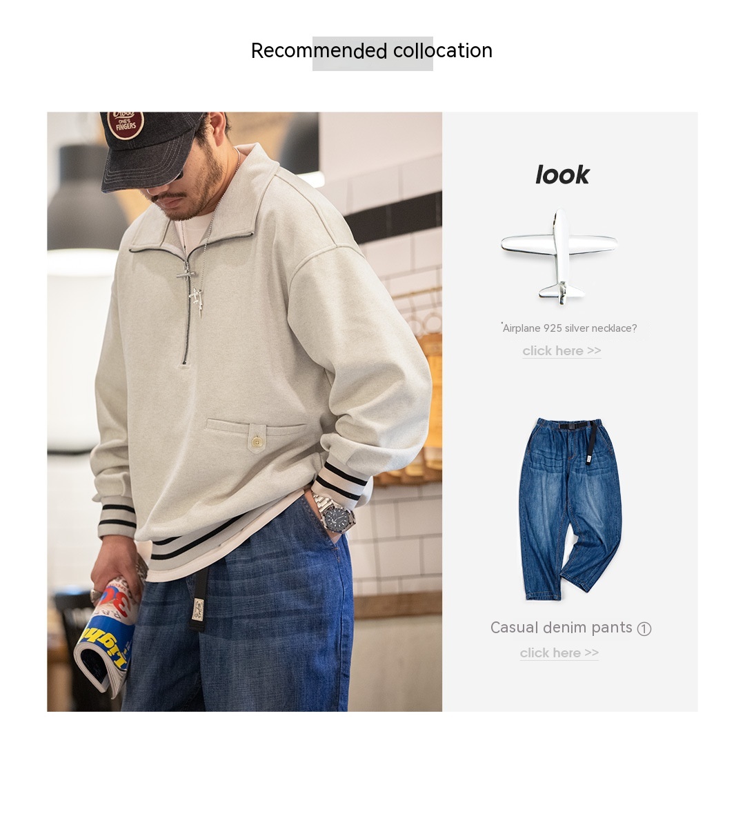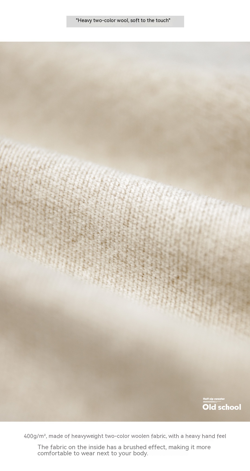 Retro Ivy College Half Zipper Heavy Lapel Loose Pullover Top