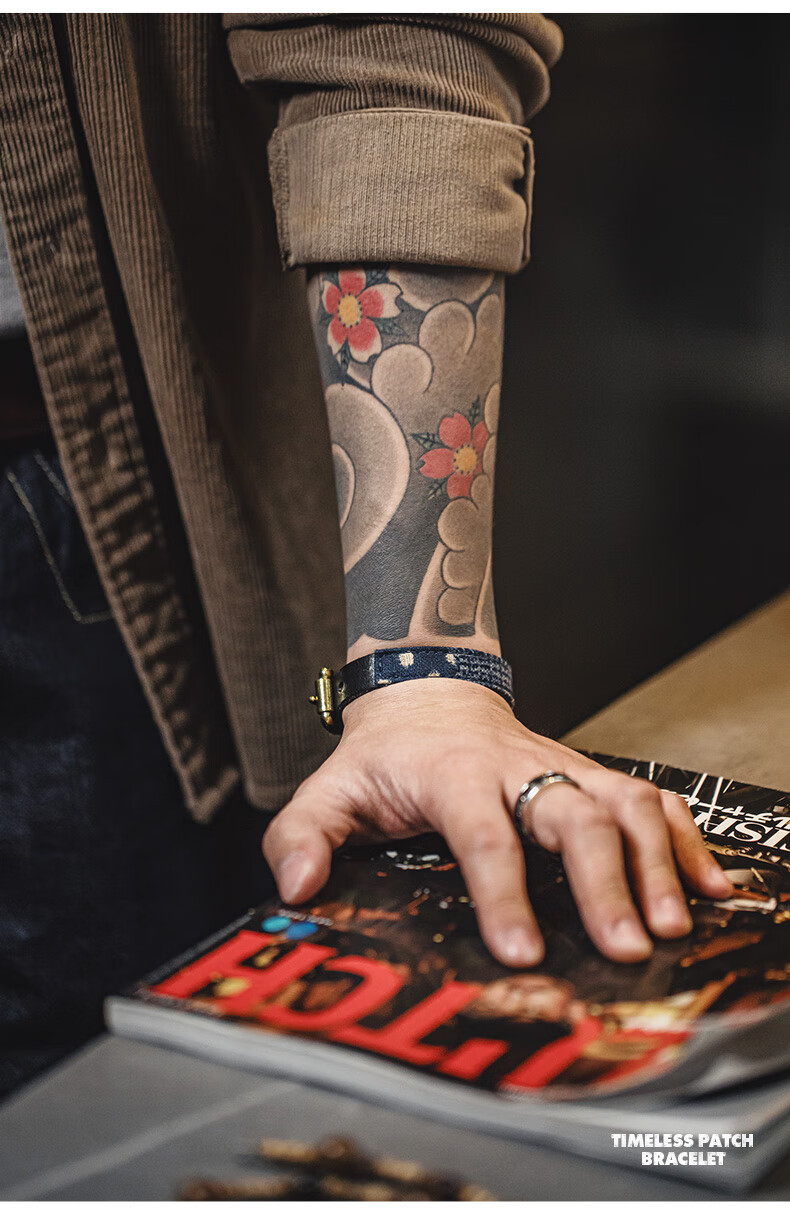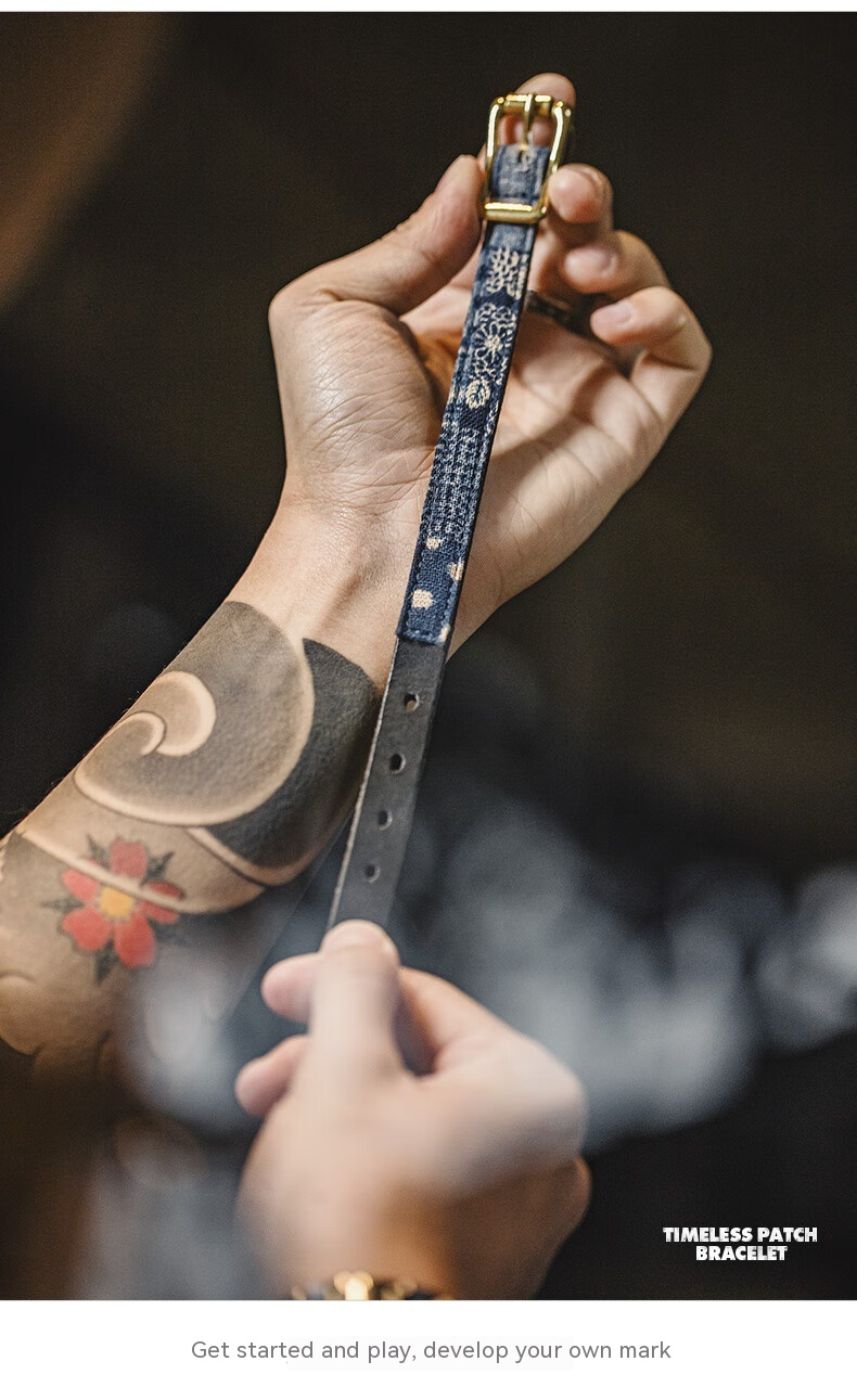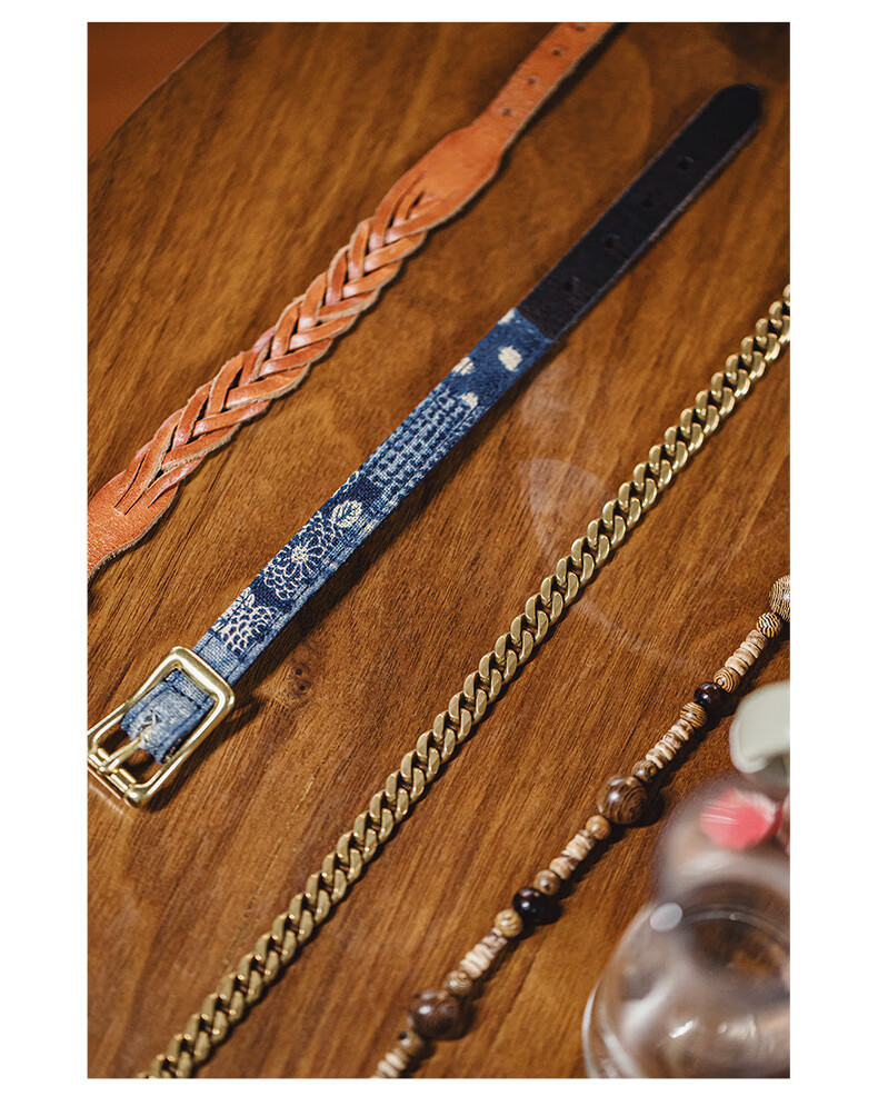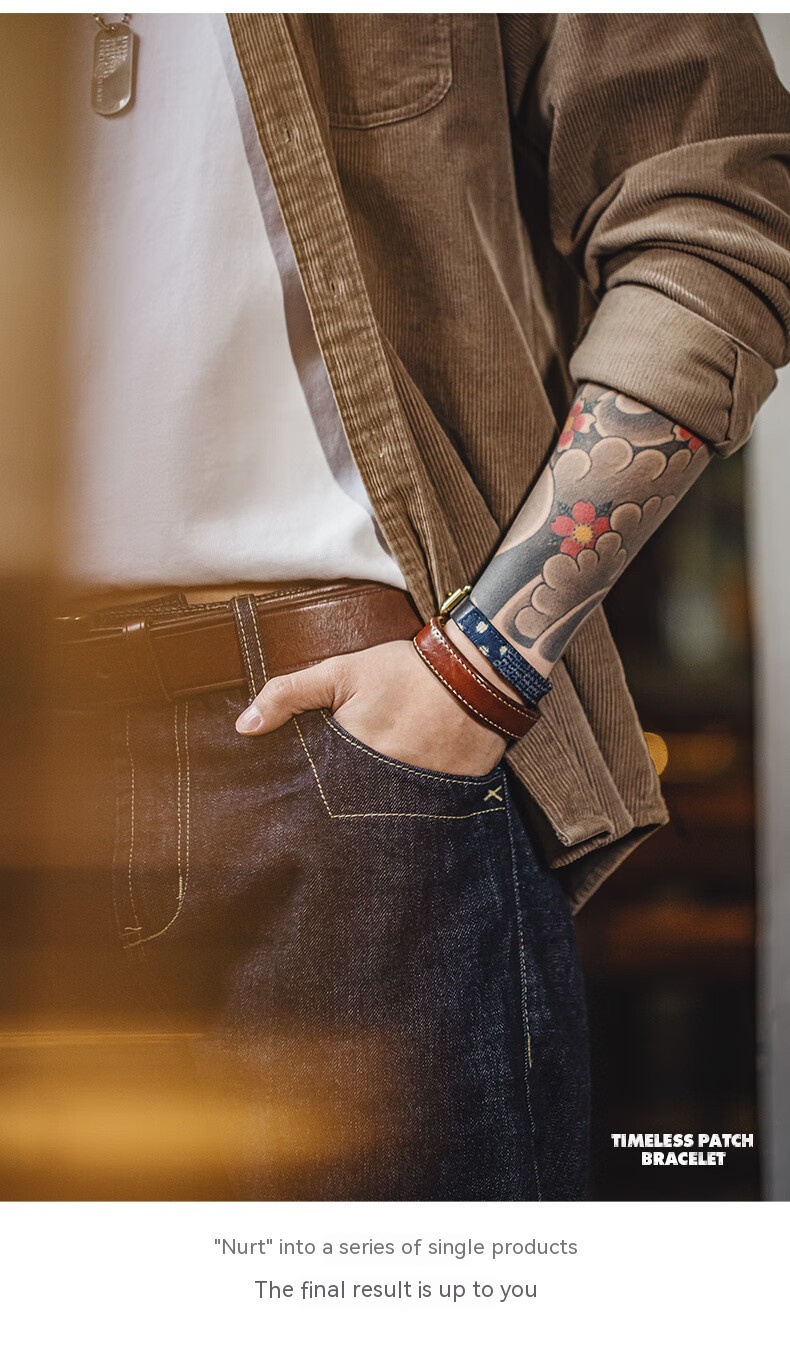 Magi Vintage Splicing Bracelet Brass Head Layer Plant Tanned Cowhide Bracelet