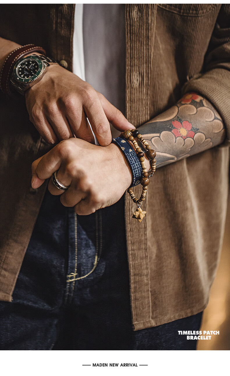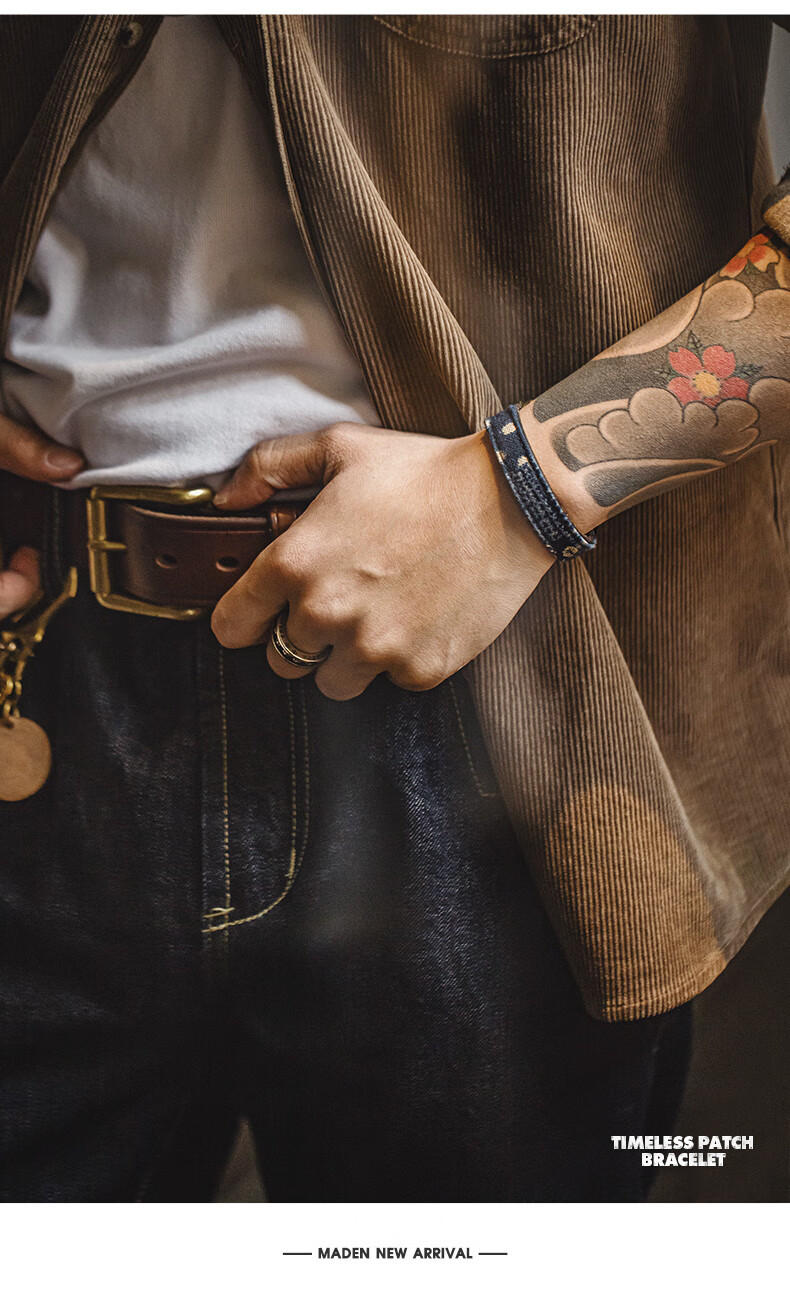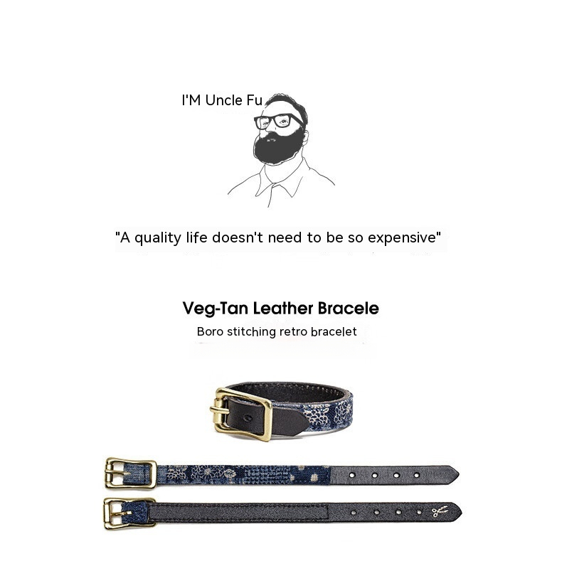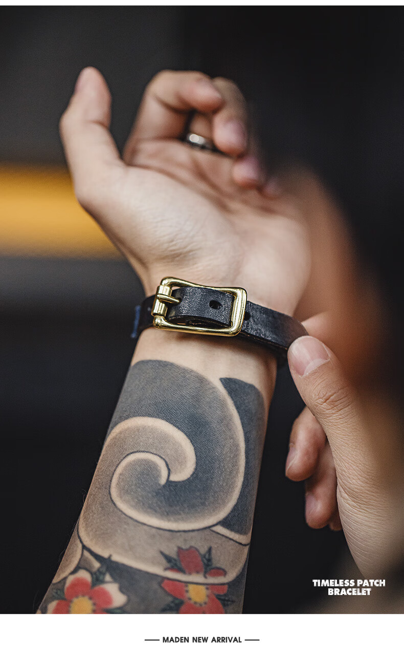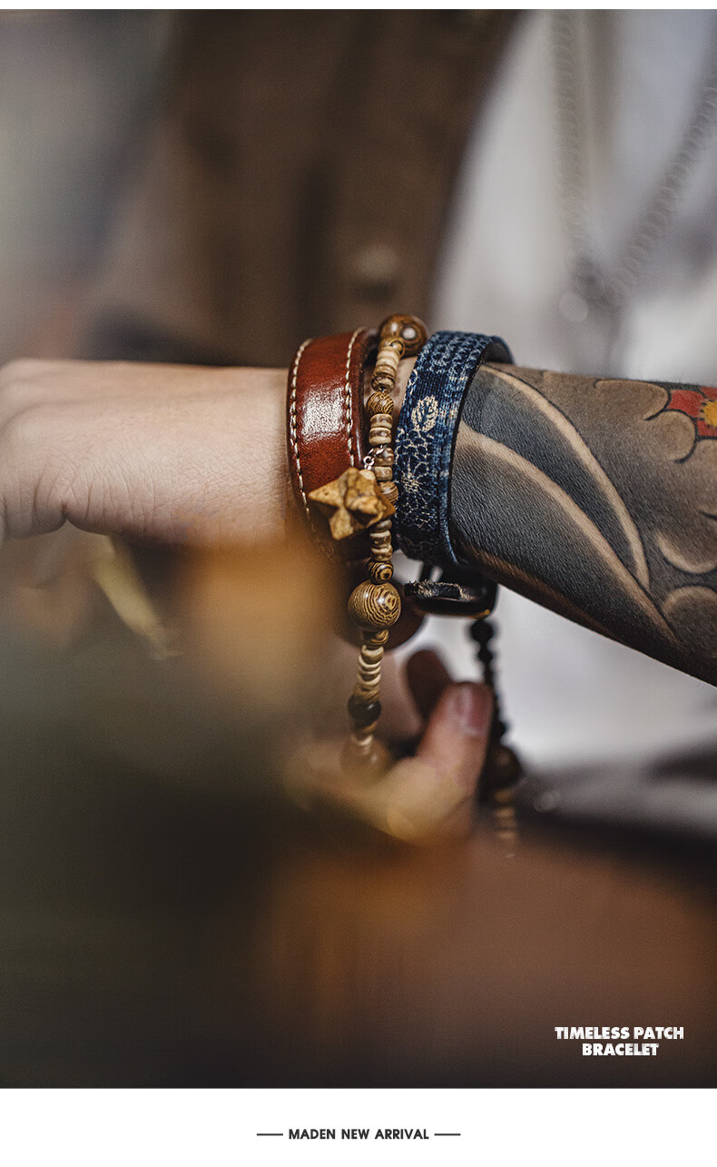 Maden Vintage Splicing Bracelet Brass Head Layer Plant Tanned Cowhide Bracelet