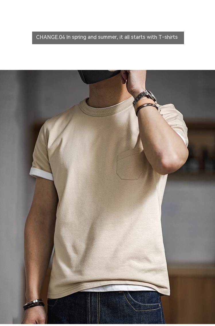 Retro Three-Piece Needle Pocket T-shirt Amekaji Cotton Half Sleeve Tough Guy Short Sleeve