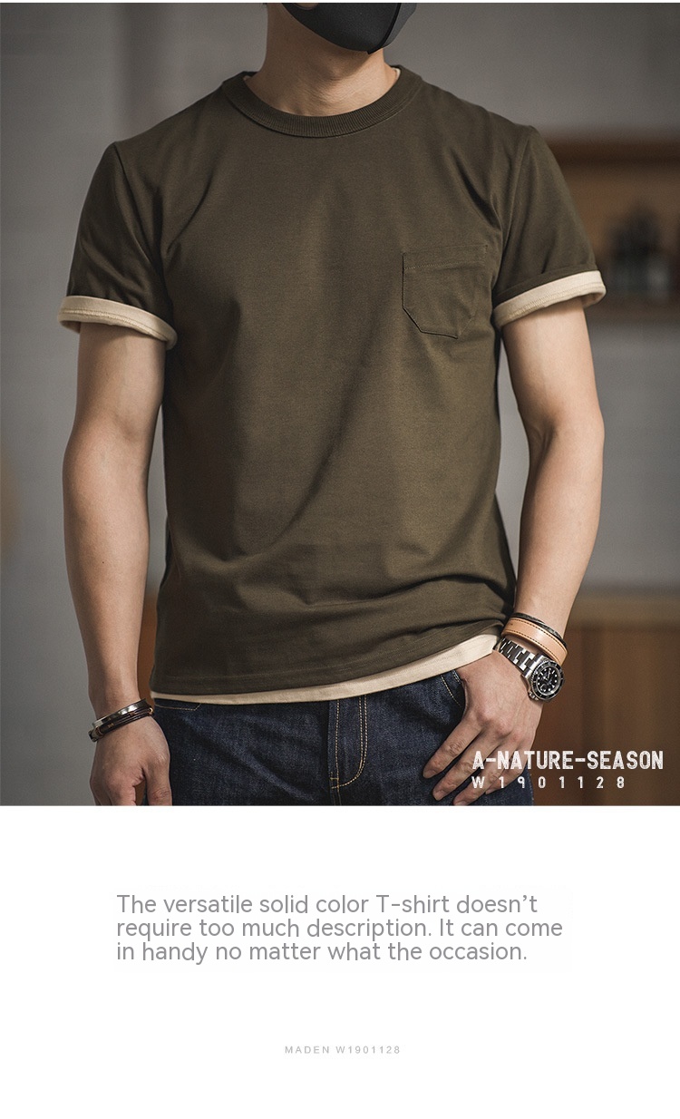 Maden Retro Three-Piece Needle Pocket T-shirt Amekaji Cotton Half Sleeve Tough Guy Short Sleeve