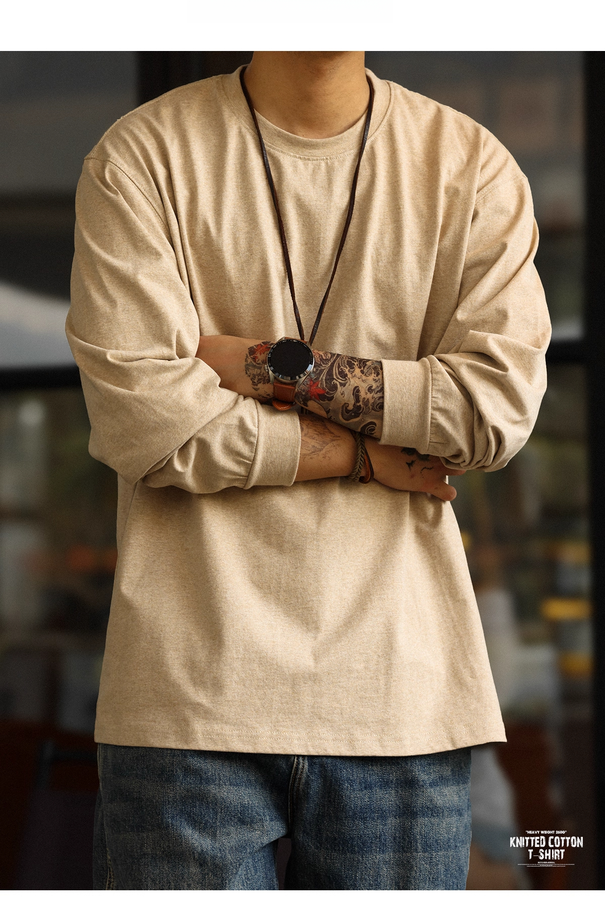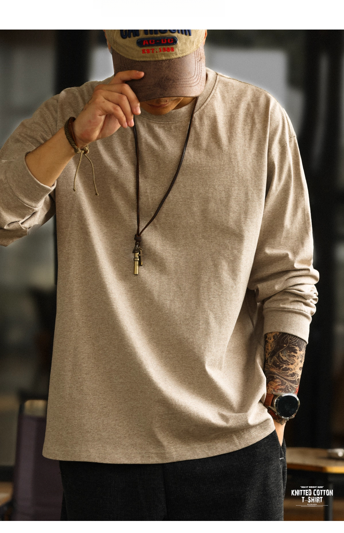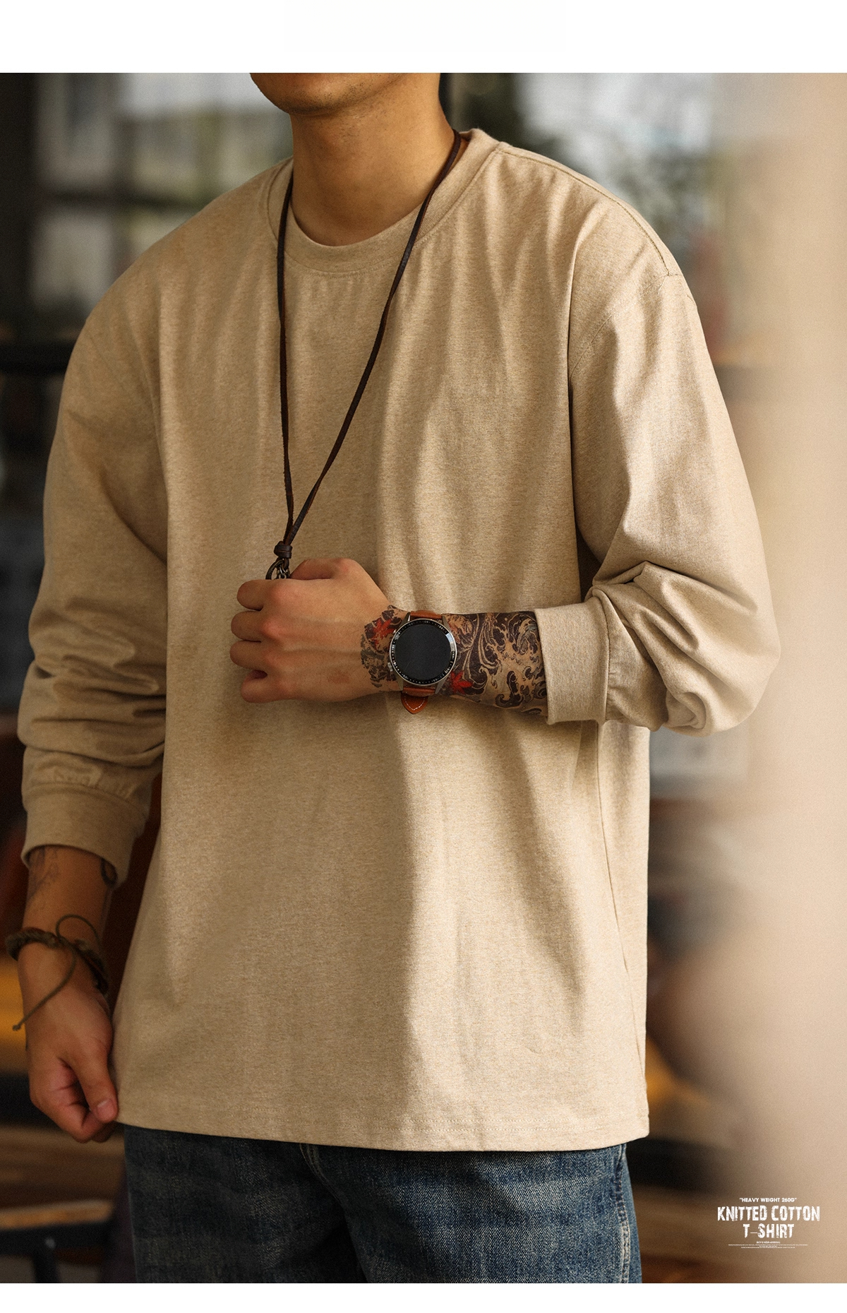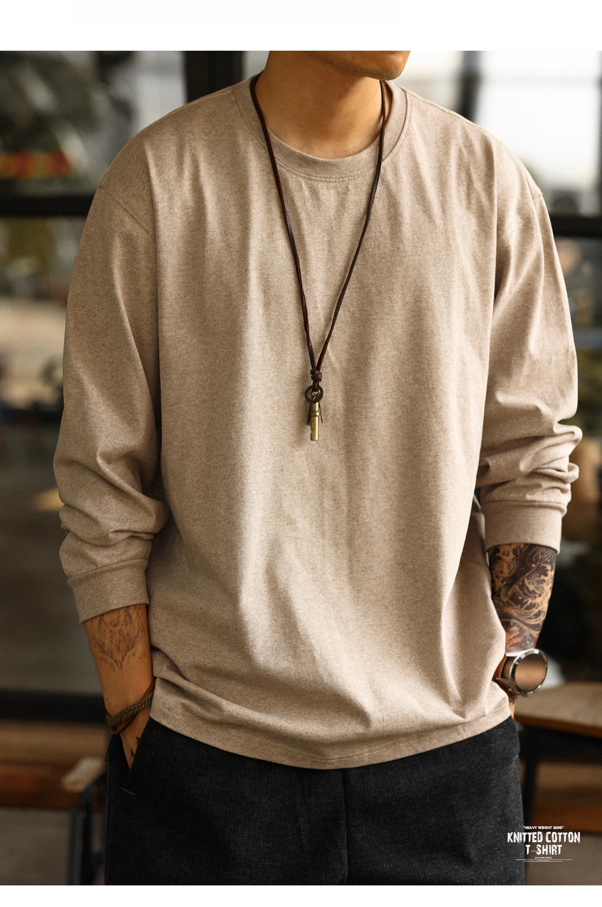 American Casual 260g Oat Gray Round Neck Men's Autumn Loose Basic T-Shirt