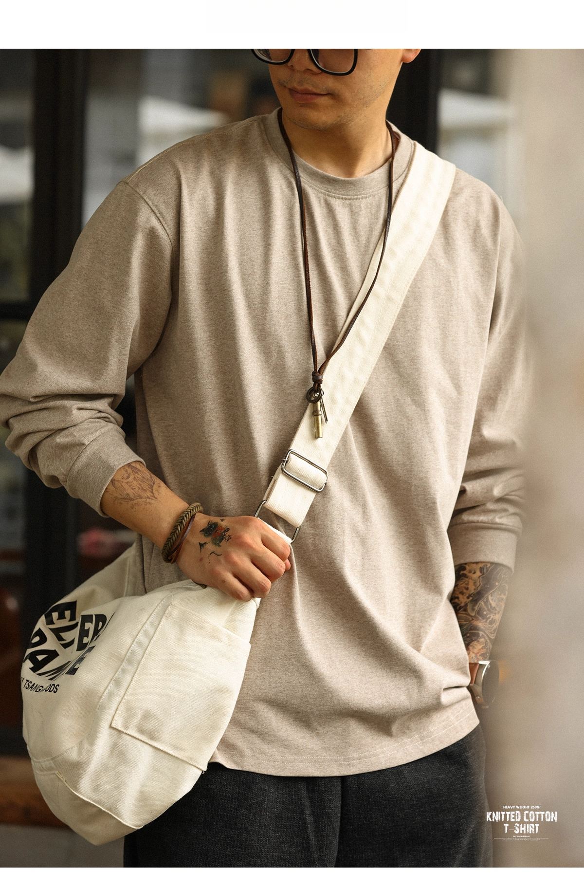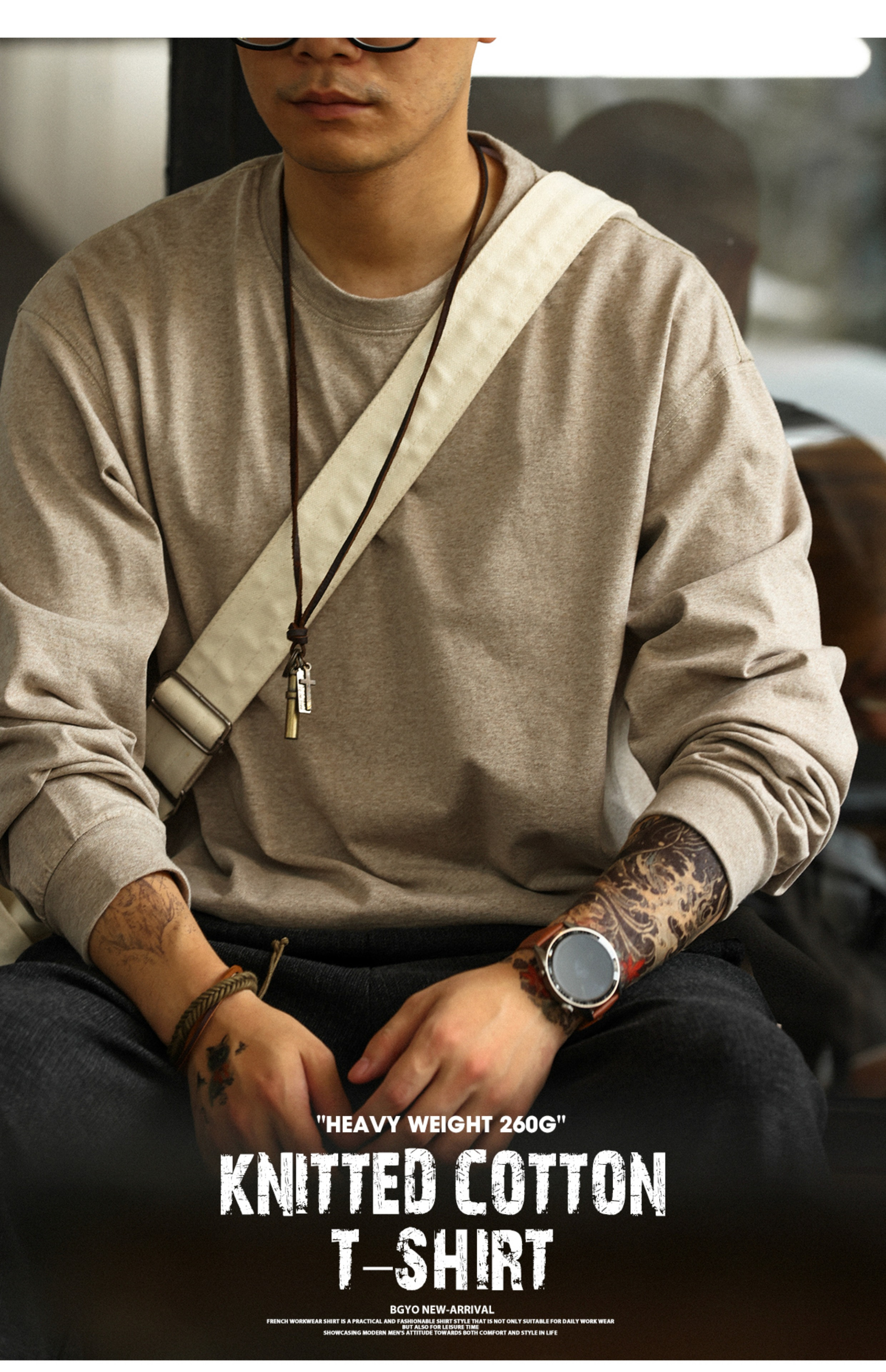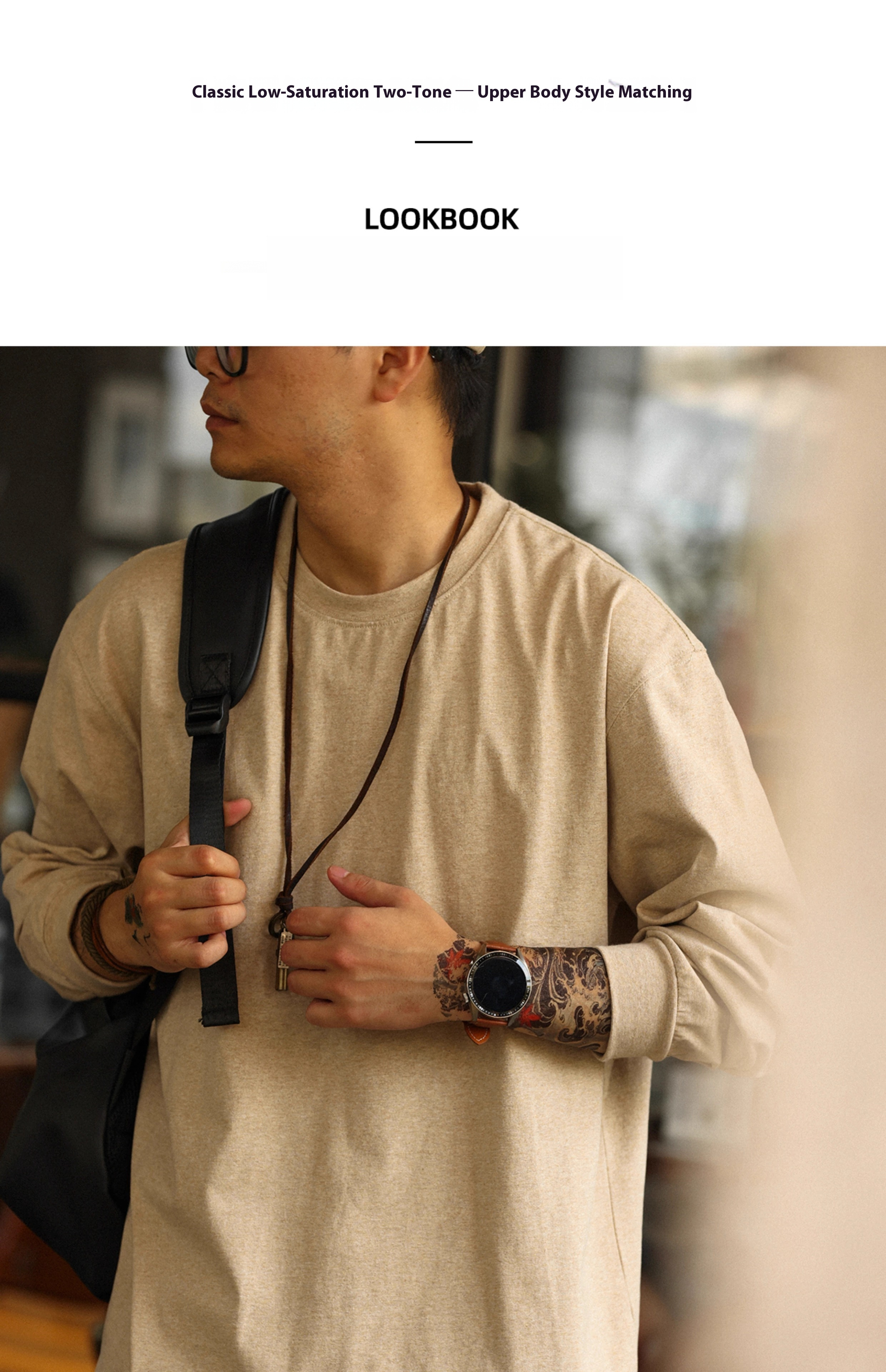 American Casual 260g Oat Gray Round Neck Men's Autumn Loose Basic T-Shirt