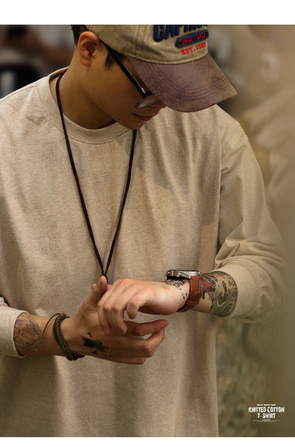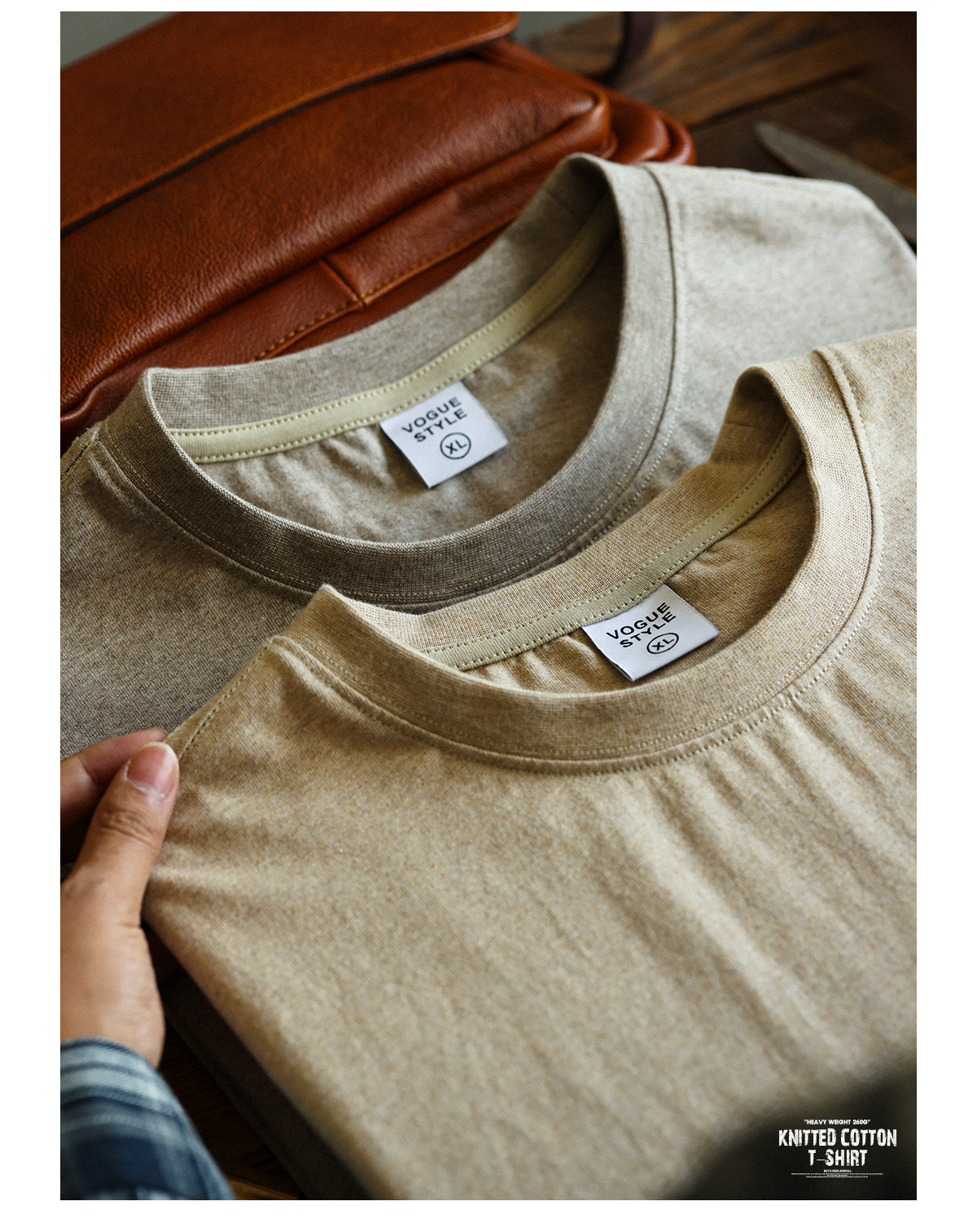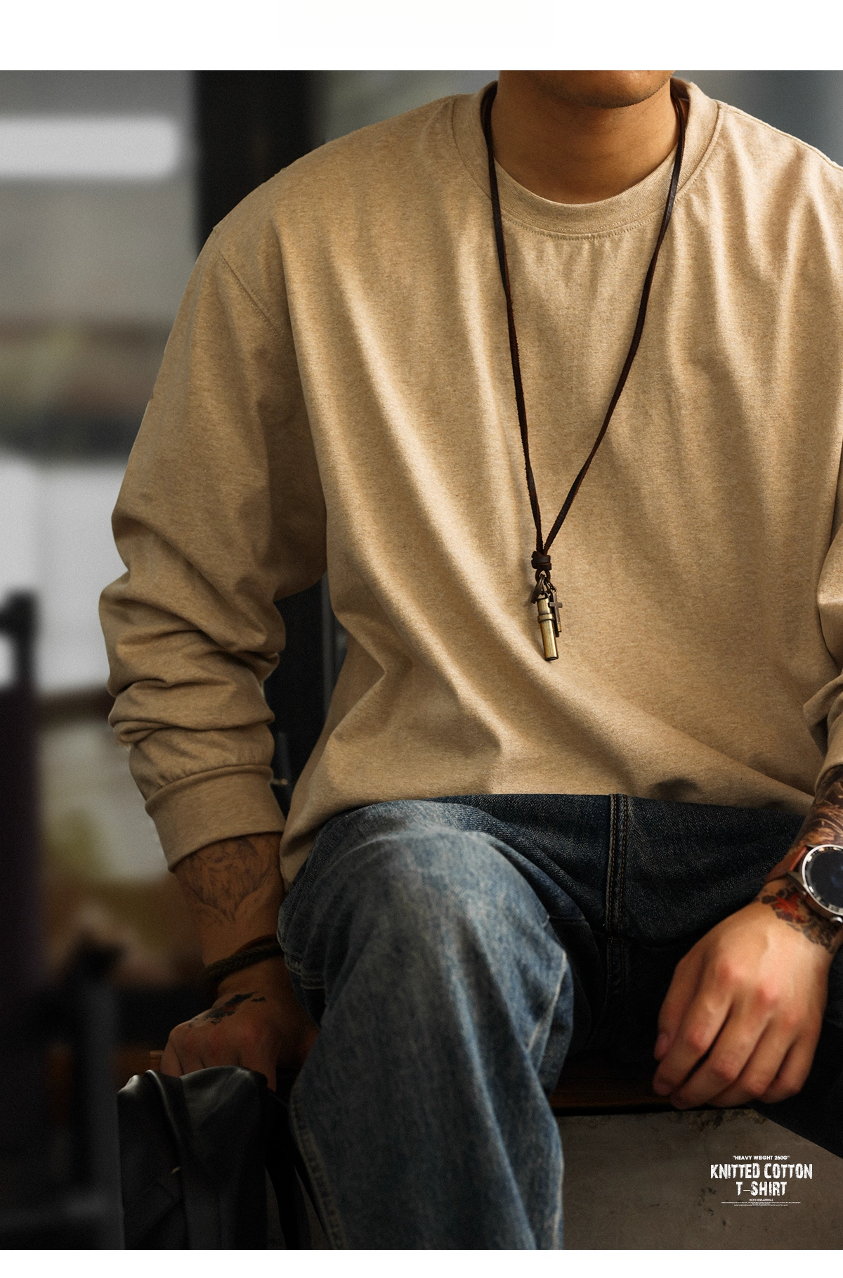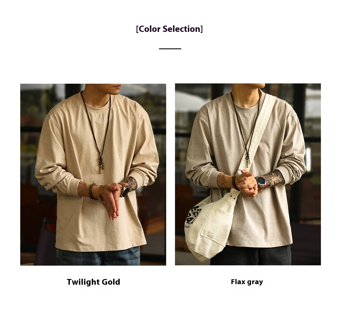 American Casual 260g Oat Gray Round Neck Men's Autumn Loose Basic T-Shirt