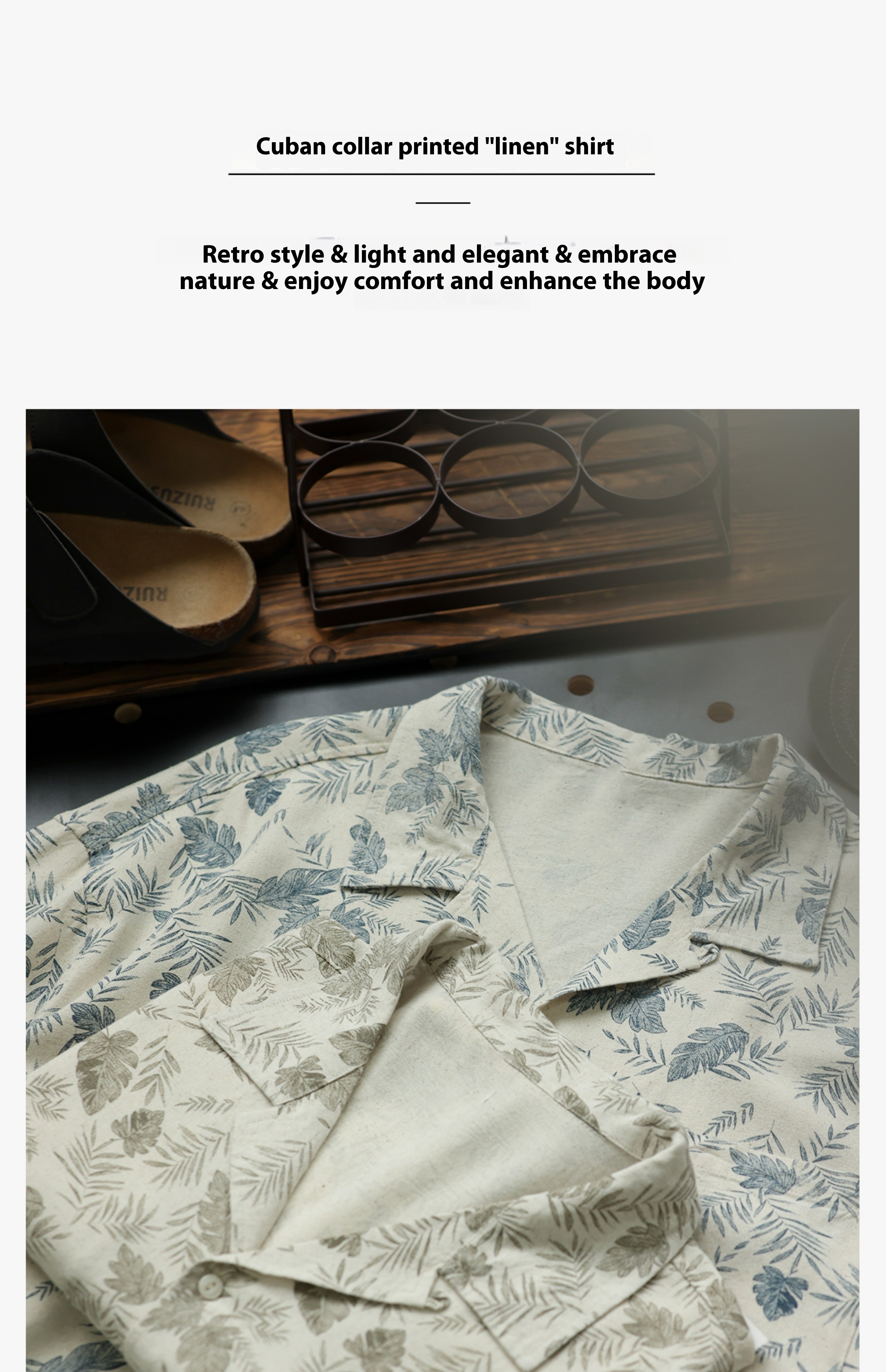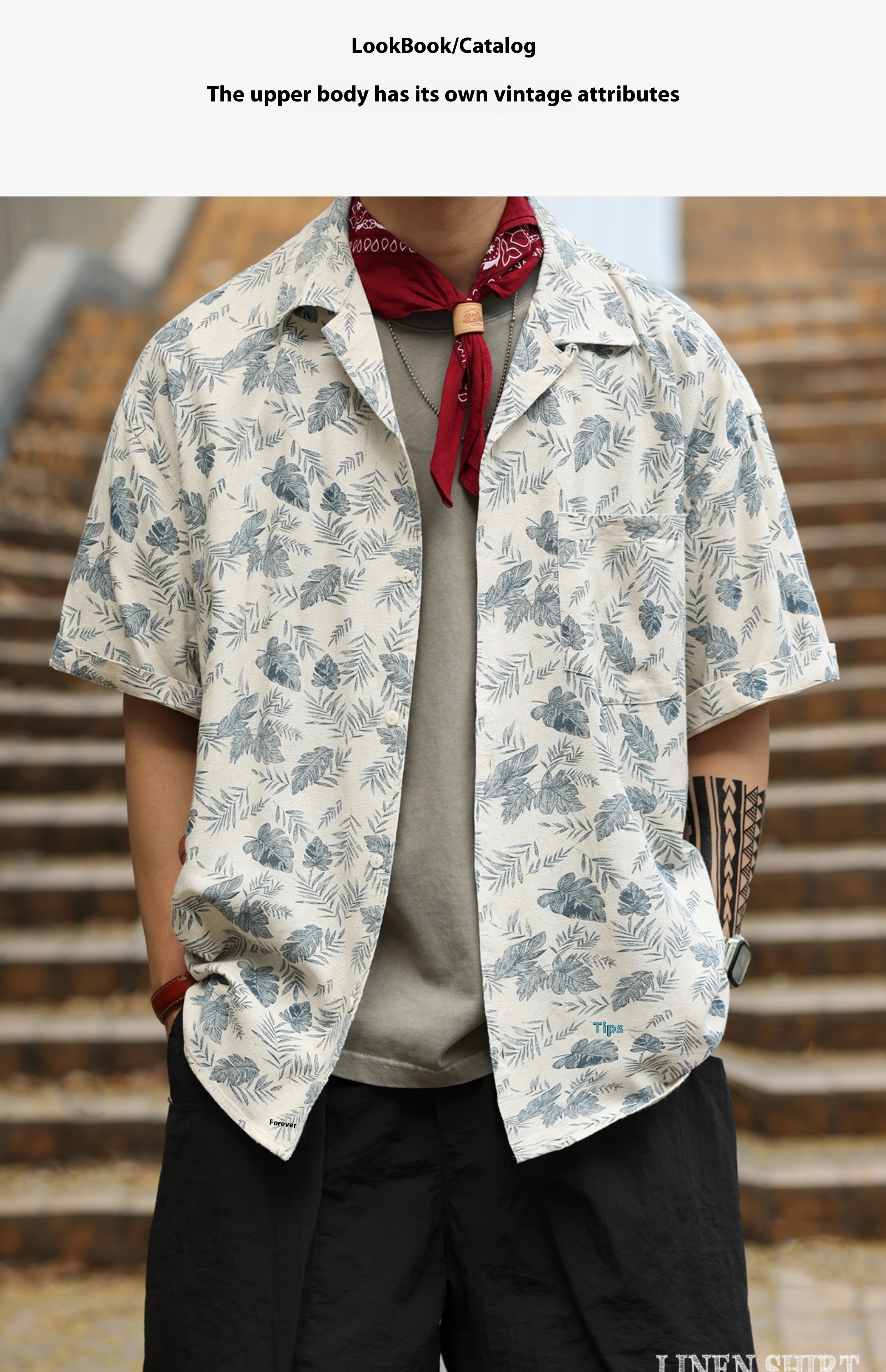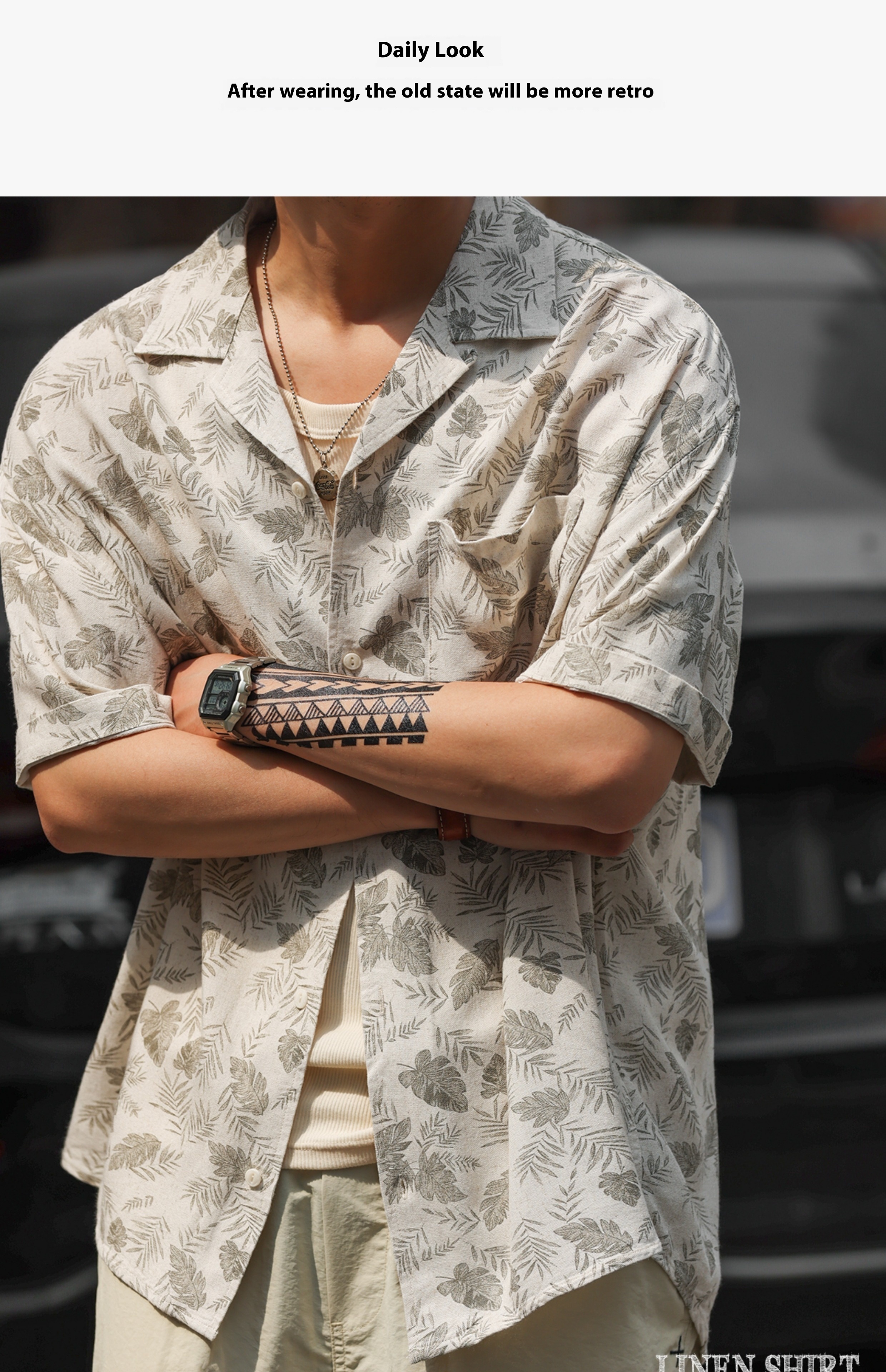 American casual Cuban collar linen summer retro vacation style T-shirt