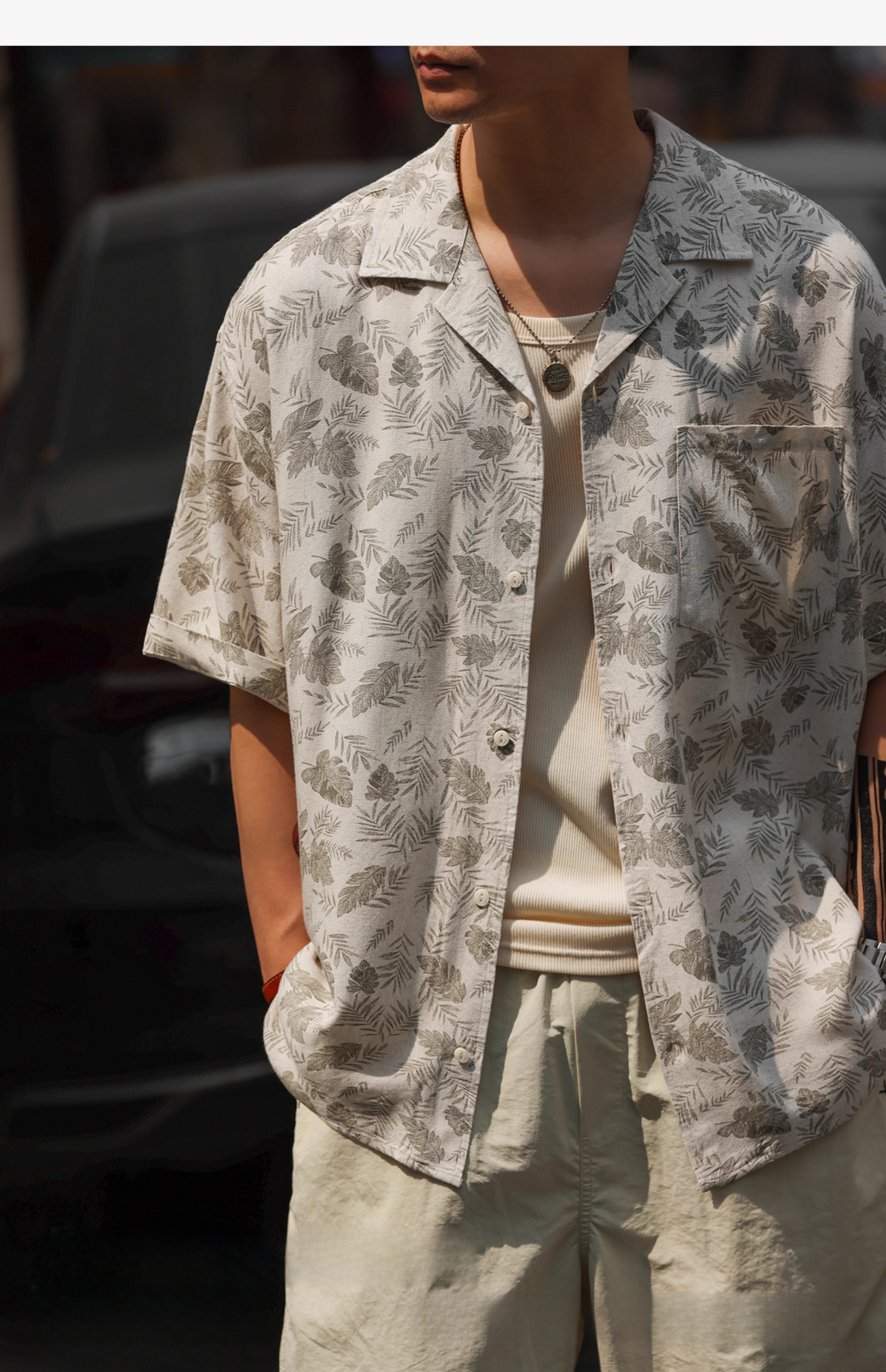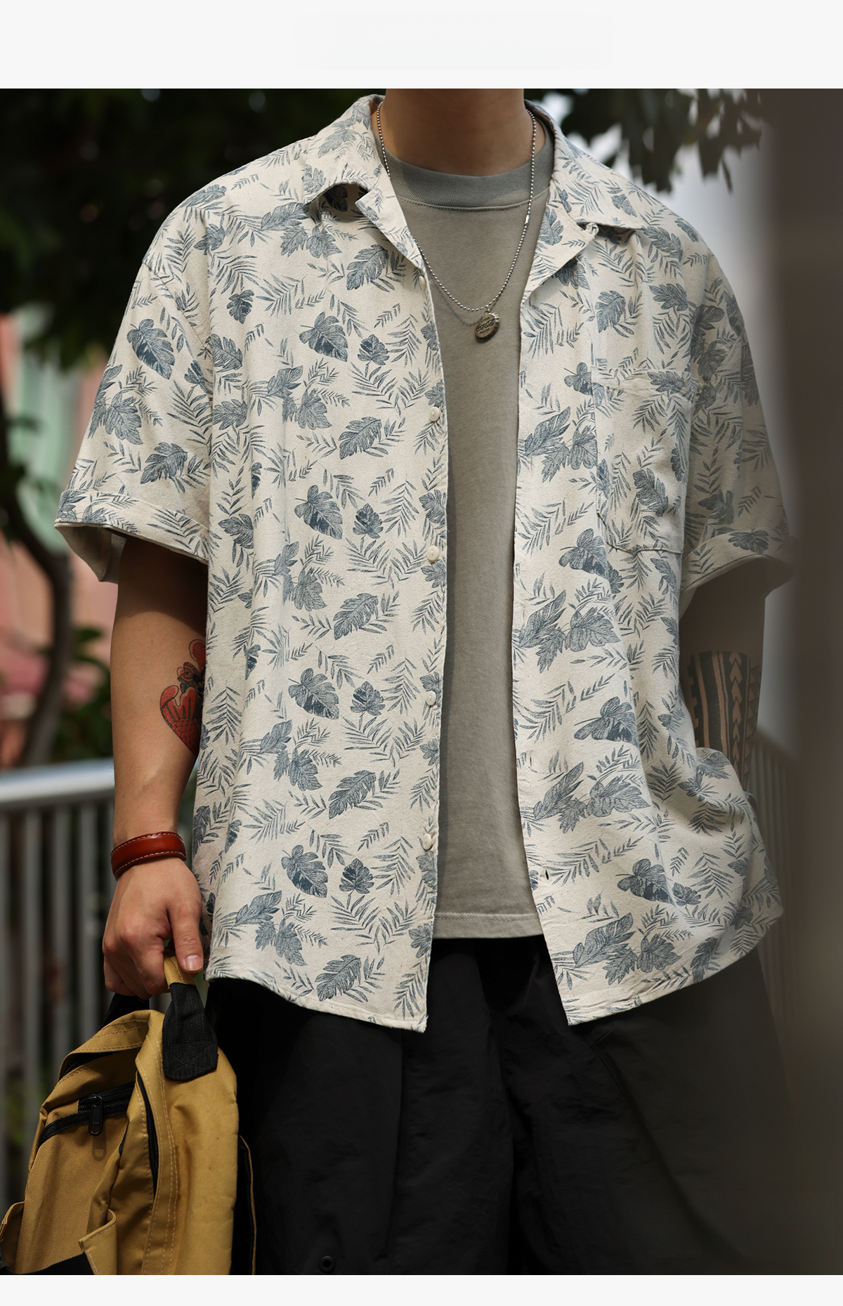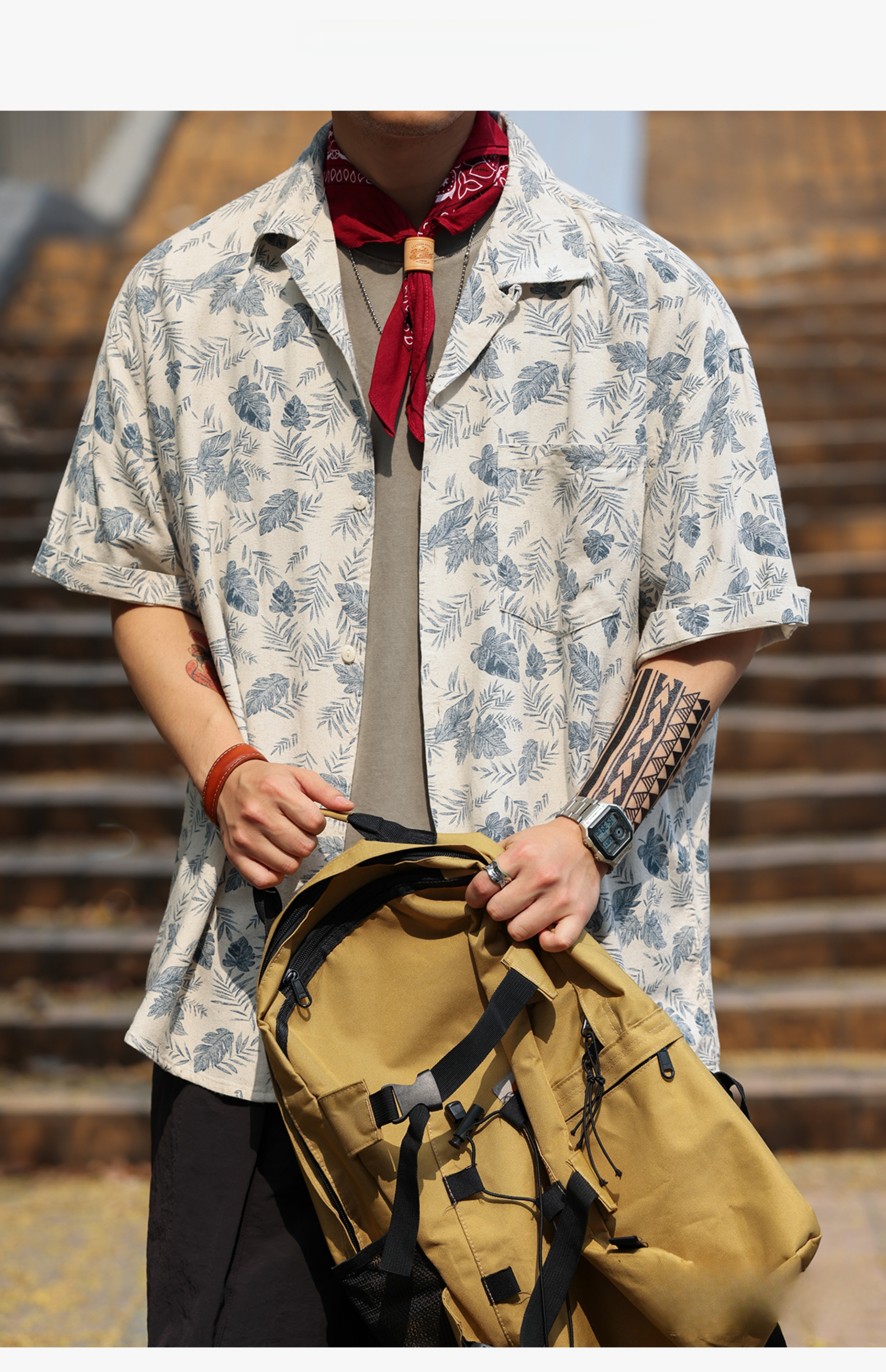 American casual Cuban collar linen summer retro vacation style T-shirt