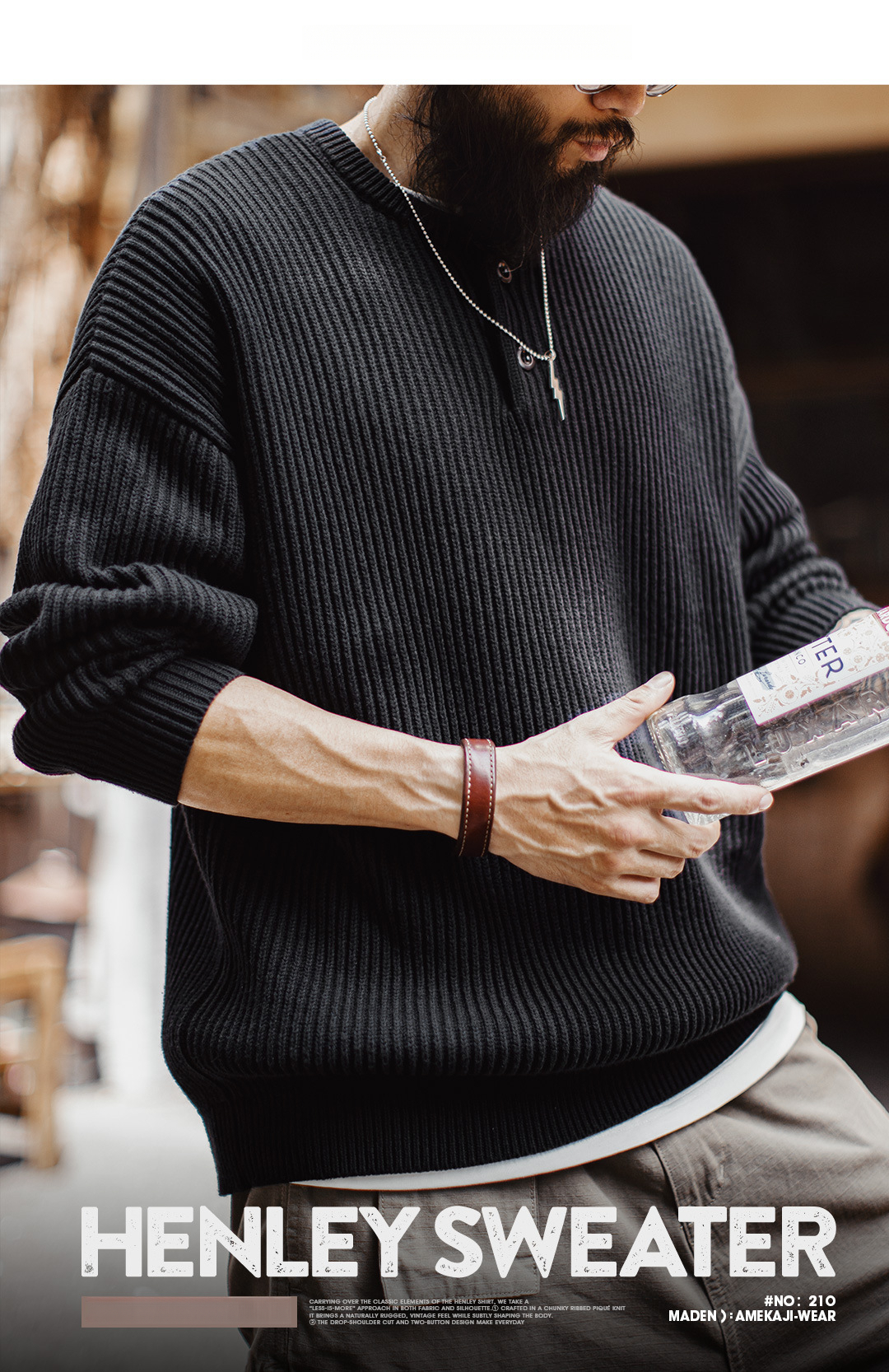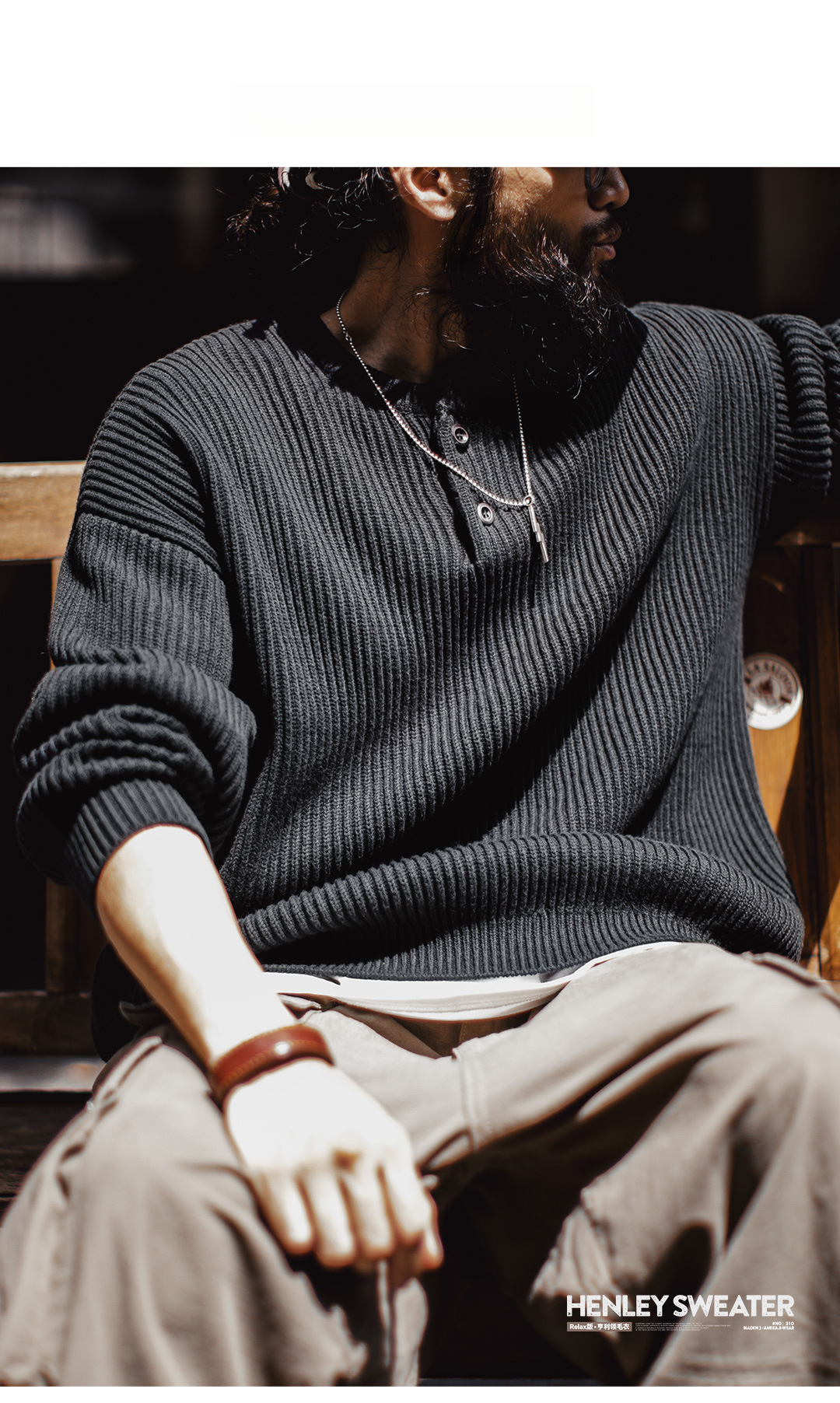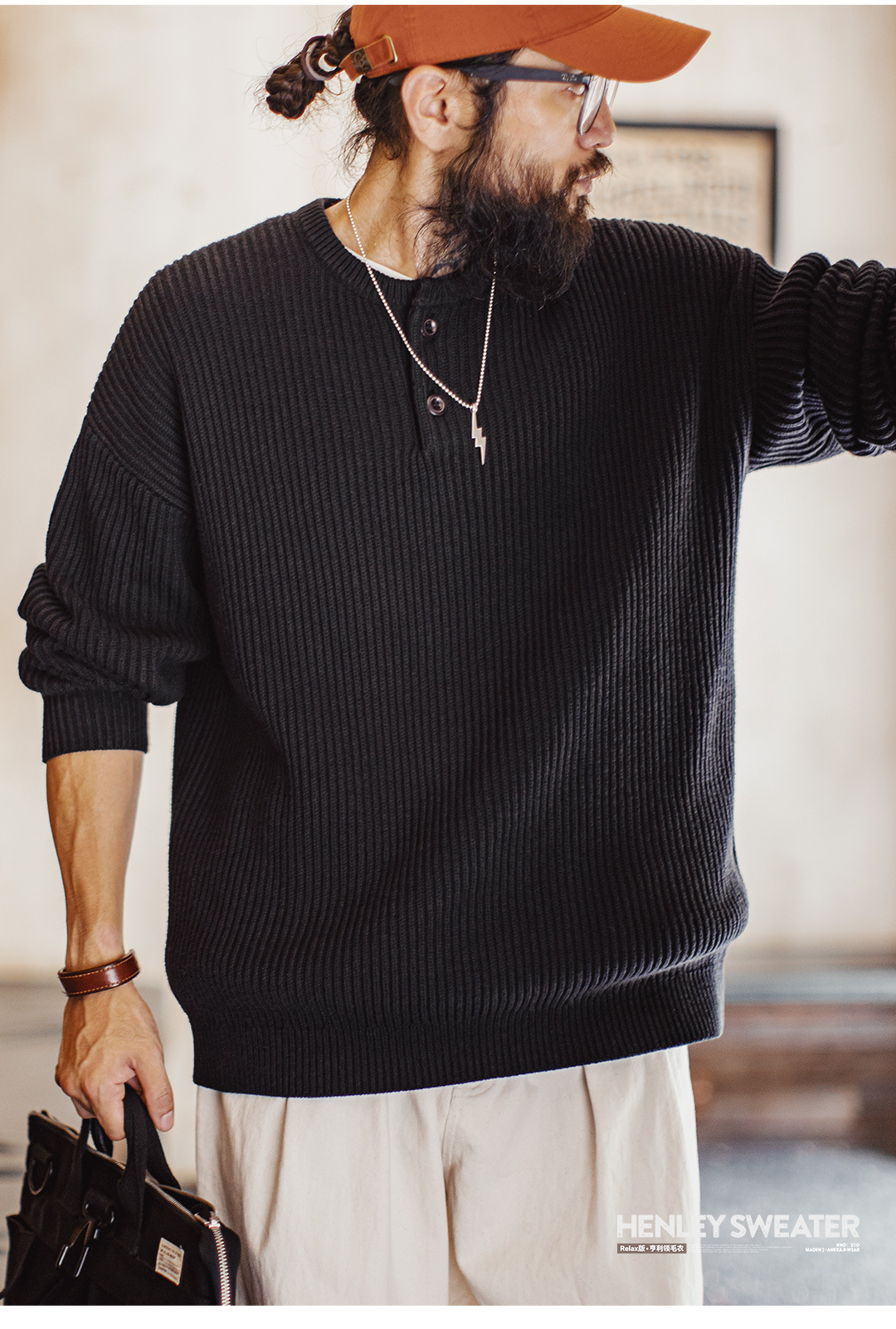 American Henry Collar Black Hanging Commuter Pullover Loose Sweater