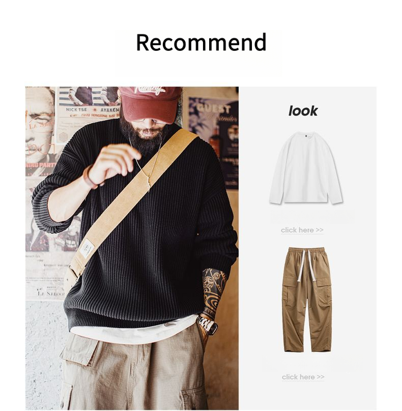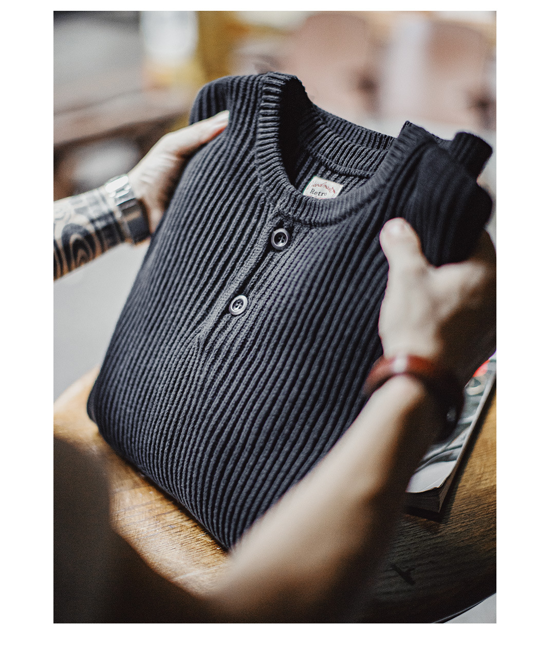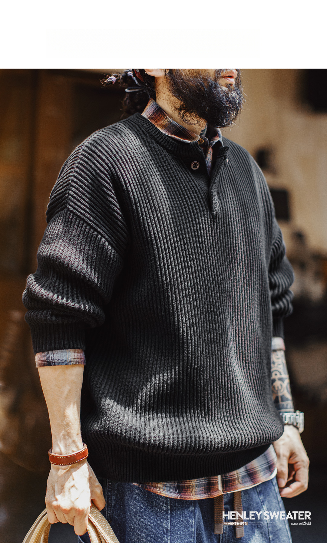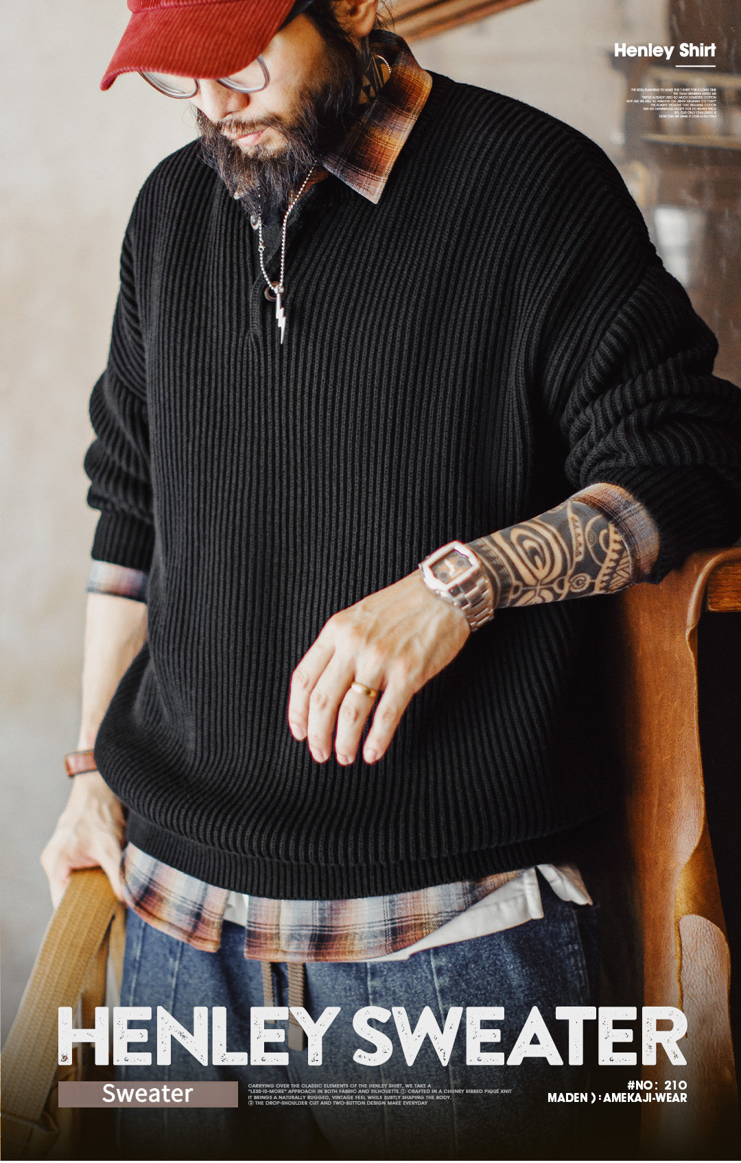 American Henry Collar Black Hanging Commuter Pullover Loose Sweater