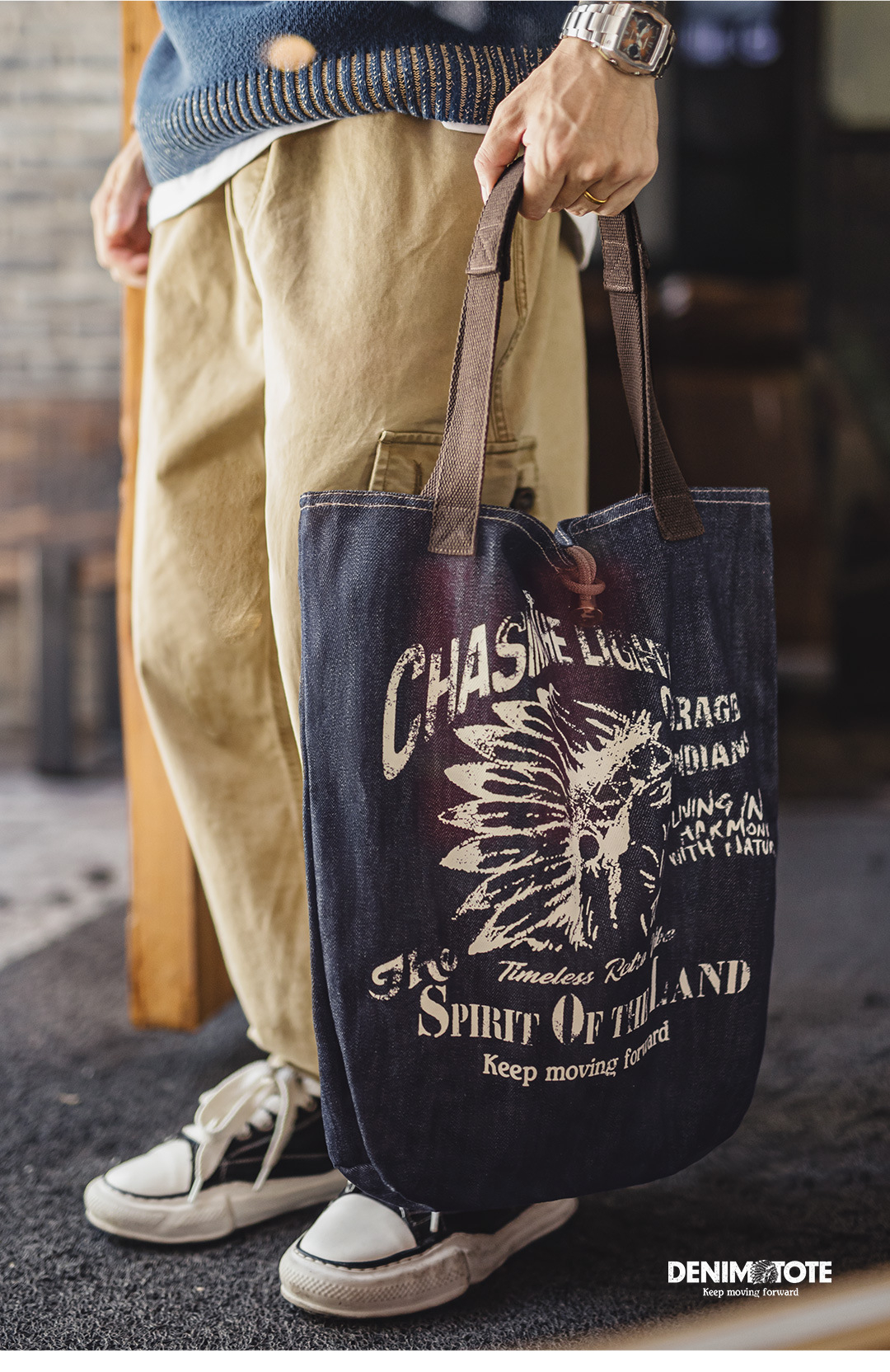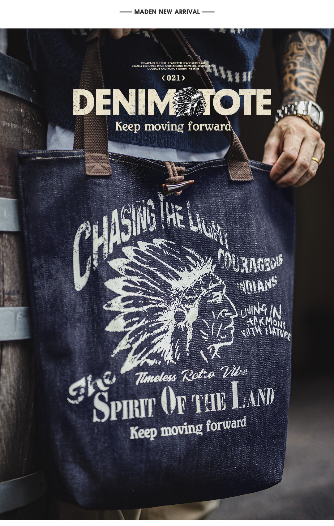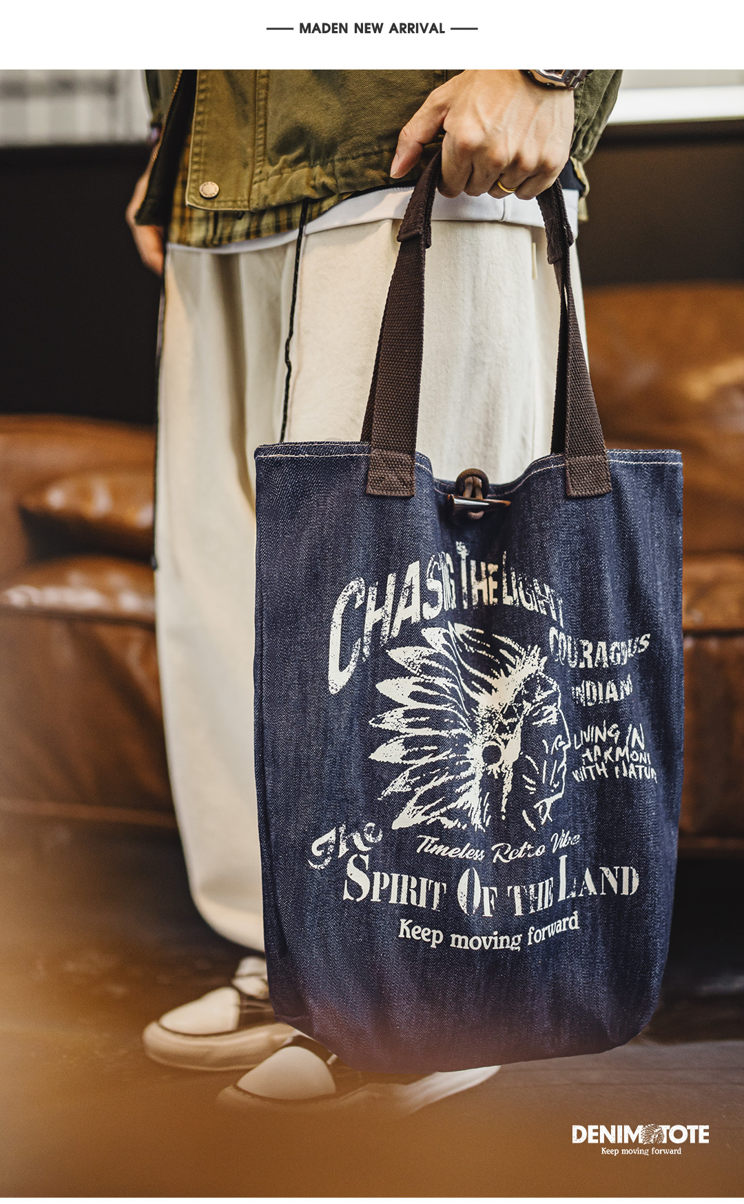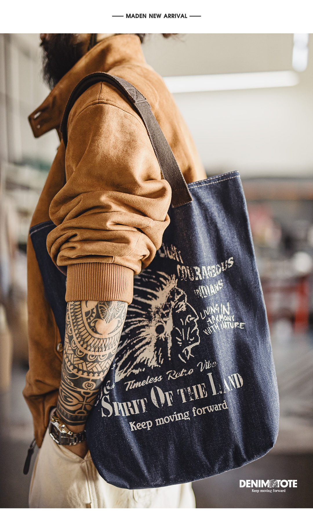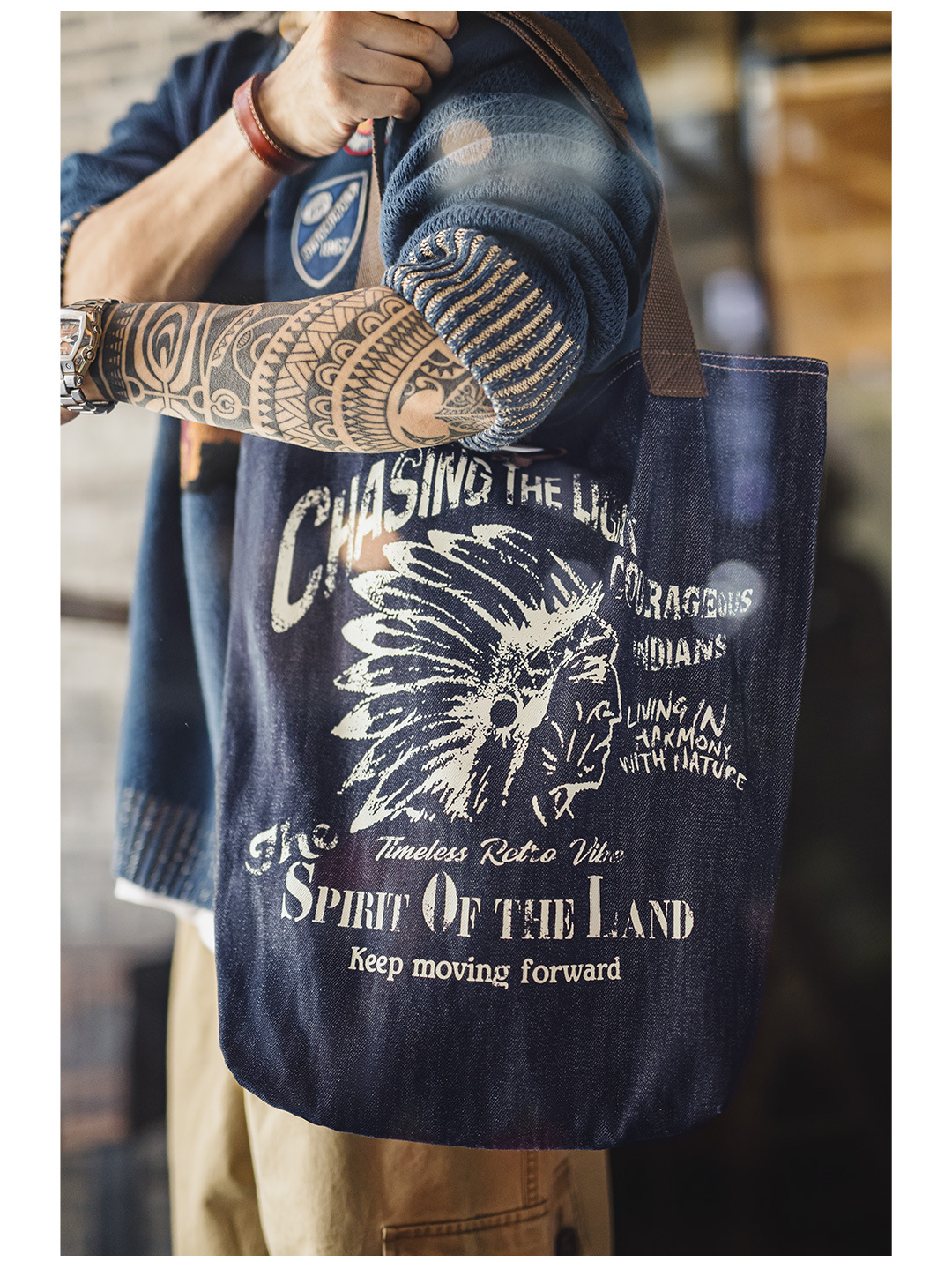 American Retro Denim Large Capacity Commuting Shoulder Bag For Making Old Handbags