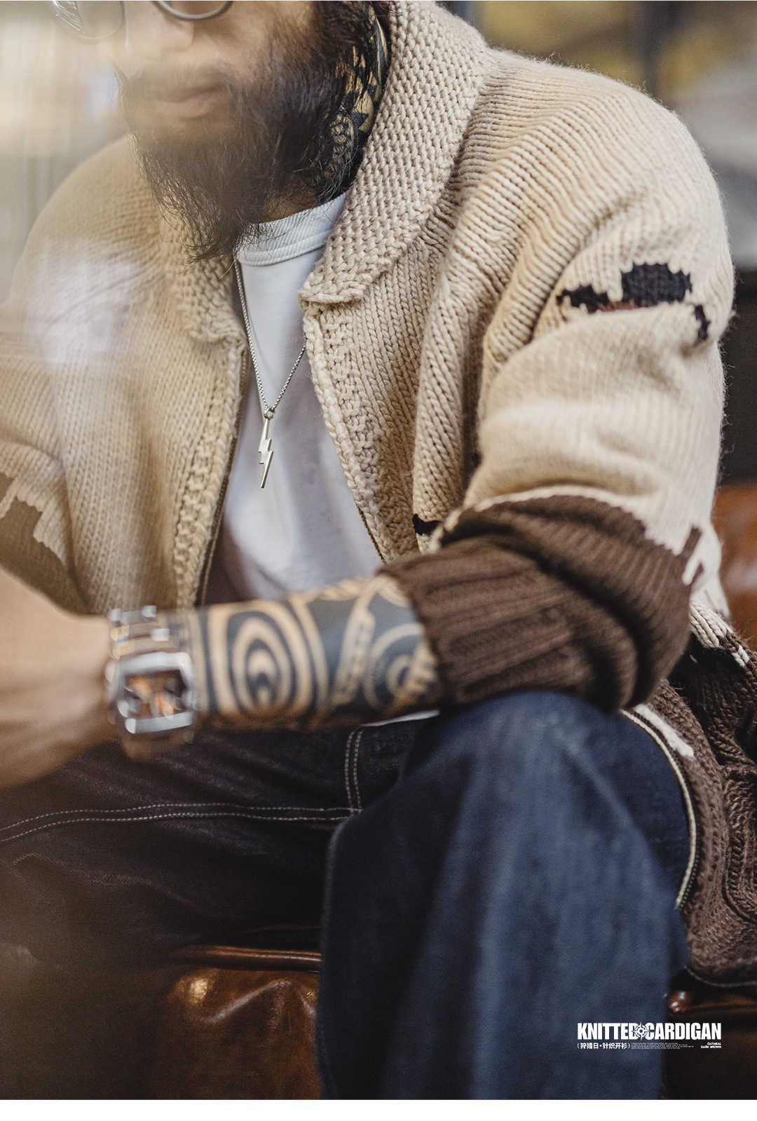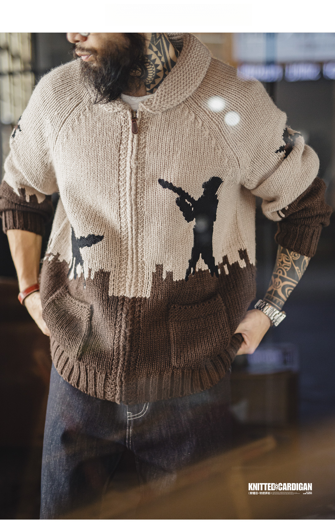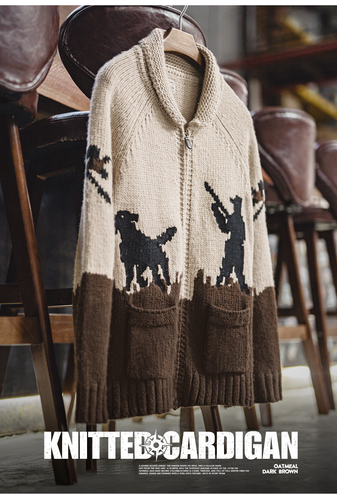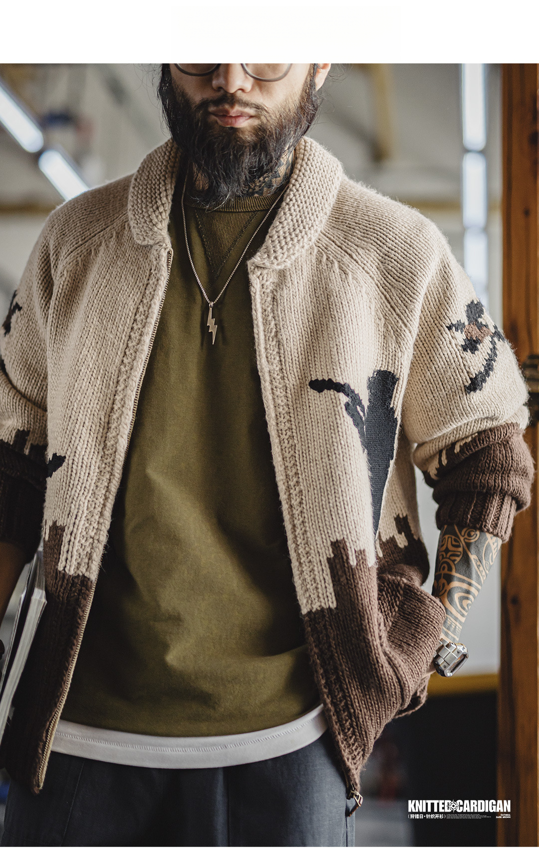 American Retro Embroidered Green Fruit Collar Vintage Style Sweater Jacket
