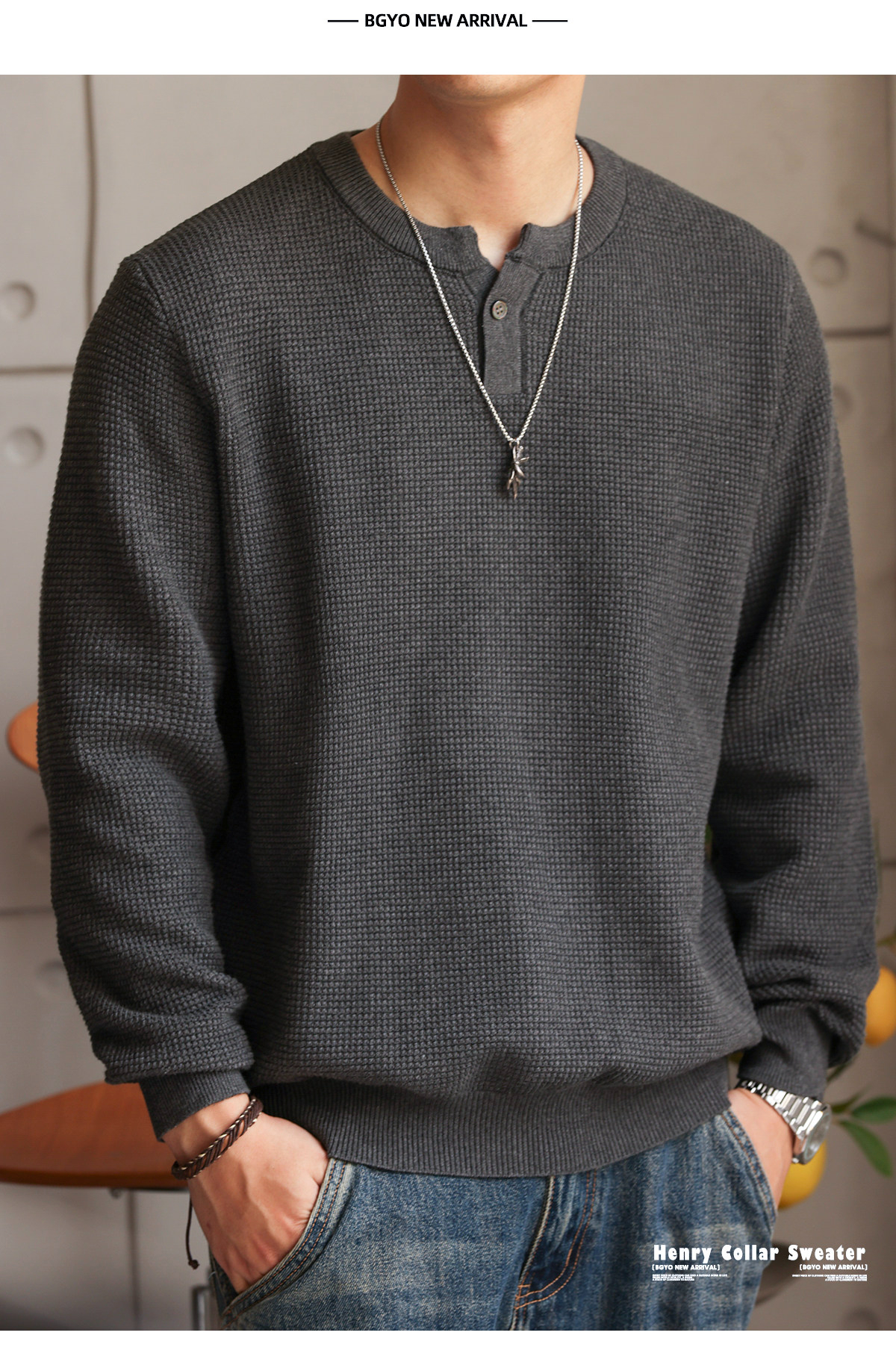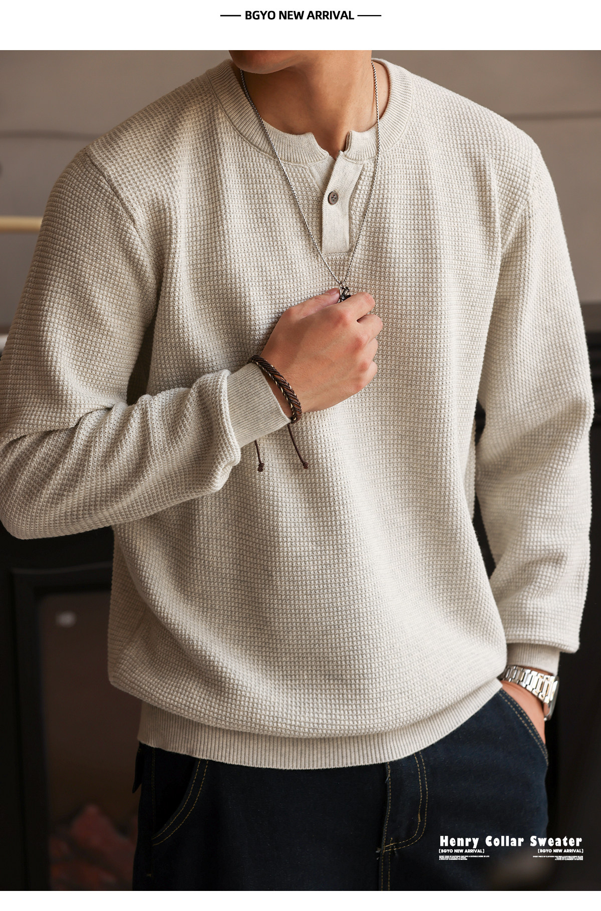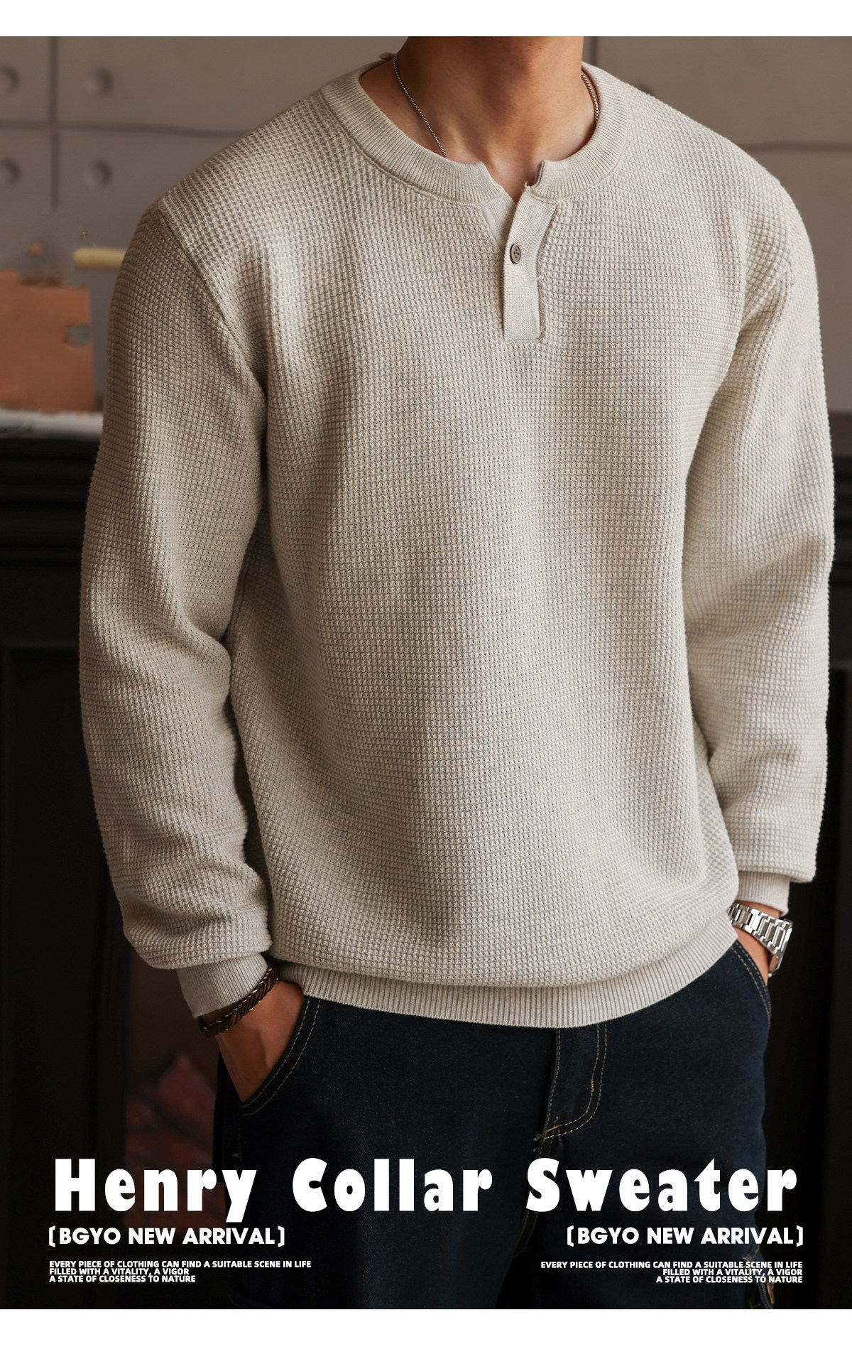 American Retro Nouveau Riche Henry Collar Knitted Men'S Fine Needle Floral Yarn Casual Long Sleeved Shirt