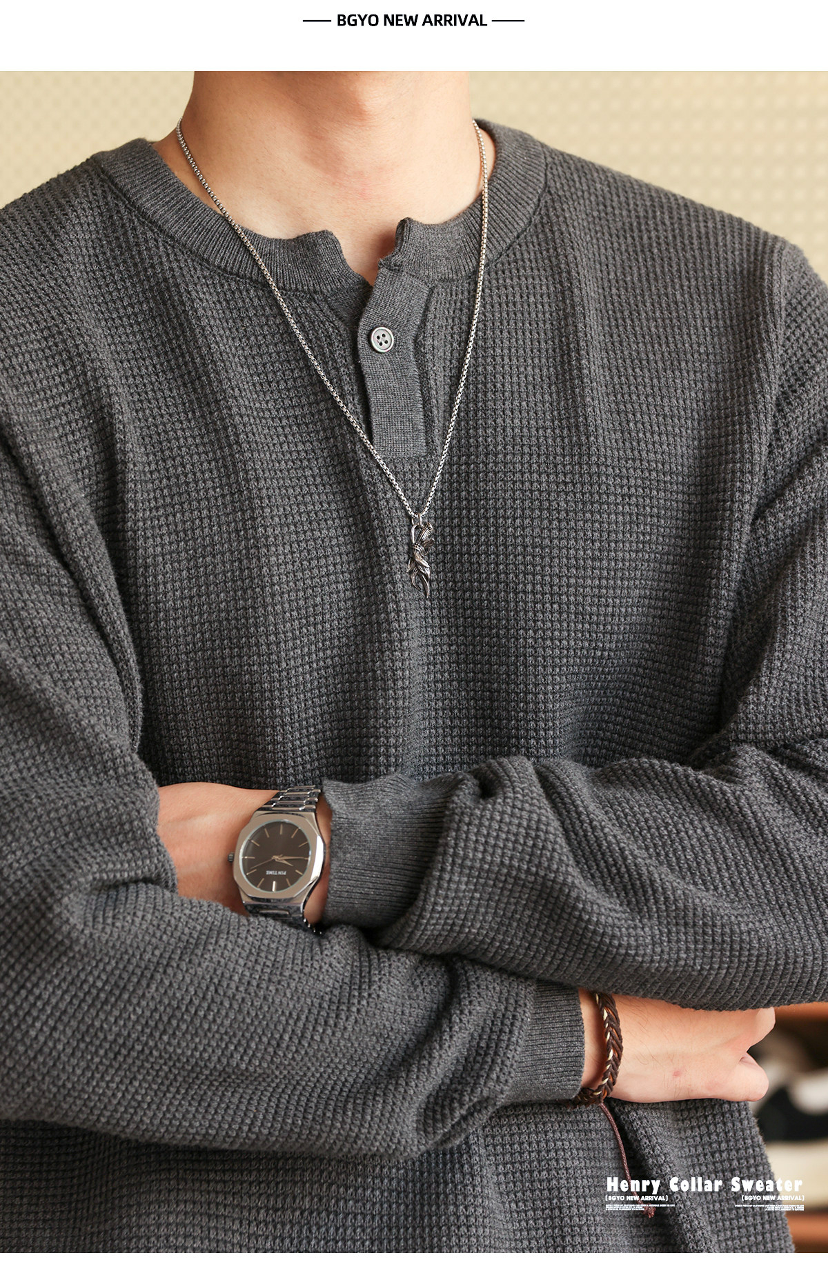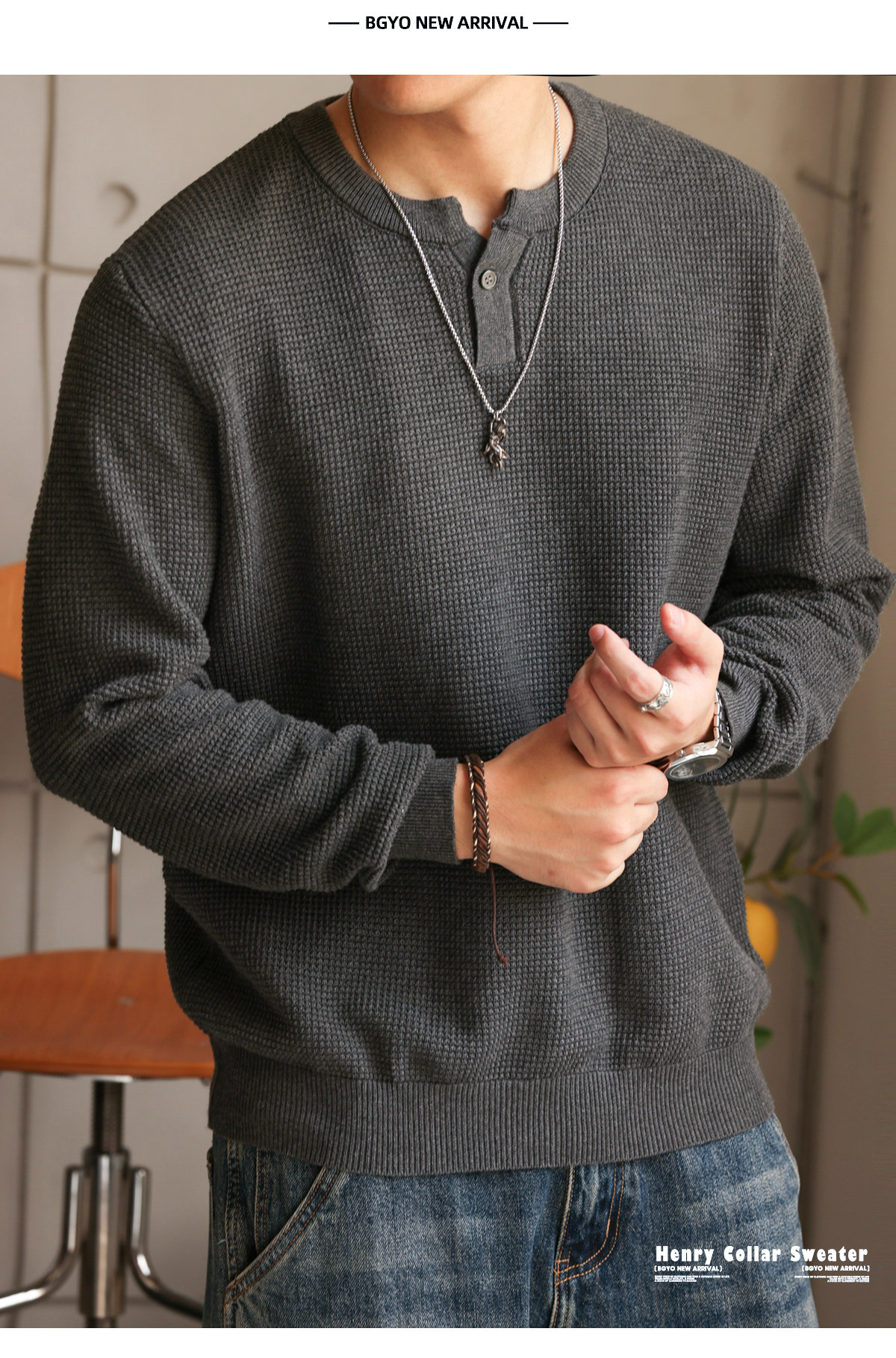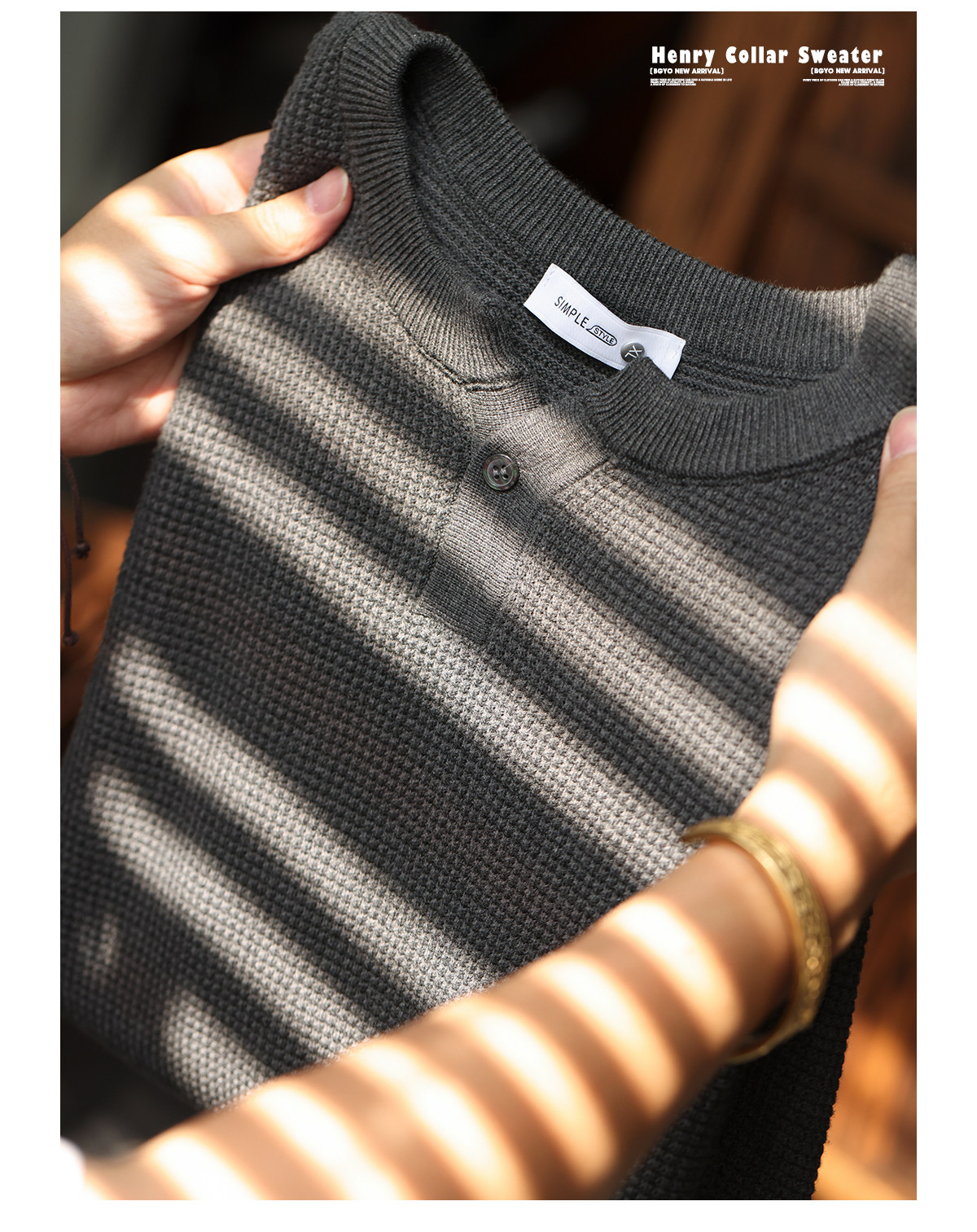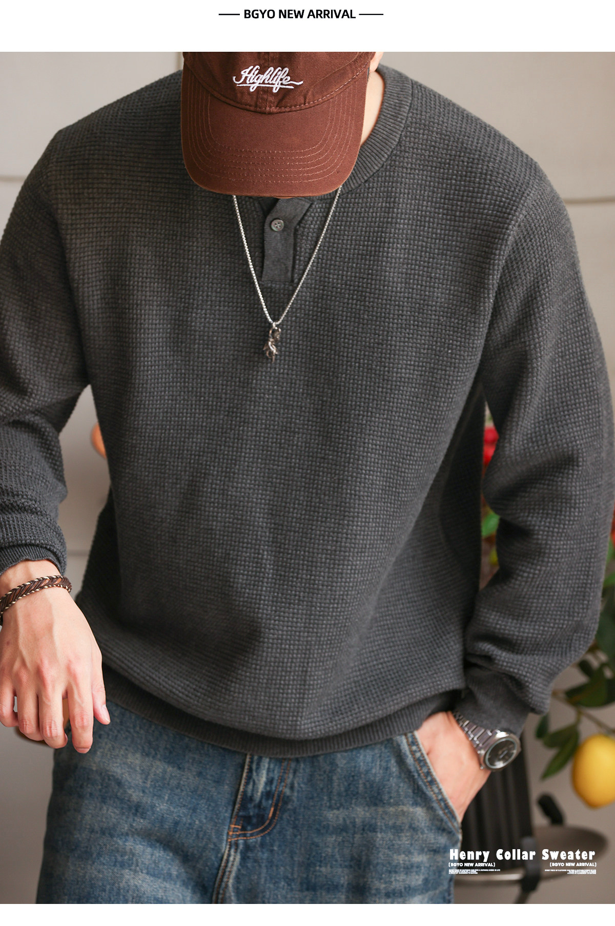 American Retro Nouveau Riche Henry Collar Knitted Men'S Fine Needle Floral Yarn Casual Long Sleeved Shirt