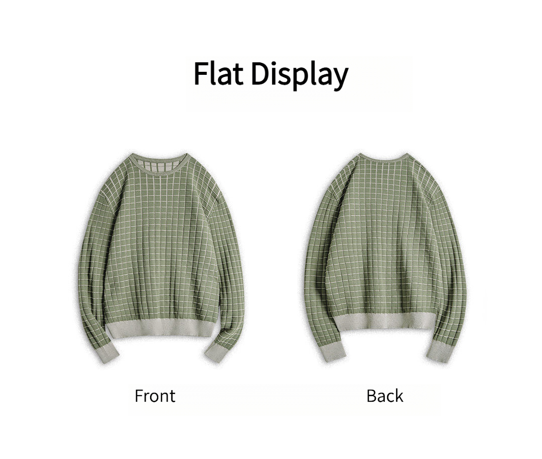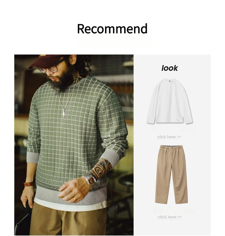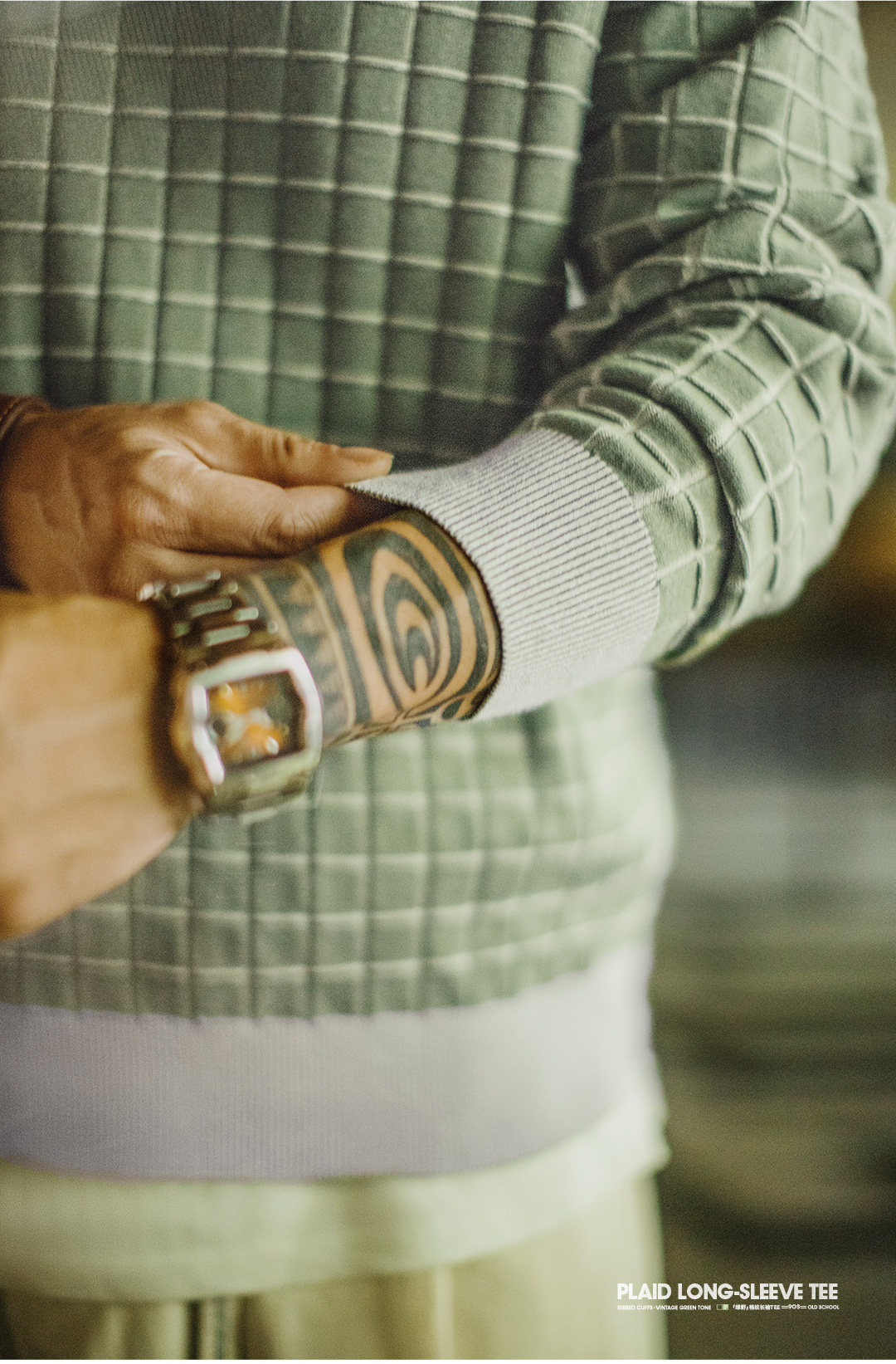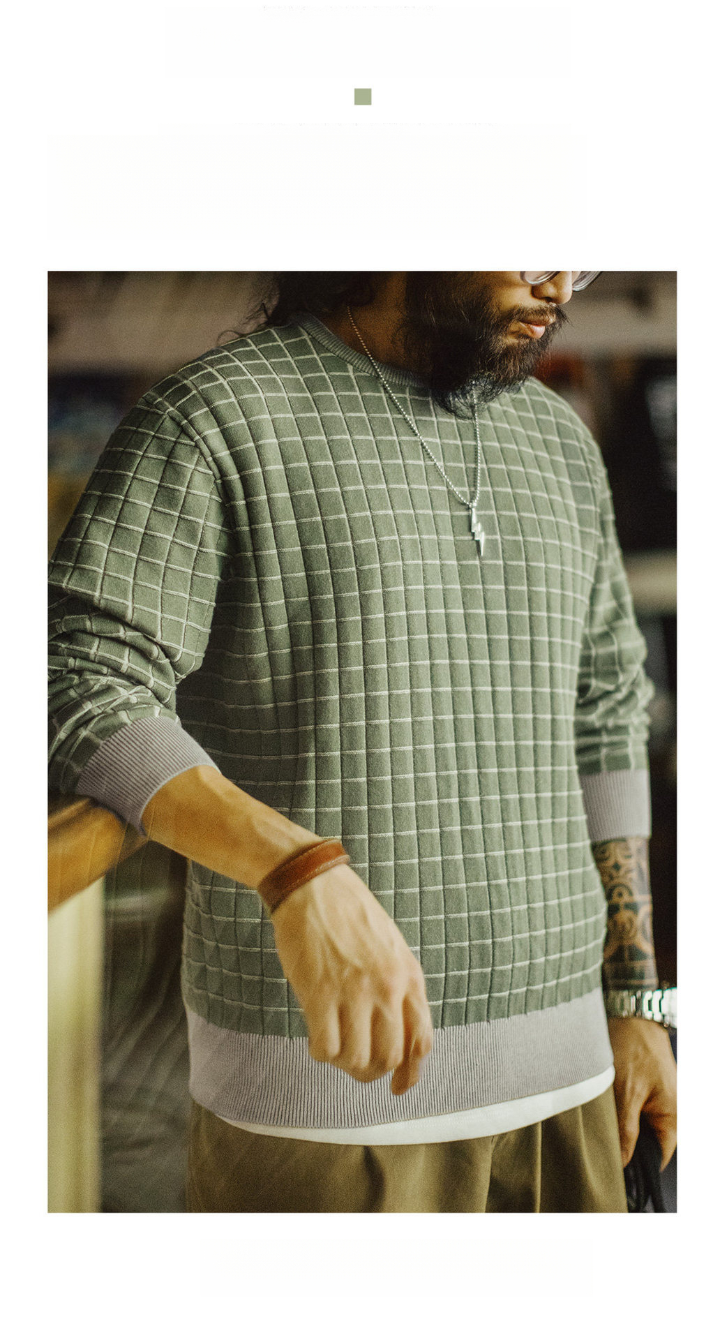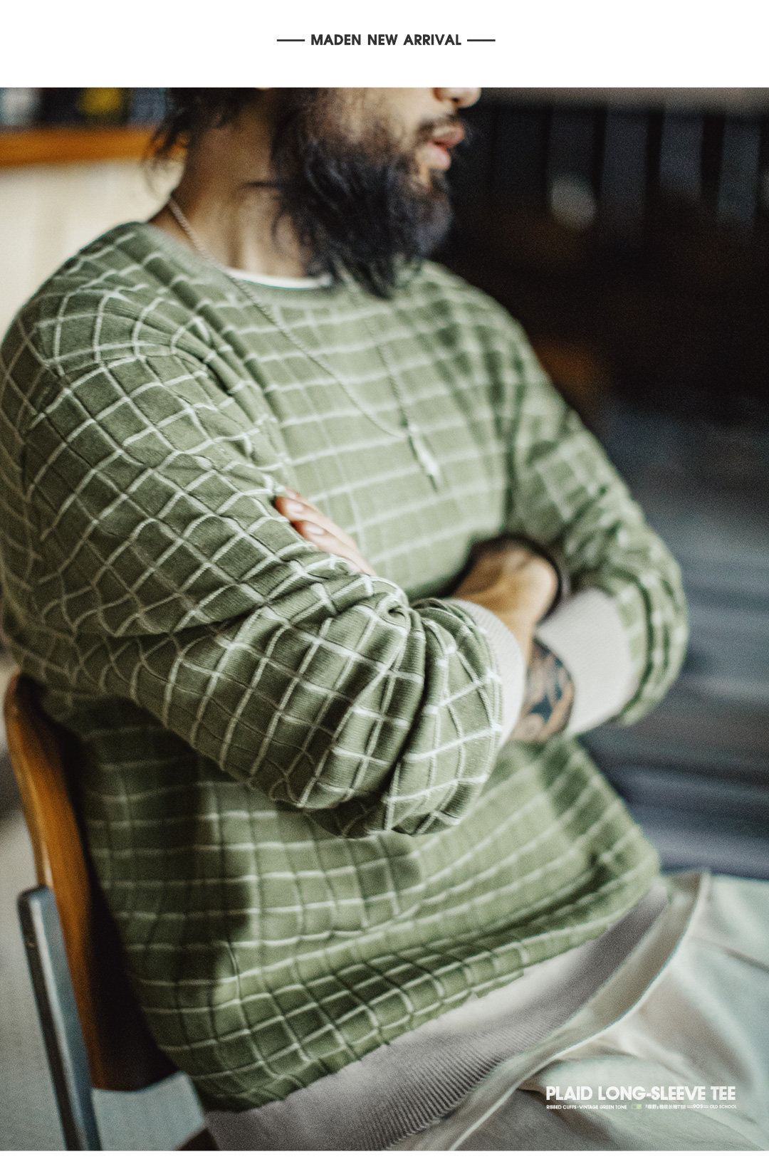 American Retro Plaid Round Neck Sweatshirt With Plaid Green Long Sleeved T-Shirt