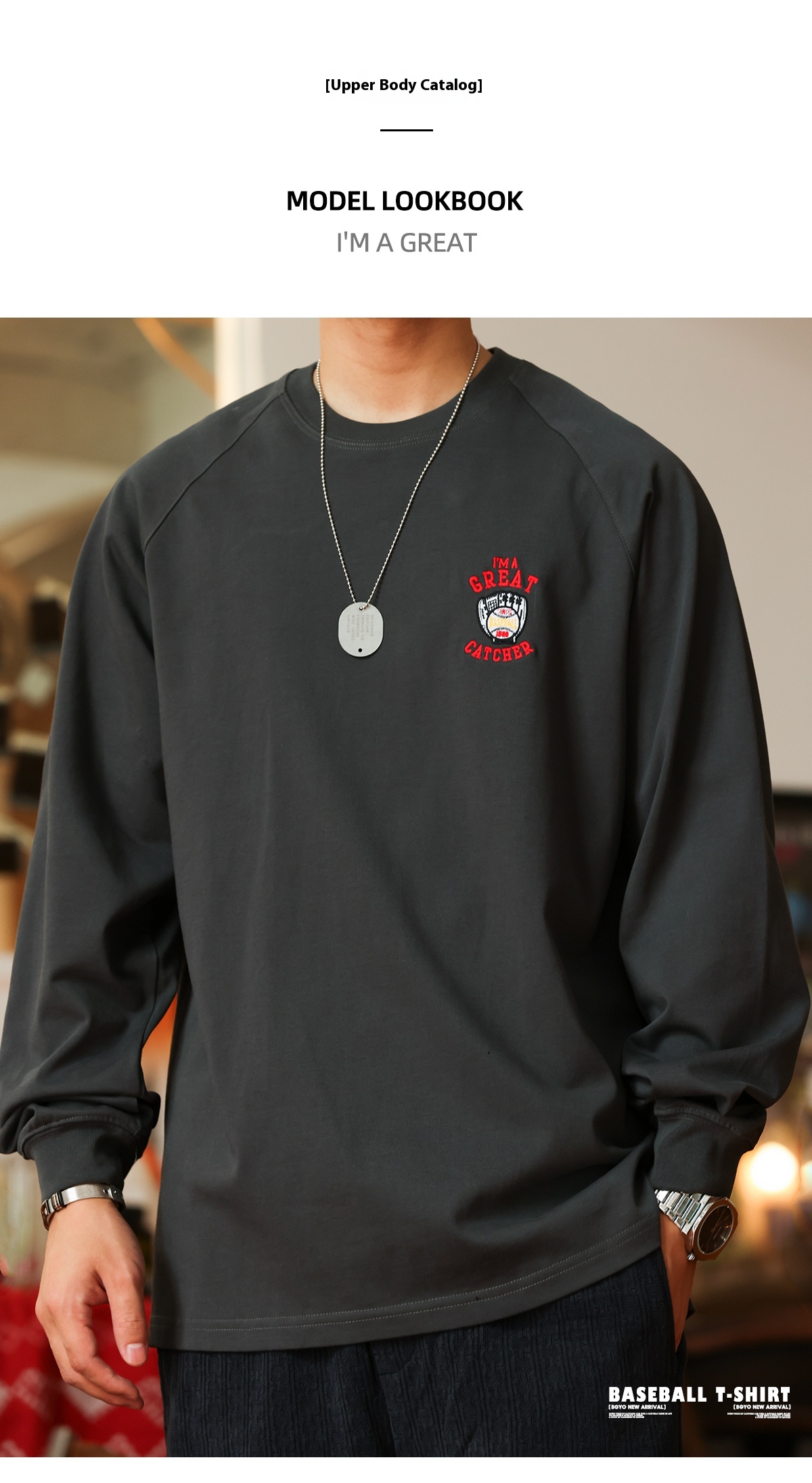 American Style 300g Embroidered Printed Men'S Autumn Long Sleeved T-Shirt