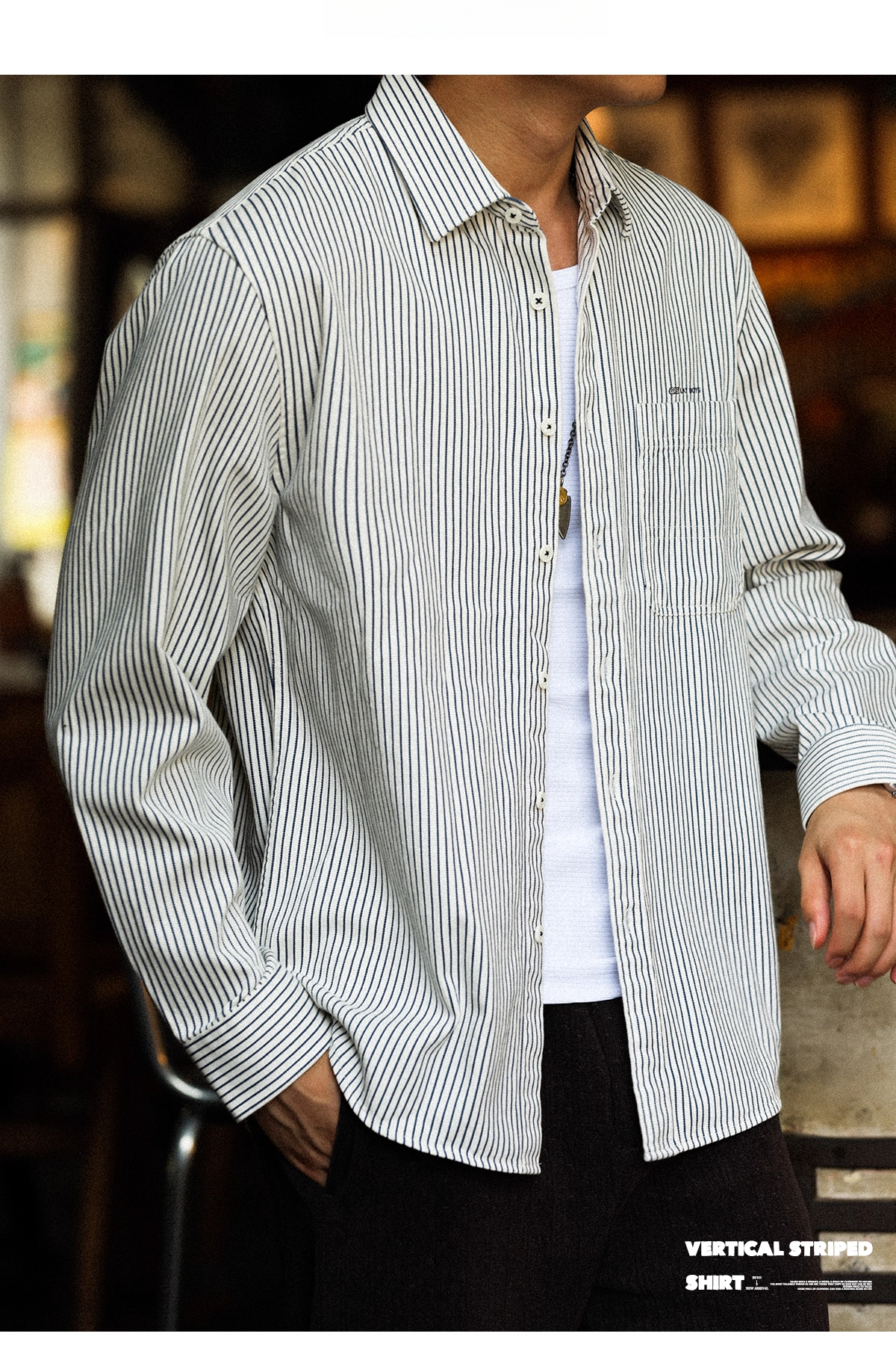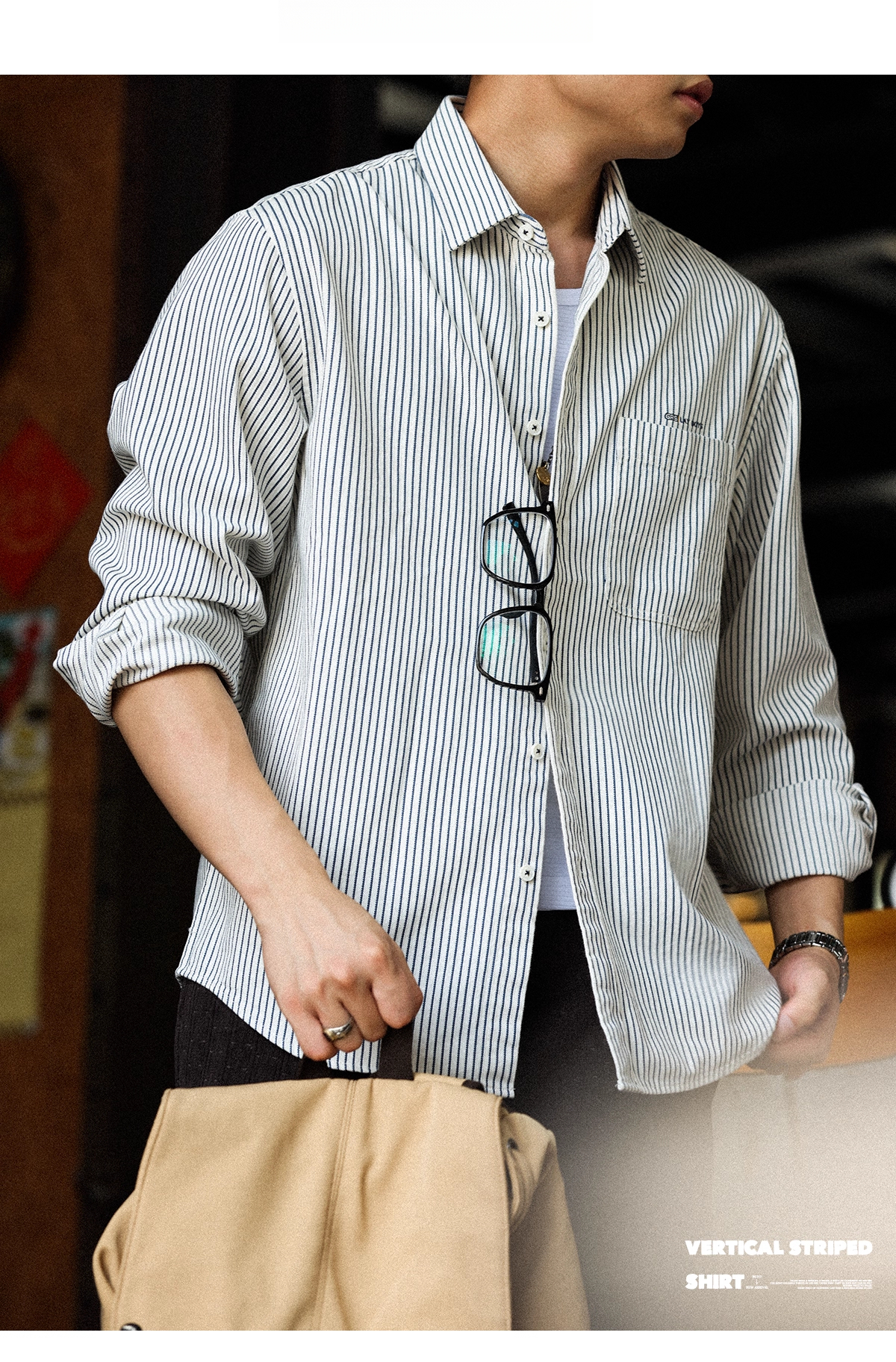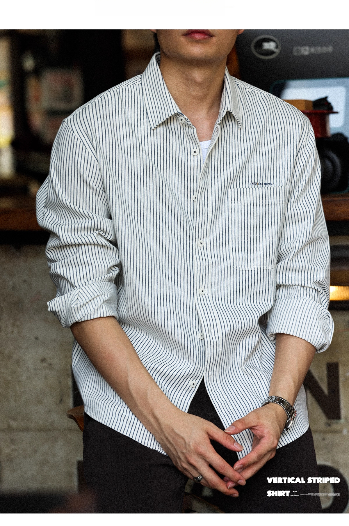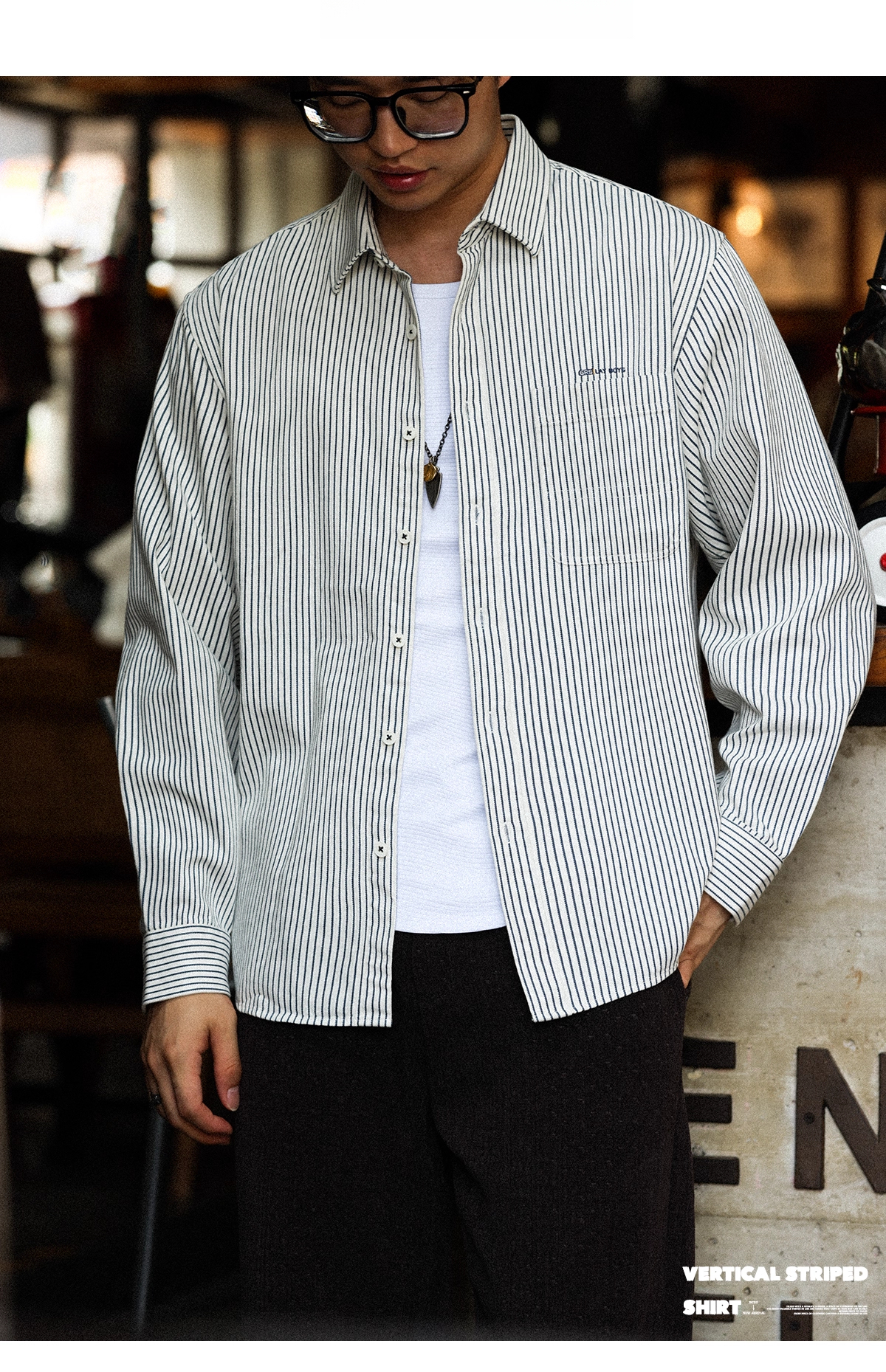 American Style Minimalist Contrasting Striped Men's Embroidered Pocket Shirt