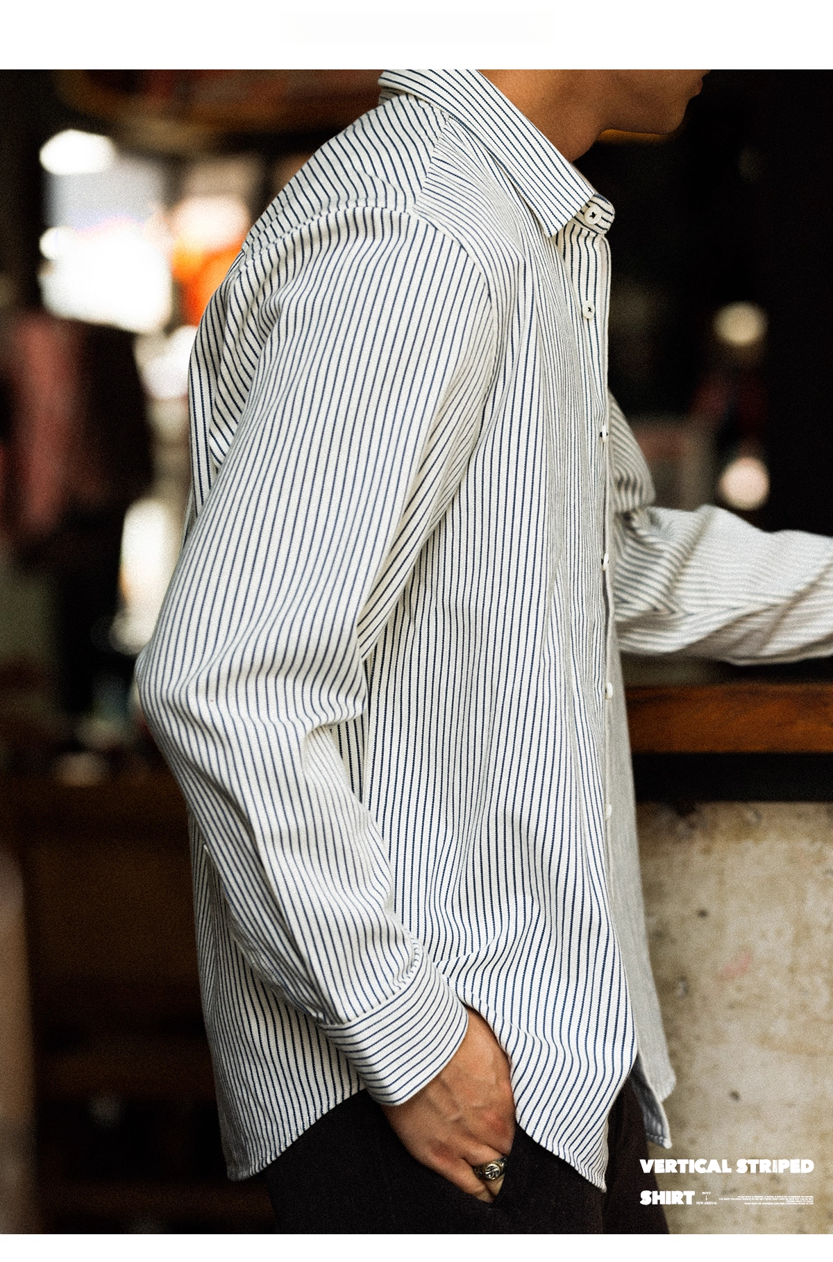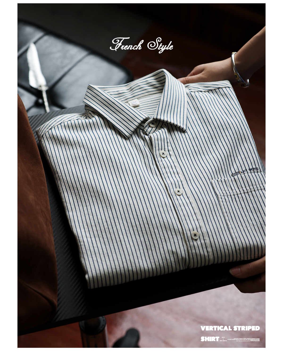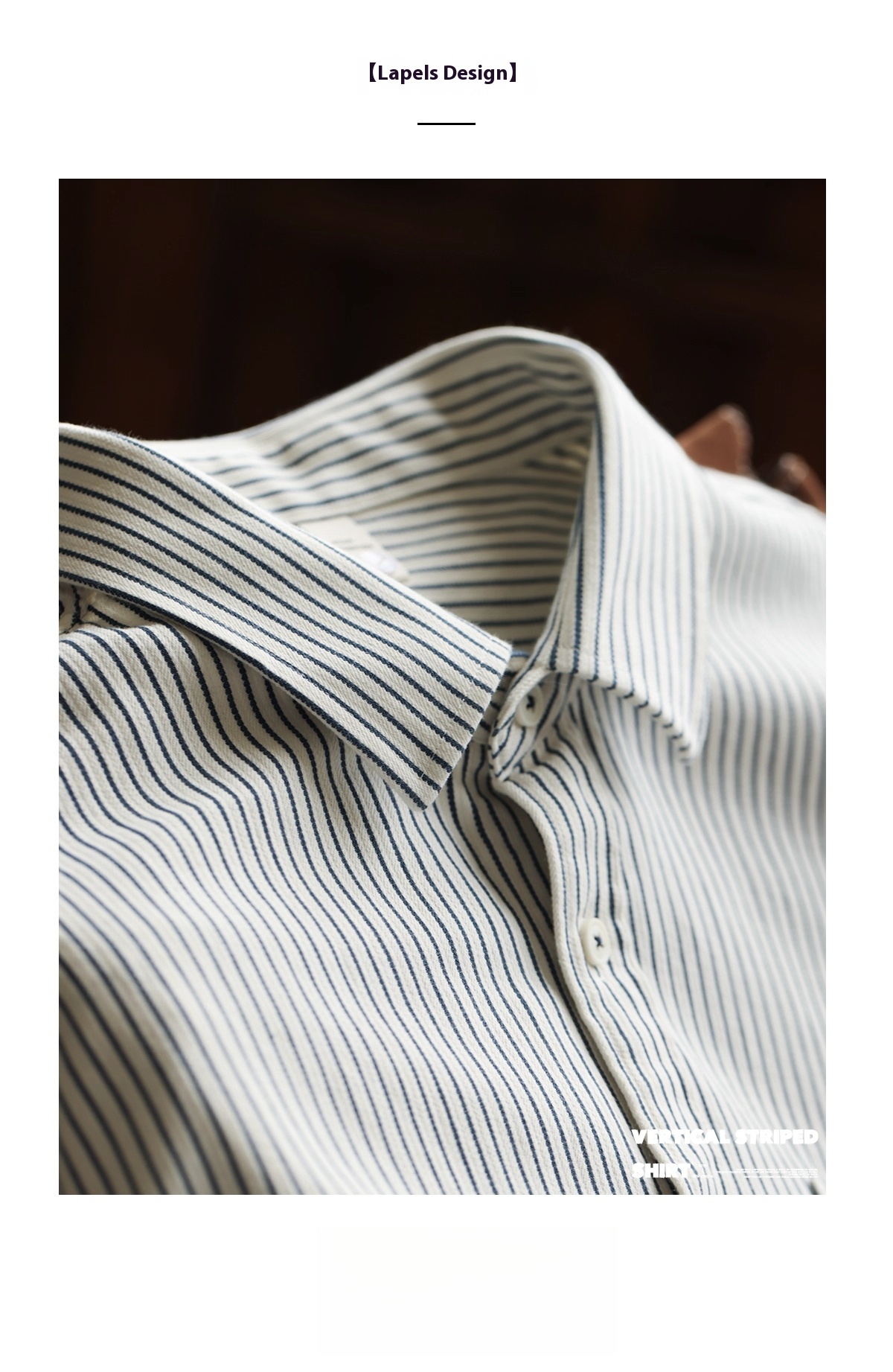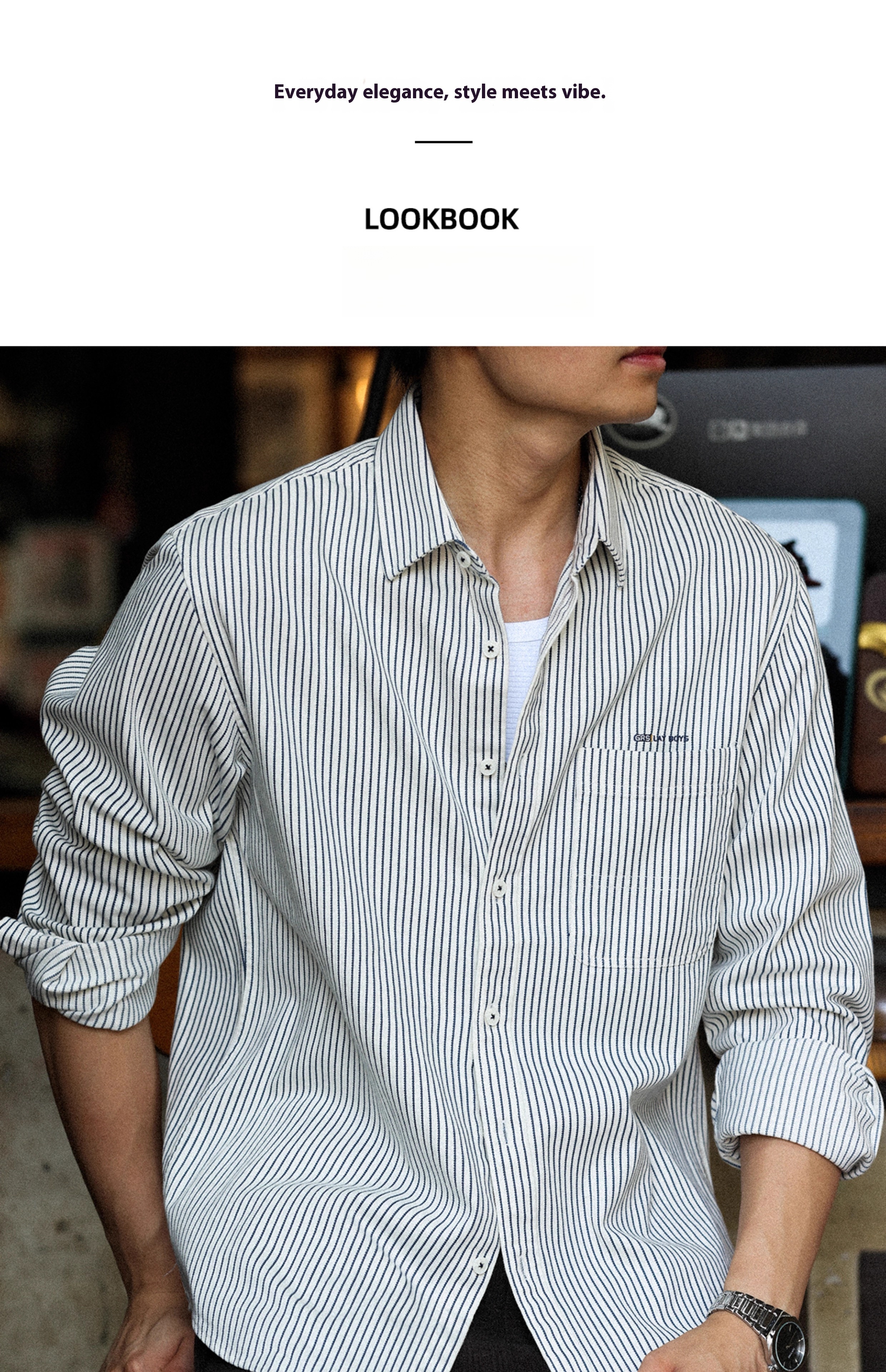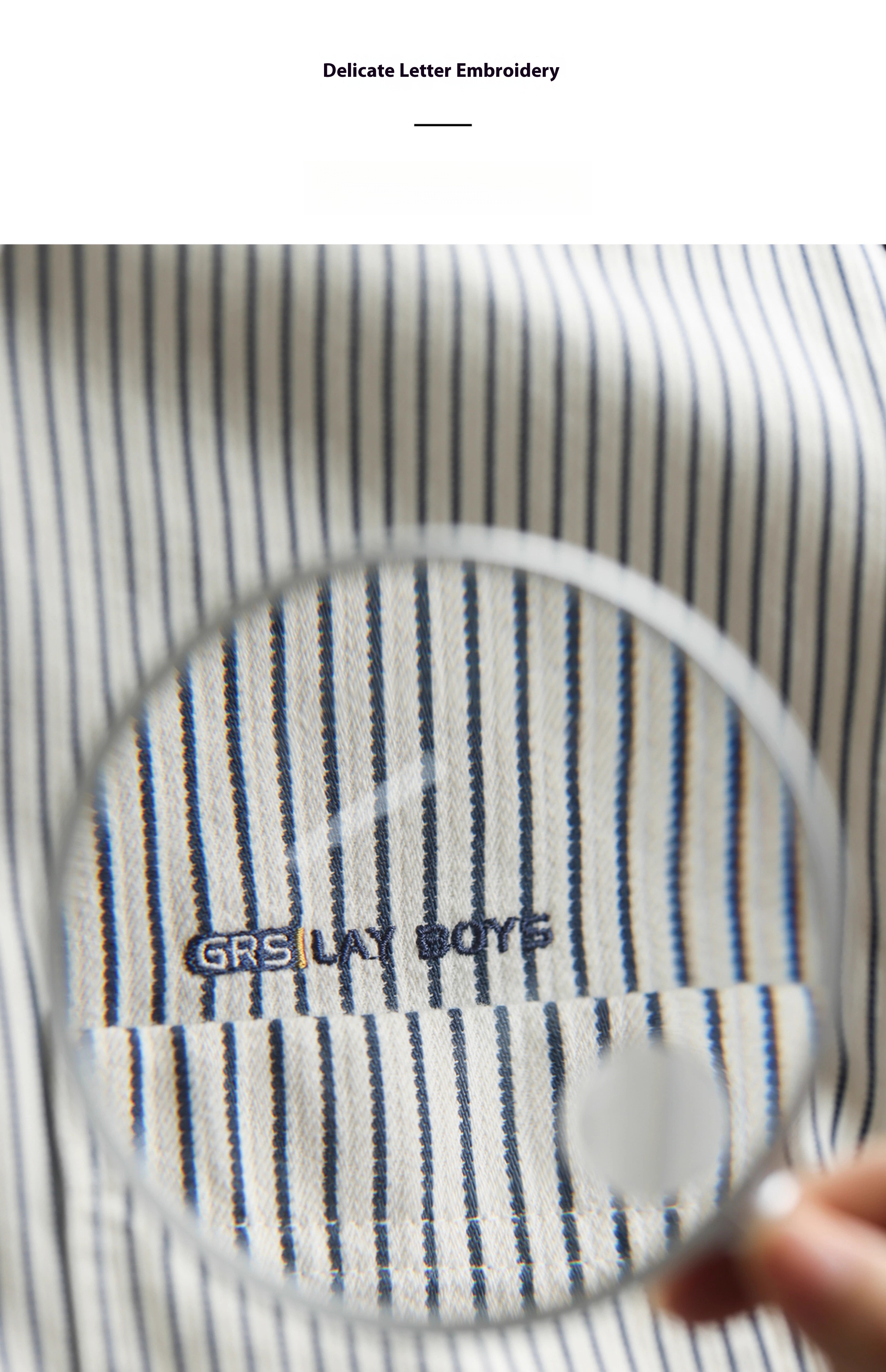 American Style Minimalist Contrasting Striped Men's Embroidered Pocket Shirt