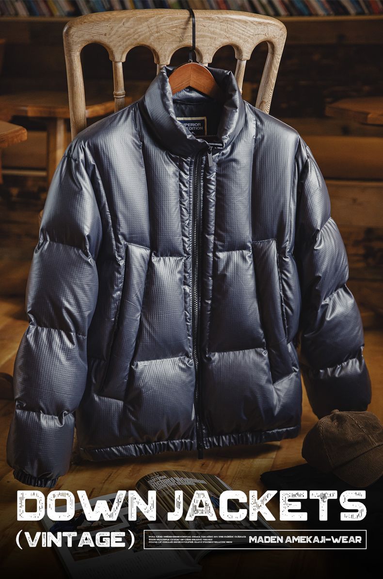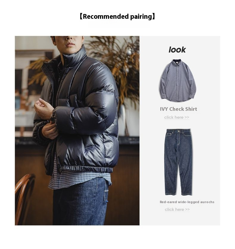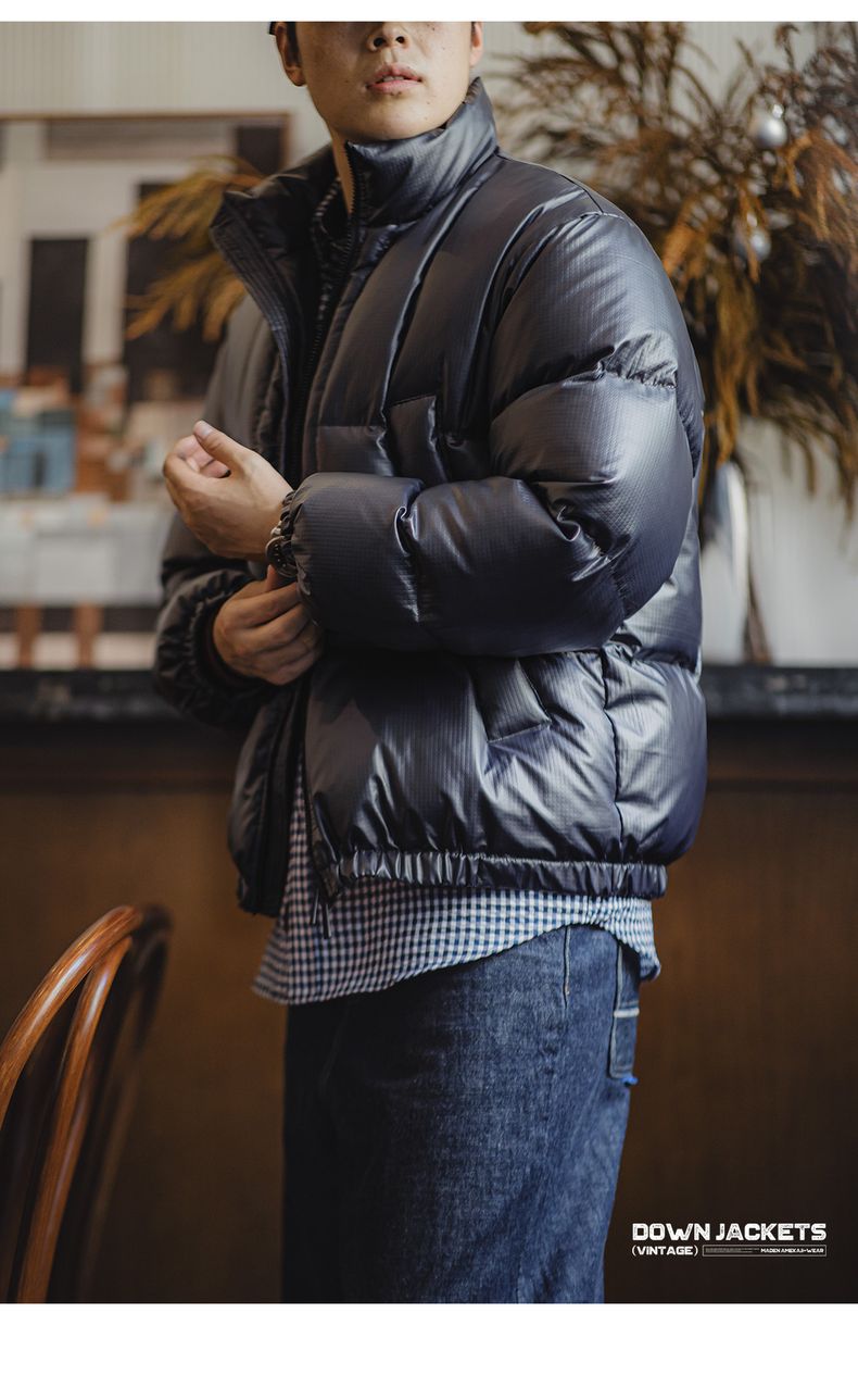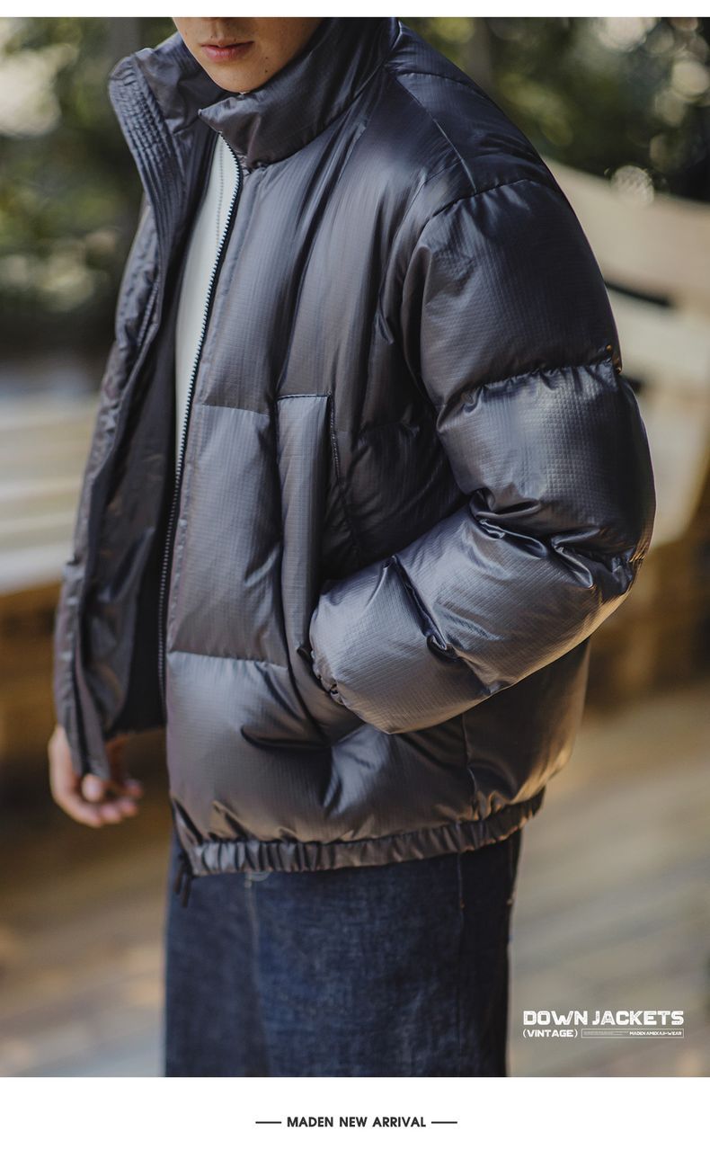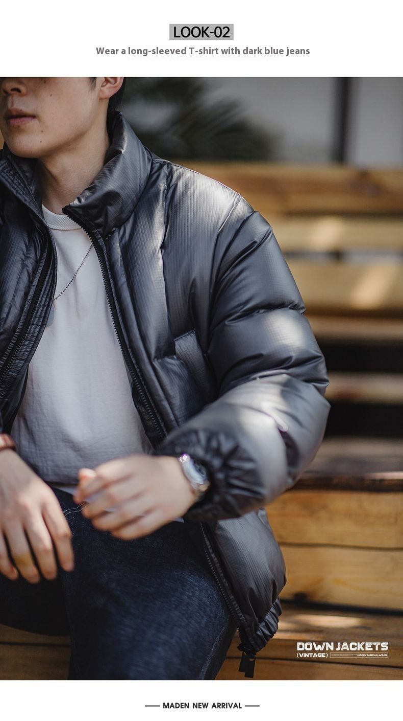 Maden Casual Small Square 90 White Duck Down Down Jacket Warm Standing Collar Bread Jacket