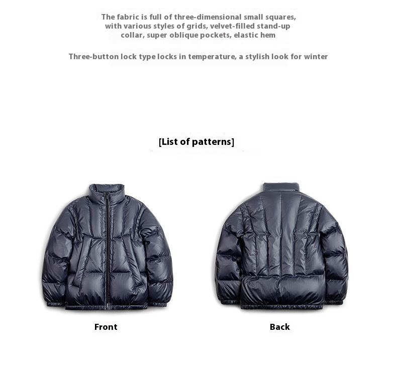 Casual Small Square 90 White Duck Down Down Jacket Warm Standing Collar Bread Jacket