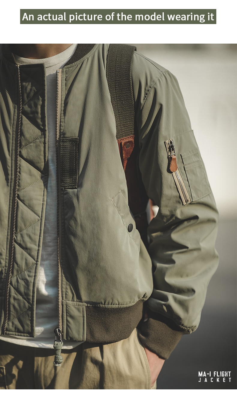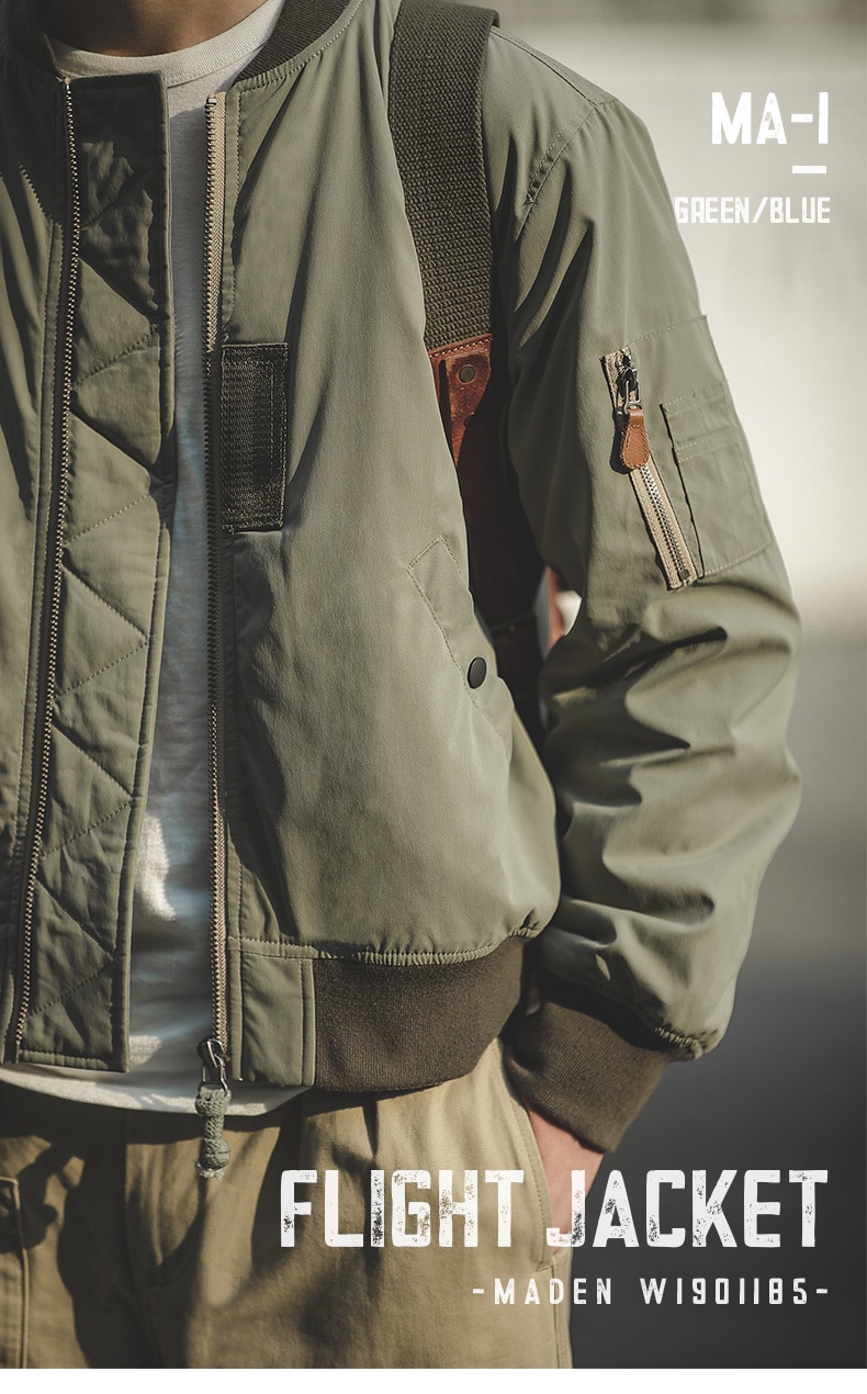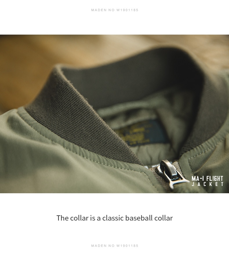 Maden Cargo Retro MA-1 Bomber Flight Jackets Army Green Black Standing Collar Pilot Baseball Coat Zipper Pocket Tops Clothes