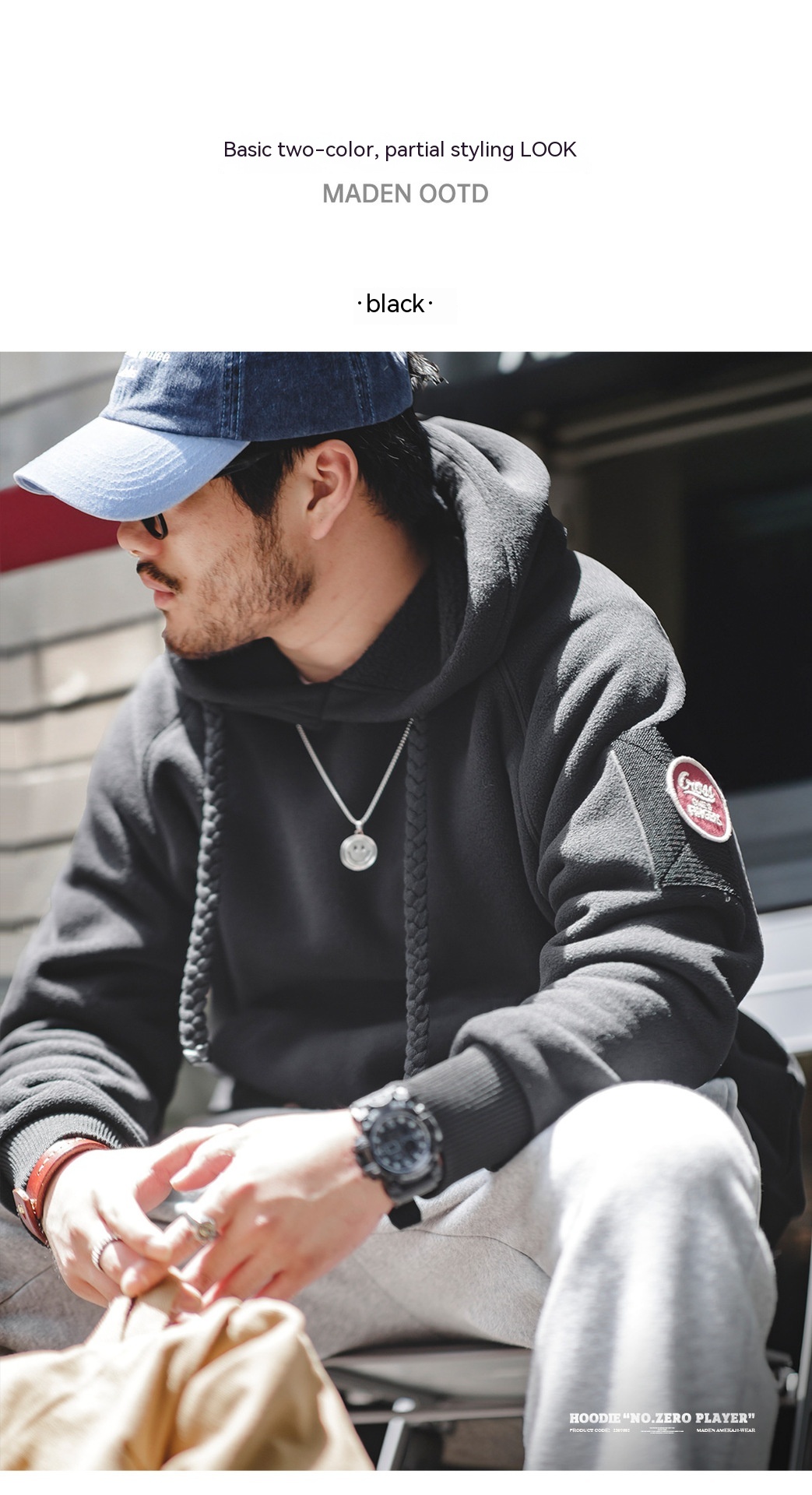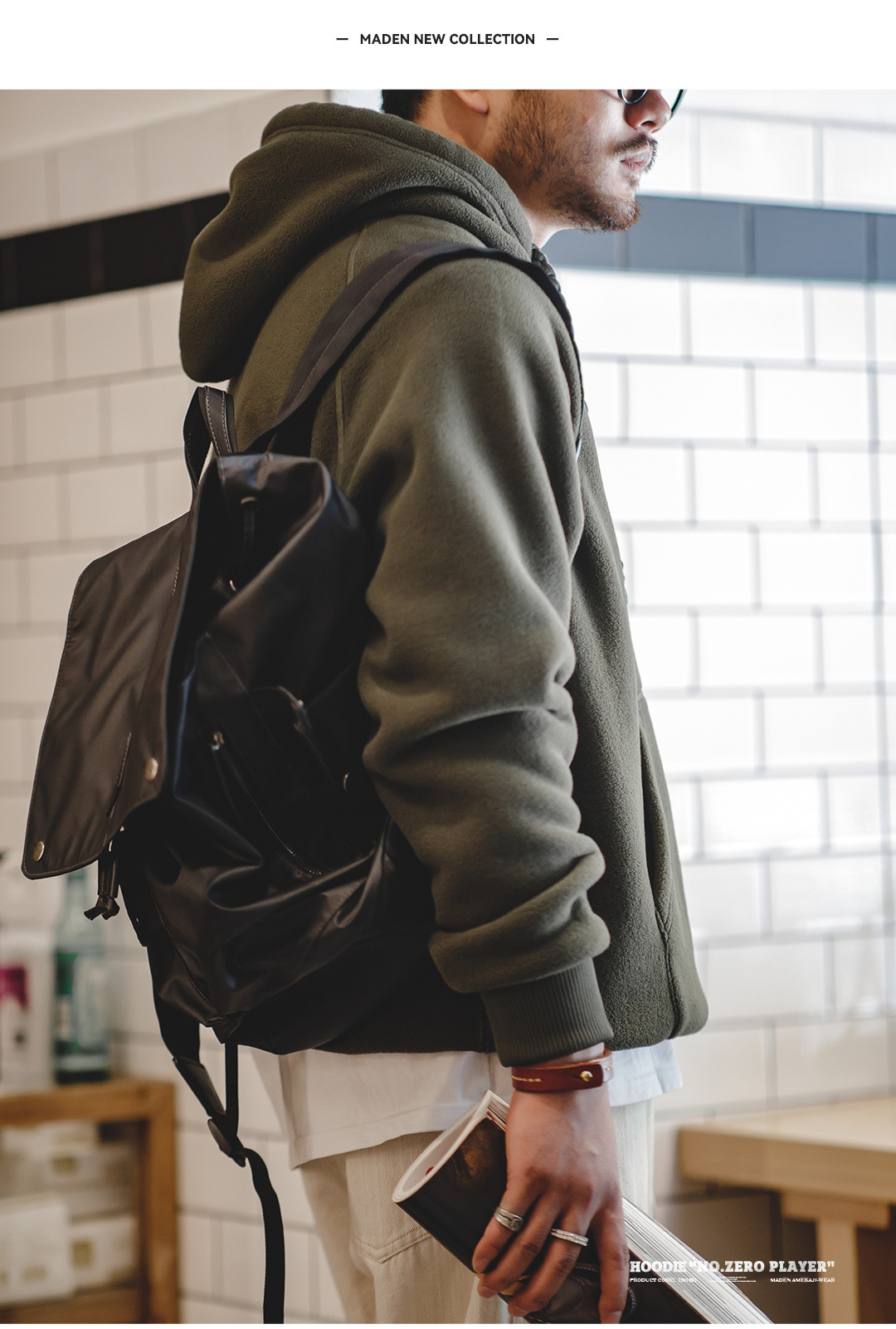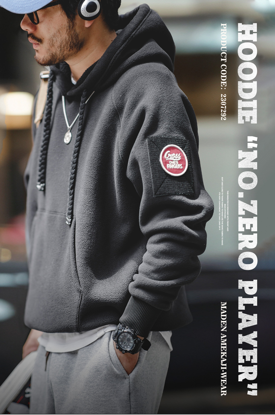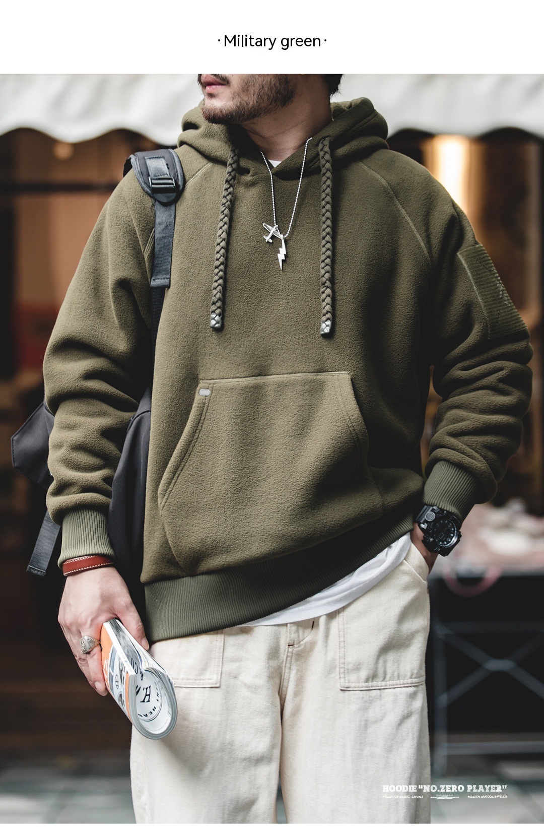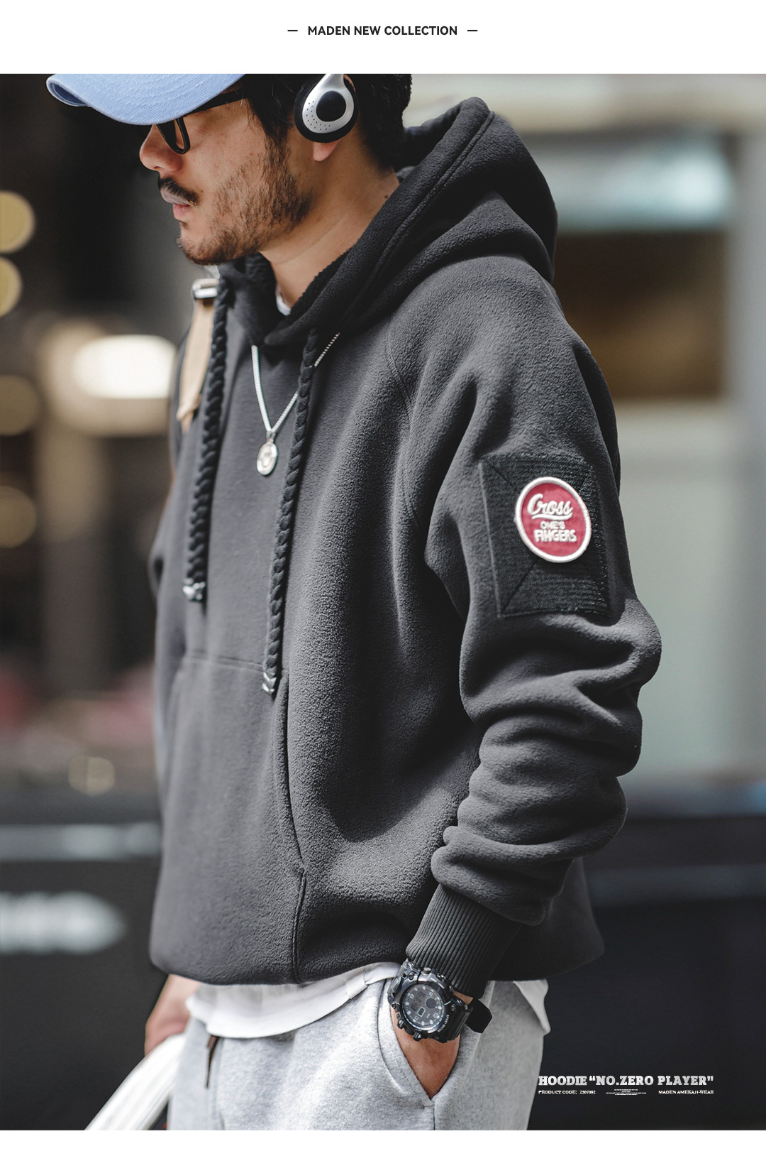 MADEN Casual Heavy Polar Fleece Hooded All-Matching Thickened Fleece Pullover
