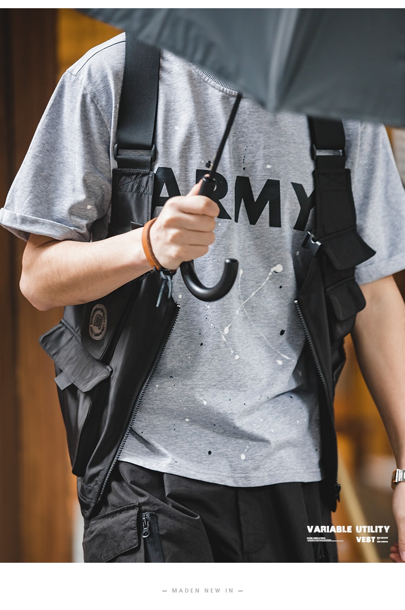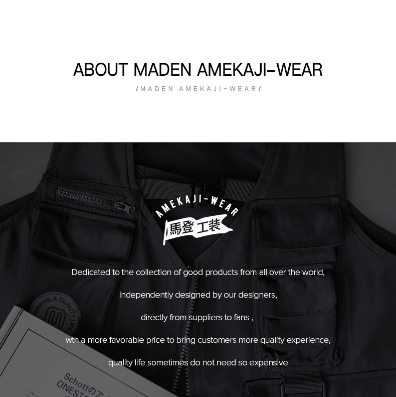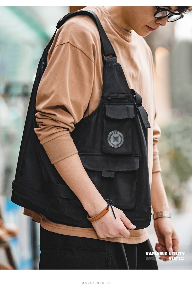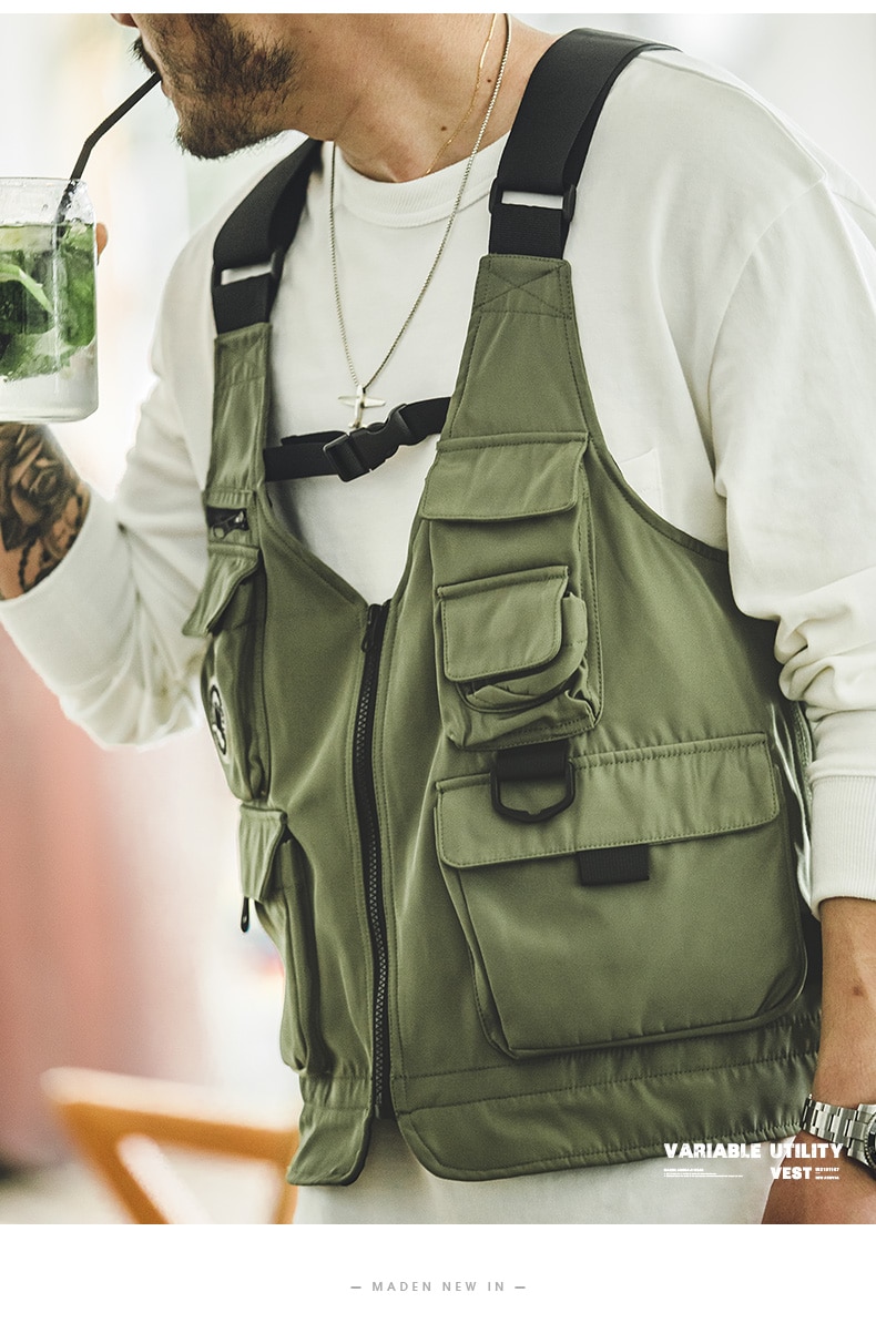 Maden Men Multi-pocket Tactical Vest Jacket & Bag Japan Retro Multi-function Photography Waistcoat Wide Shoulder Strap Solid Bag