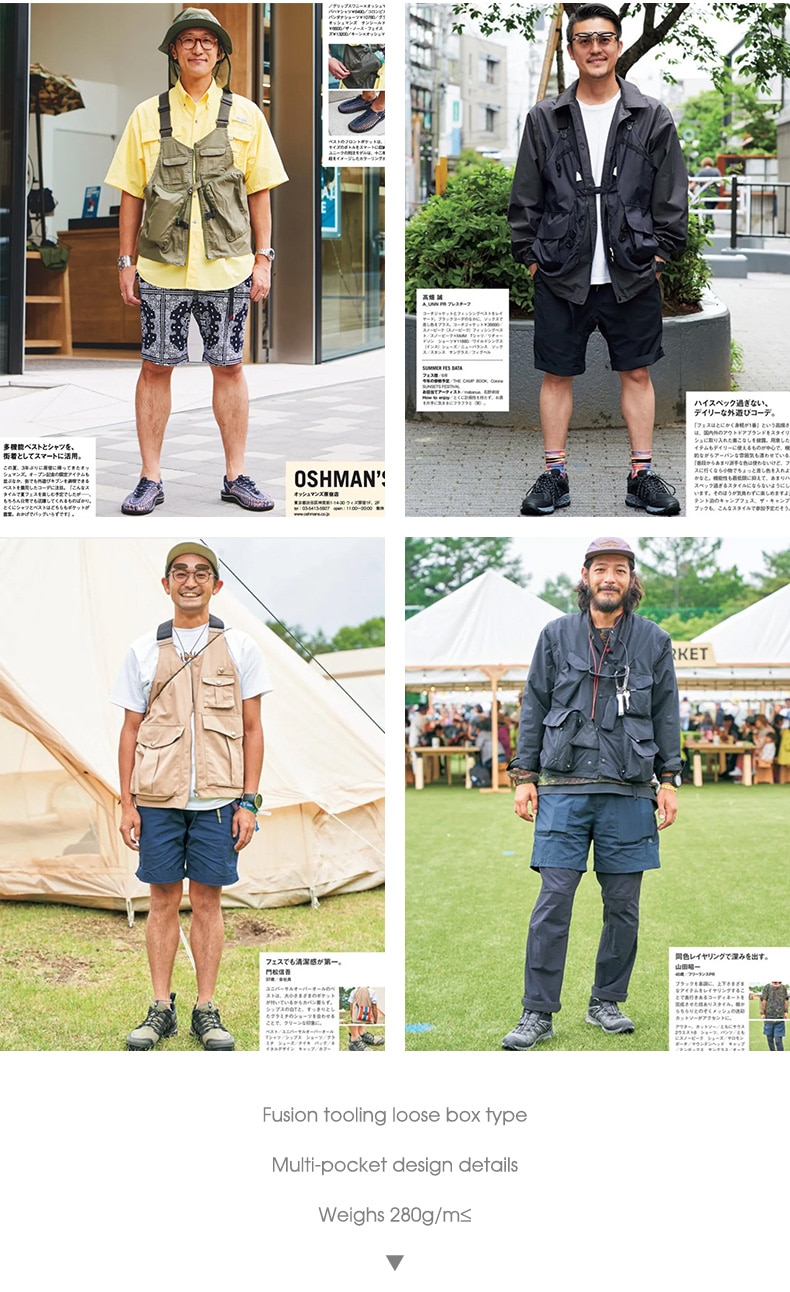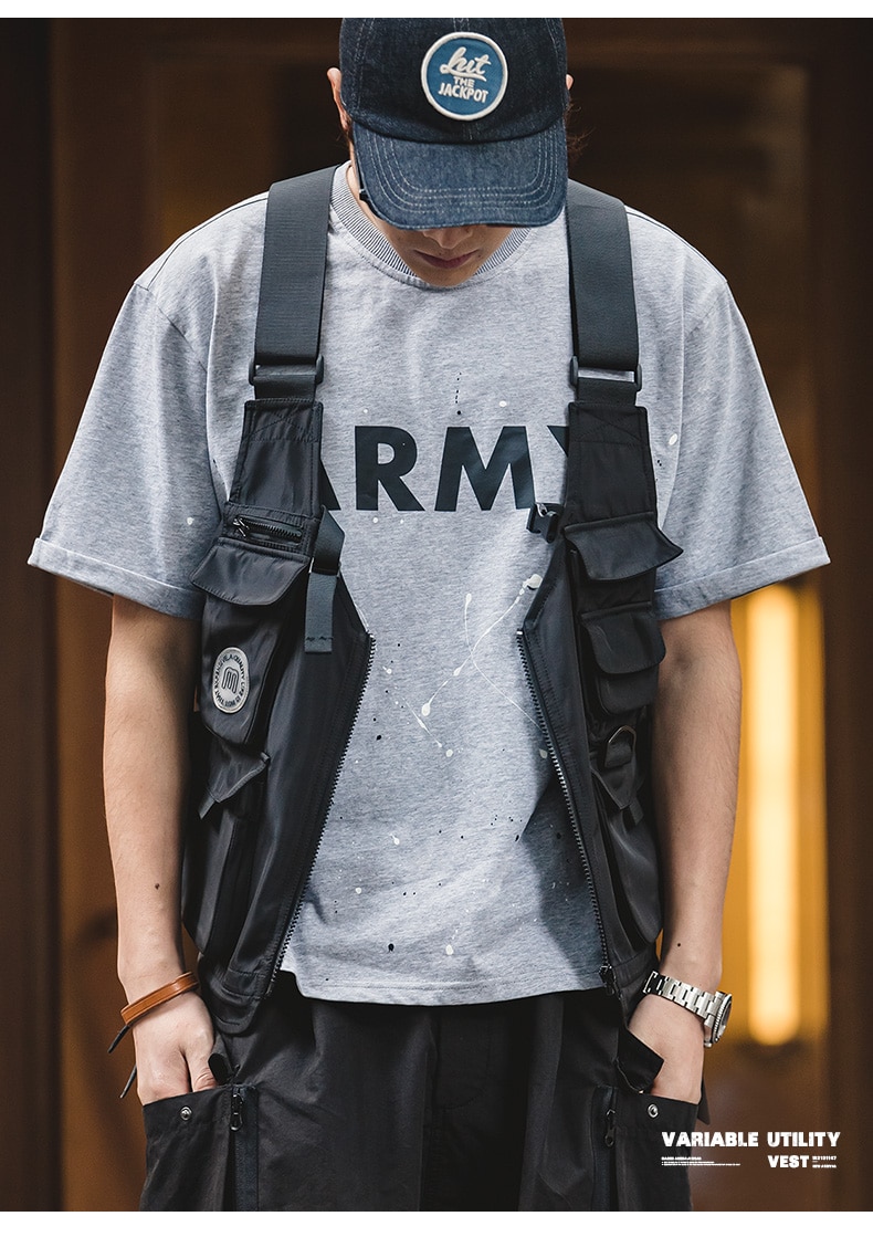 Men Multi-pocket Tactical Vest Jacket Bag Japan Retro Multi-function Photography Waistcoat Wide Shoulder Strap Solid Bag