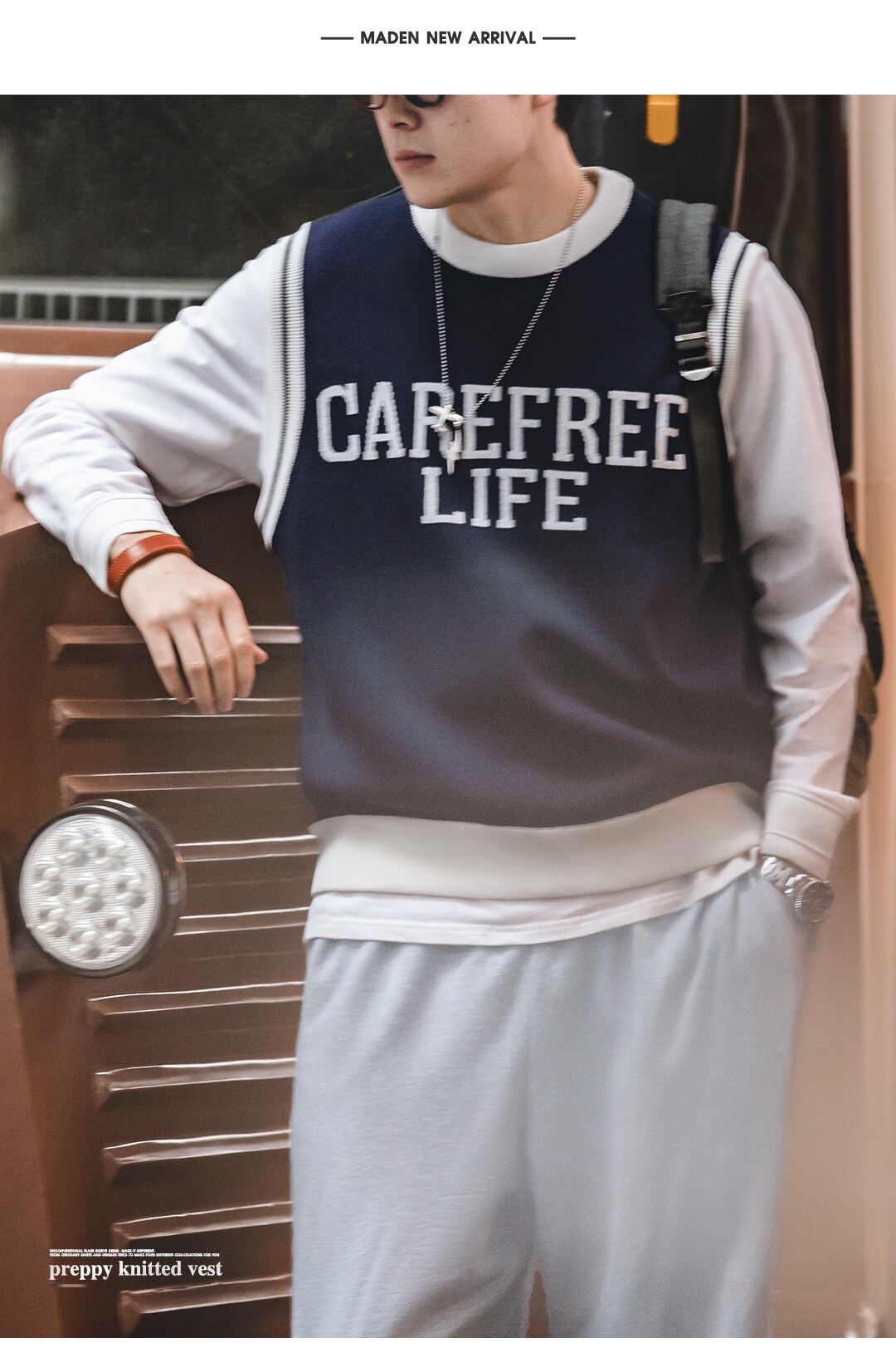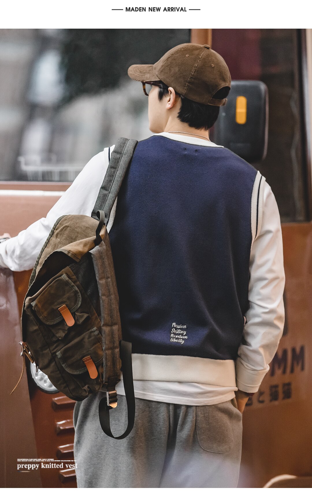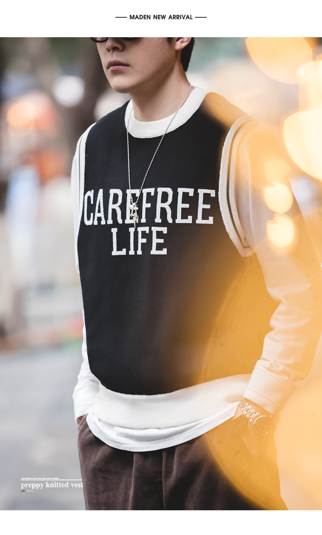 Maden Preppy Knitted Vest for Male Ivy Style Clothing Casual City Boy Letter Sweater Vest  Sleeveless Tops 2023 Spring New