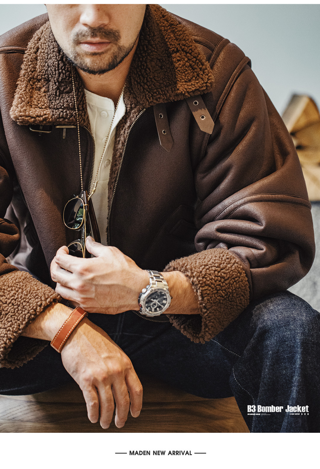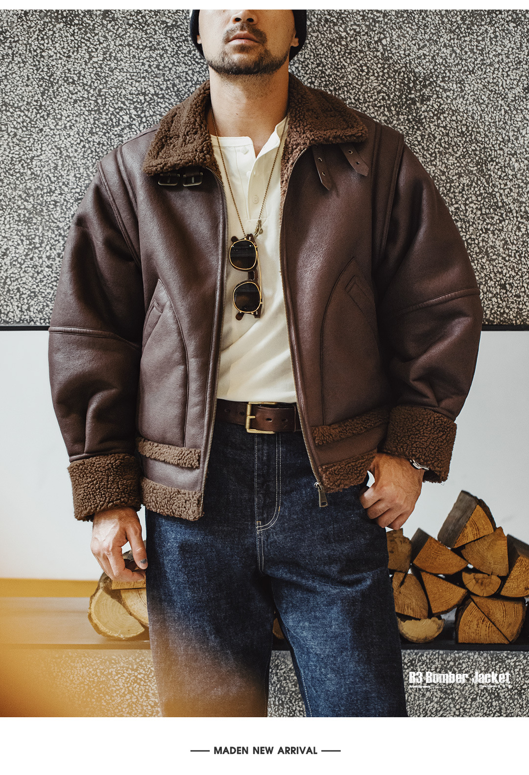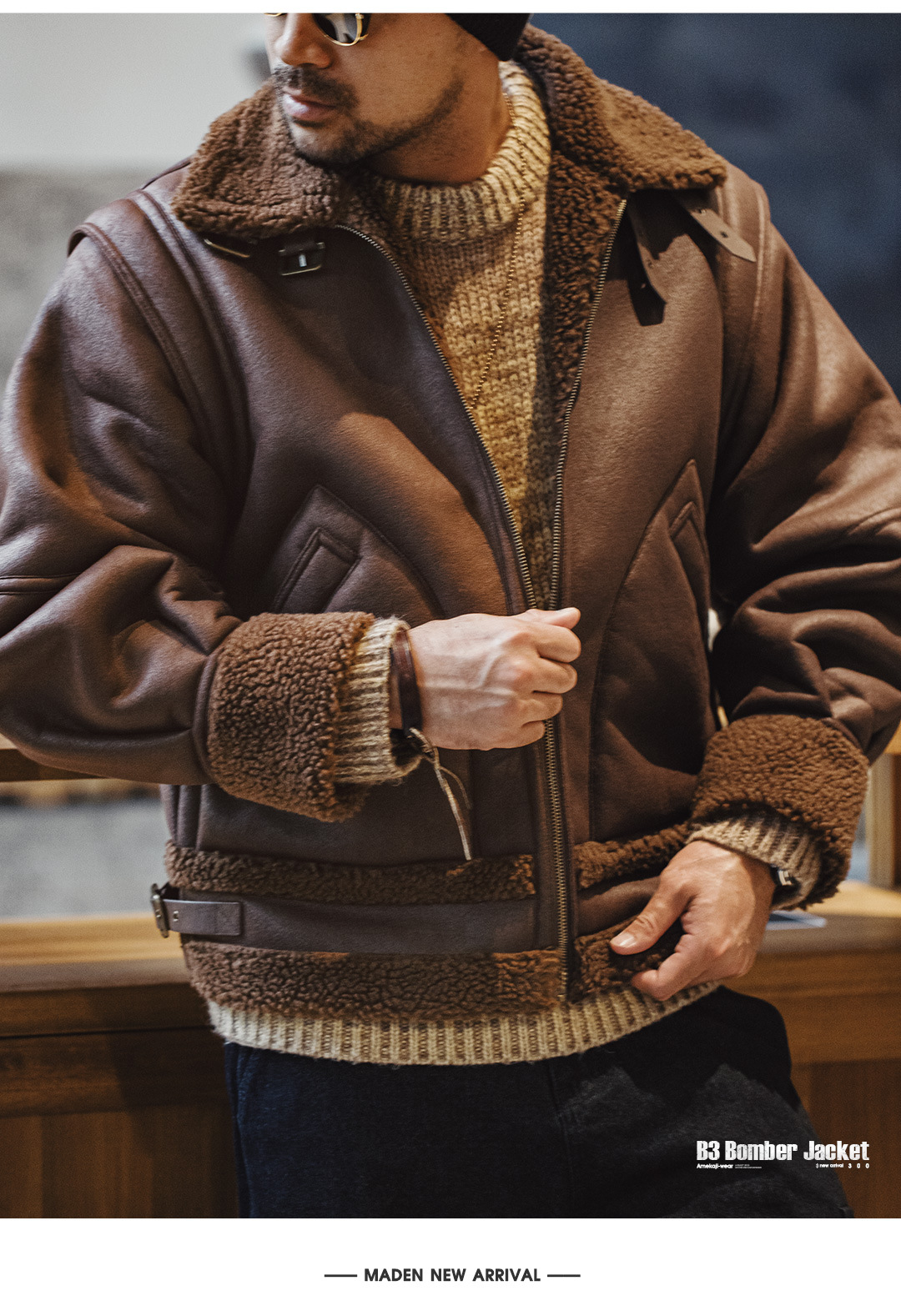 MADEN Retro B3 Bomber Fur Integrated Fleece Biker Suede Jacket