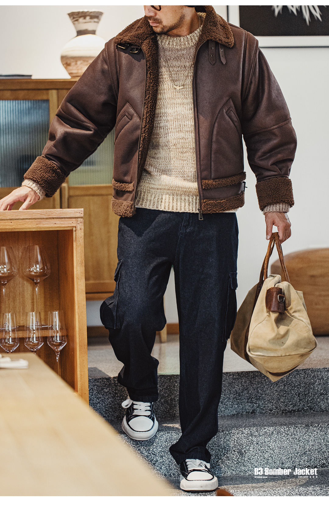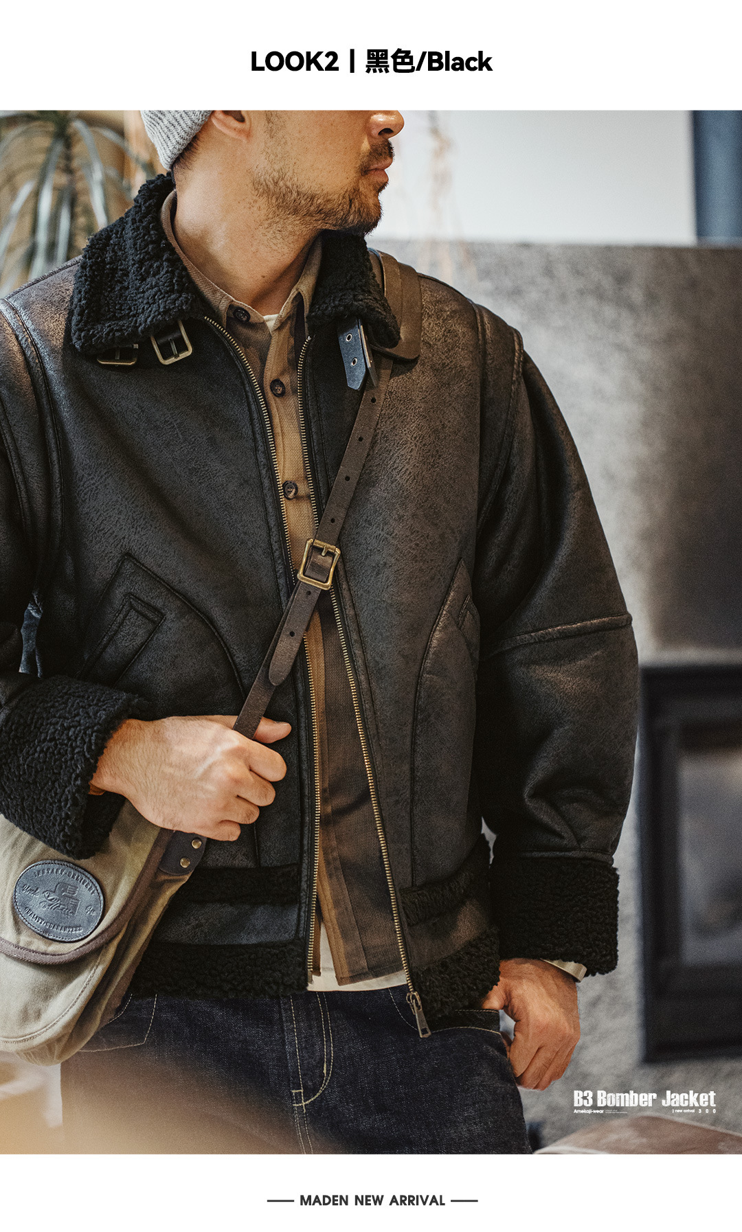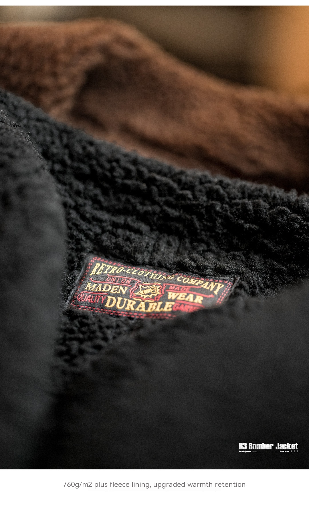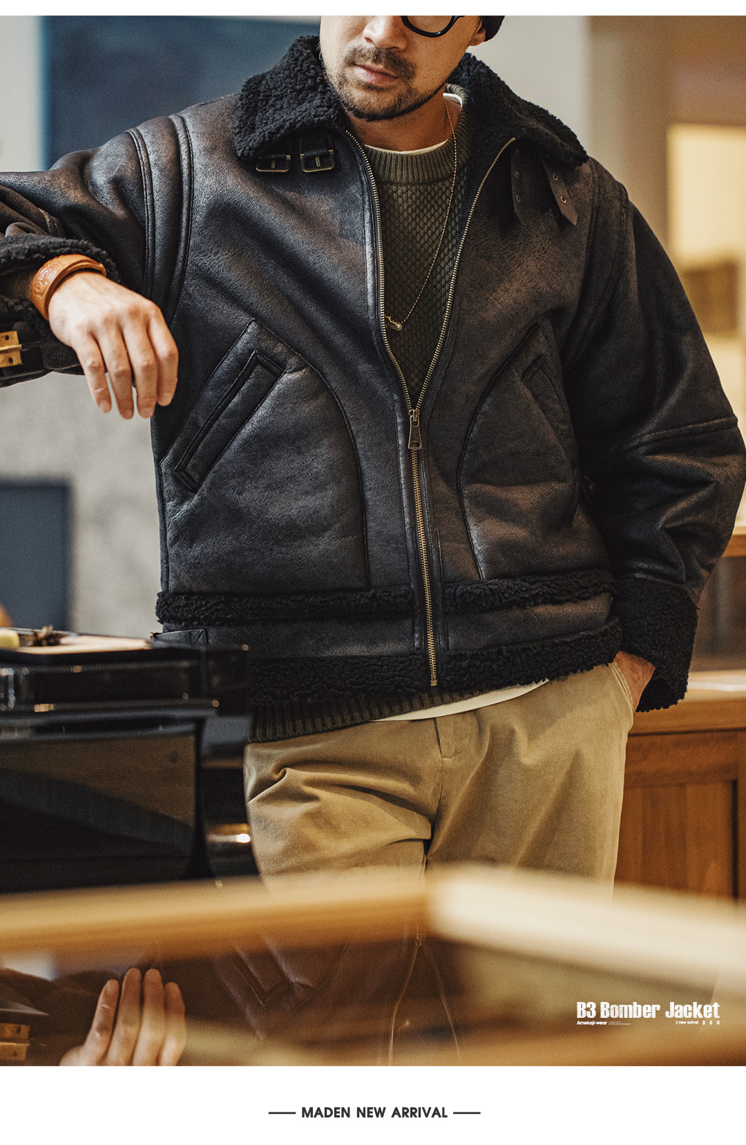 MADEN Retro B3 Bomber Fur Integrated Fleece Biker Suede Jacket