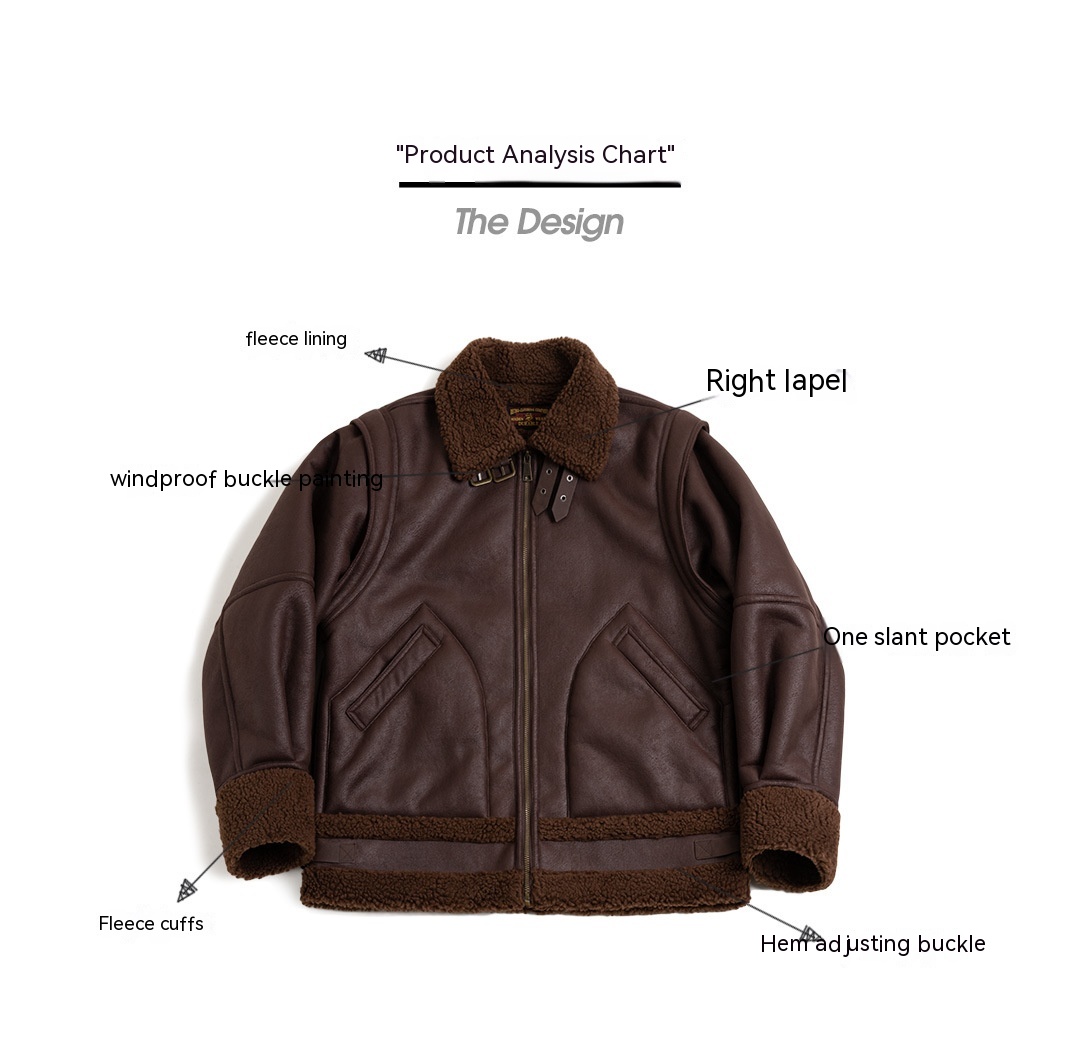 Retro B3 Bomber Fur Integrated Fleece Biker Suede Jacket